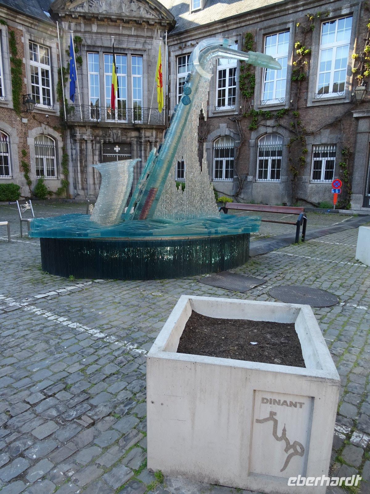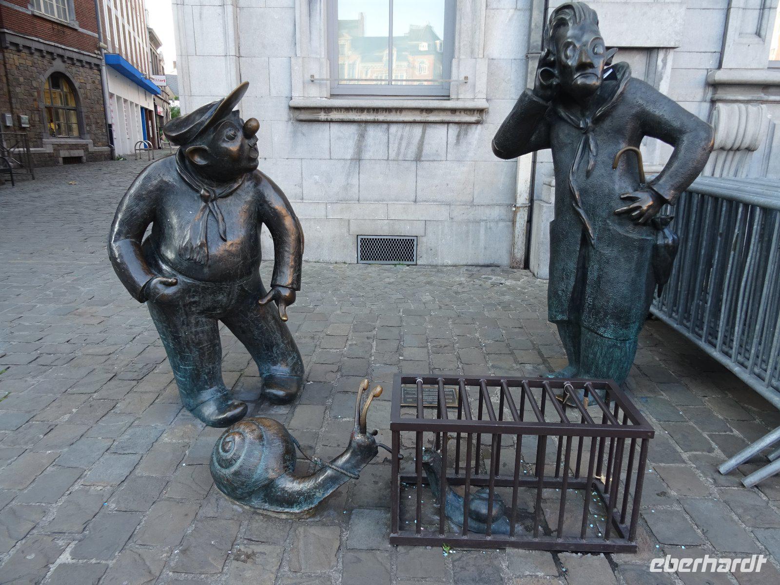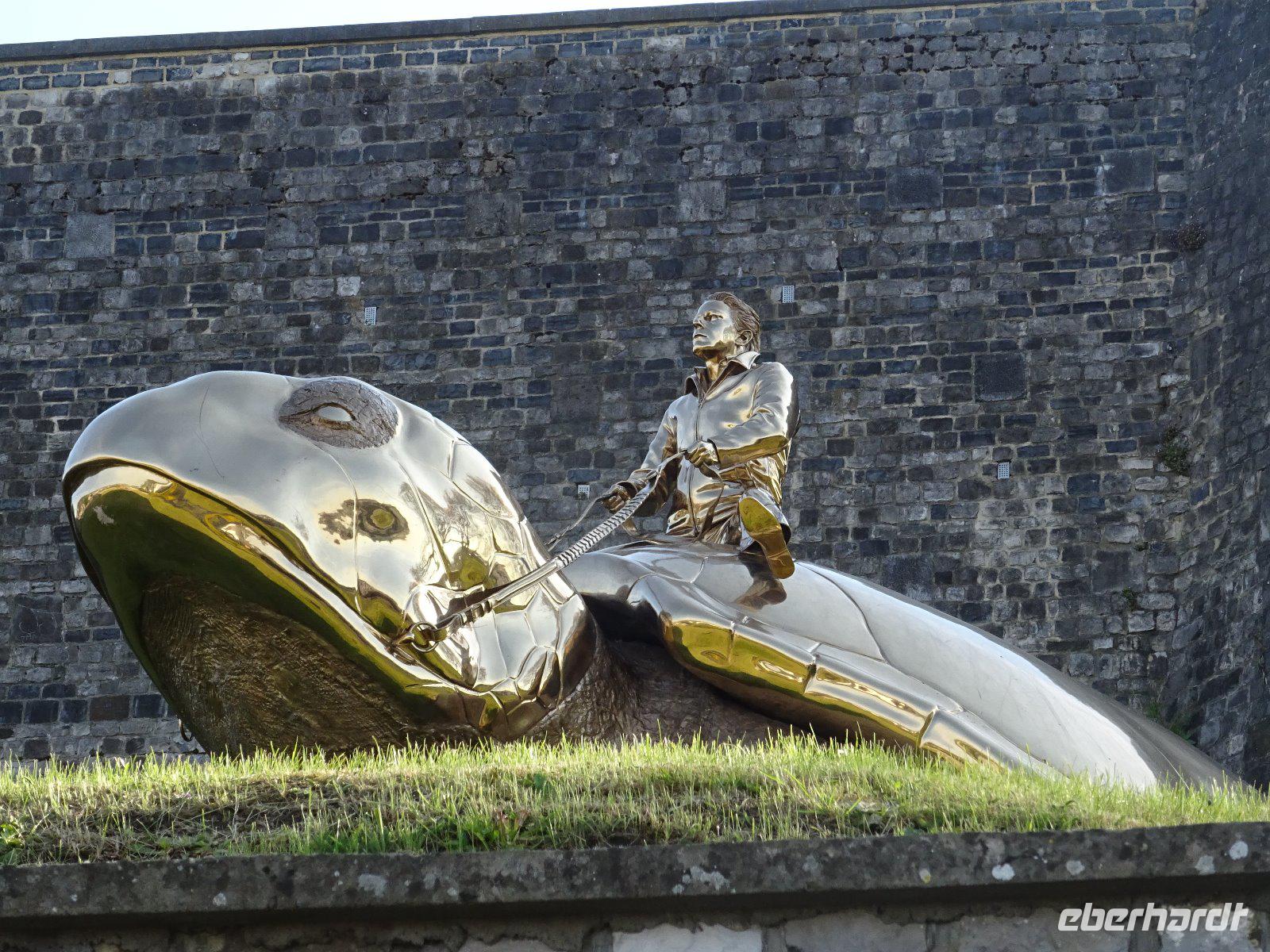 Abschließend für diesen Tag stand ein Besuch der Zitadelle in Namur auf unserem Programm. Unser Reiseleiter Hartwig zeigte uns die verschiedenen Ausbaustufen der Zitadelle, die Blicke über die Stadt, den Zusammenfluss von Maas und Sambre und natürlich auch den in der Sonne glänzenden Schildkröten-Reiter von Fabré. Durch die Stadt kehrten wir zurück zu unserem sehr zentral gelegenen Hotel . Das Abendessen im Grillrestaurant bestand diesmal aus Schinkensalat, Lachsfilet und abschließend Mousse au Chocolat - sehr lecker.