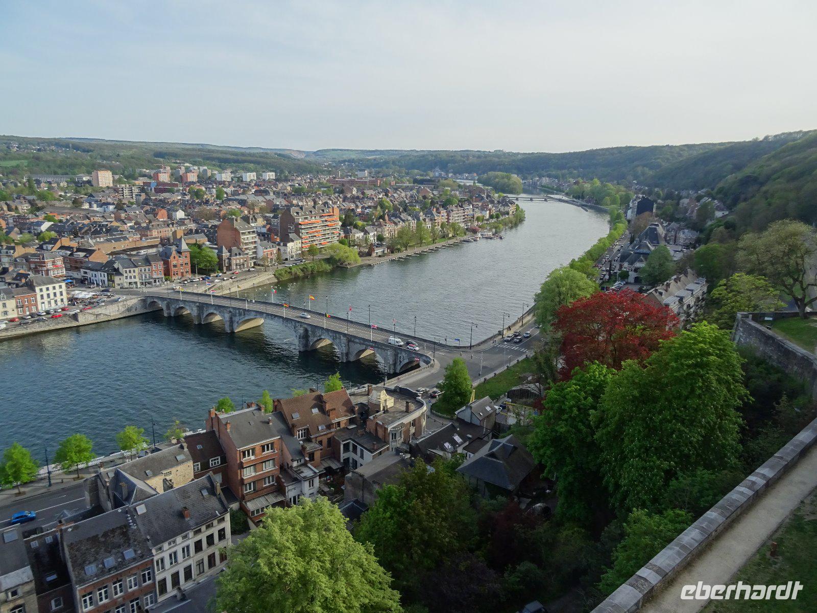 Erstes Ziel war die wallonische Hauptstadt Namur. Nach mehr als 800 km brachte uns unser Fahrer André sicher in diese Stadt. Zuerst überquerten wir die Maas und dann sahen wir die beeindruckende Zitadelle am Zusammenfluss von Maas und Sambre.