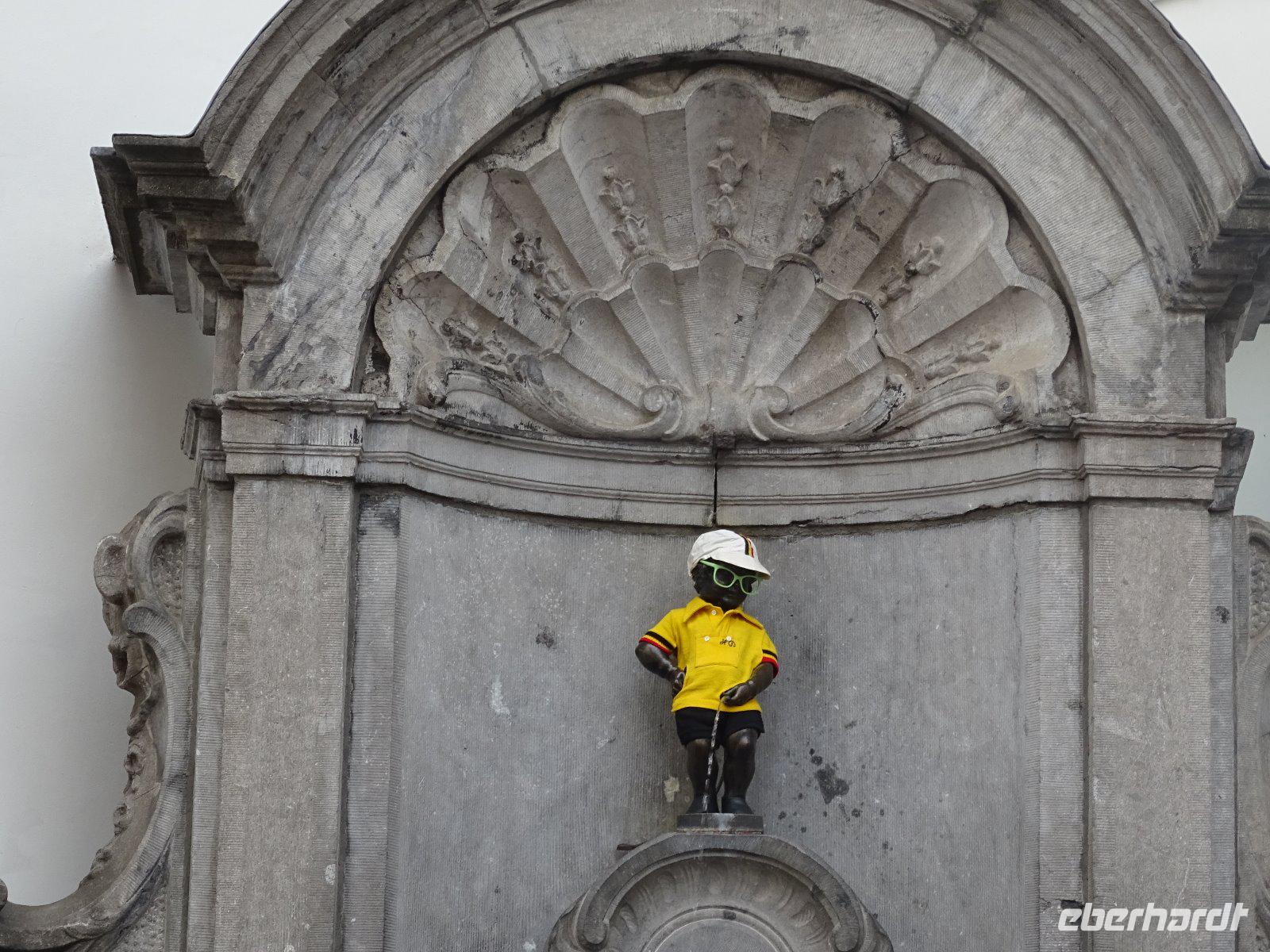 Am Samstag, unserem nunmehr schon 6. Reisetag, ging die Fahrt nach Brüssel. Frühzeitig erreichten wir die Stadt und unsere lokale Stadtführerin stieg zu uns in den Bus. Der ungewöhnlich geringe Verkehr bot ideale Voraussetzungen für eine ausgiebige Stadtrundfahrt zur Museumsmeile, der royalen Oberstadt, dem EU-Viertel sowie dem Triumphbogen im Jubelpark. Auch die Jugendstilbauten in den Stadtteilen von Brüssel konnten wir kennenlernen. Der anschließende Stadtrundgang führte uns durch die Galerie St-Hubert zum Großen Markt, den wir in aller Ausführlichkeit erläutert bekamen. Abschließend war der Gang zum Brunnen mit Manneken Pis obligatorisch. Manneken Pis war diesmal anlässlich der bevorstehenden Tour de France als Rennfahrer Eddy Merckx gekleidet. Die vielfältigen kulinarischen Genüsse von Brüssel sowie die Erzeugnisse der Patisserie Neuhaus stellte uns unsere Stadtführerin ausführlich dar und gab Empfehlungen für Waffeln, Fritten und eine gute Tasse Kaffee.