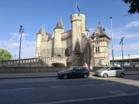 Unser Stadtführer machte uns mit der Geschichte und den Besonderheiten der größten belgischen Hafenstadt bekannt. Nach einer Rundfahrt durch das „Diamantenviertel“ und vorbei an einigen wichtigen Punkten gelangten wir zum Kern der Altstadt. Am Ufer des hier breiten und den Nordsee-Gezeiten ausgesetzten Schelde-Flusses war der erste Fotostopp an der alten Burg, dem „Steen“. Deren Ursprung der Burg reicht bis ins 12. Jahrhundert zurück, dann wurde sie im 16. Jh. unter der Herrschaft Karls V. als Hafenfestung ausgebaut und beherbergt heute Teile des Schifffahrtsmuseum. Vor dem Gebäude sieht man die übergroße Bronzeskulptur des „Wapper“, eines Riesen aus dem städtischen Sagenschatz, der die Antwerpener früher sehr geärgert haben soll.