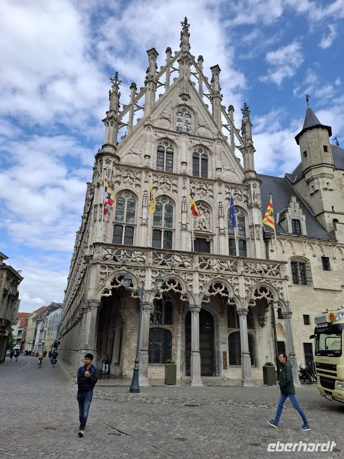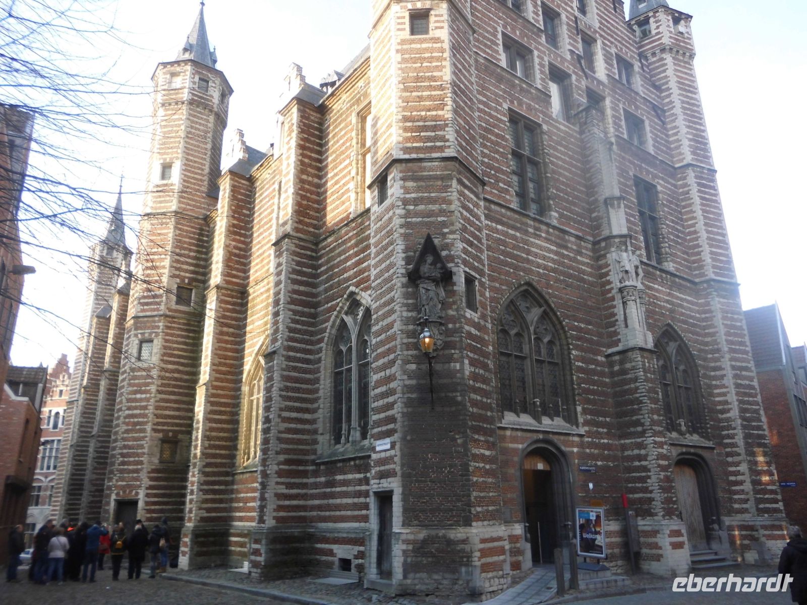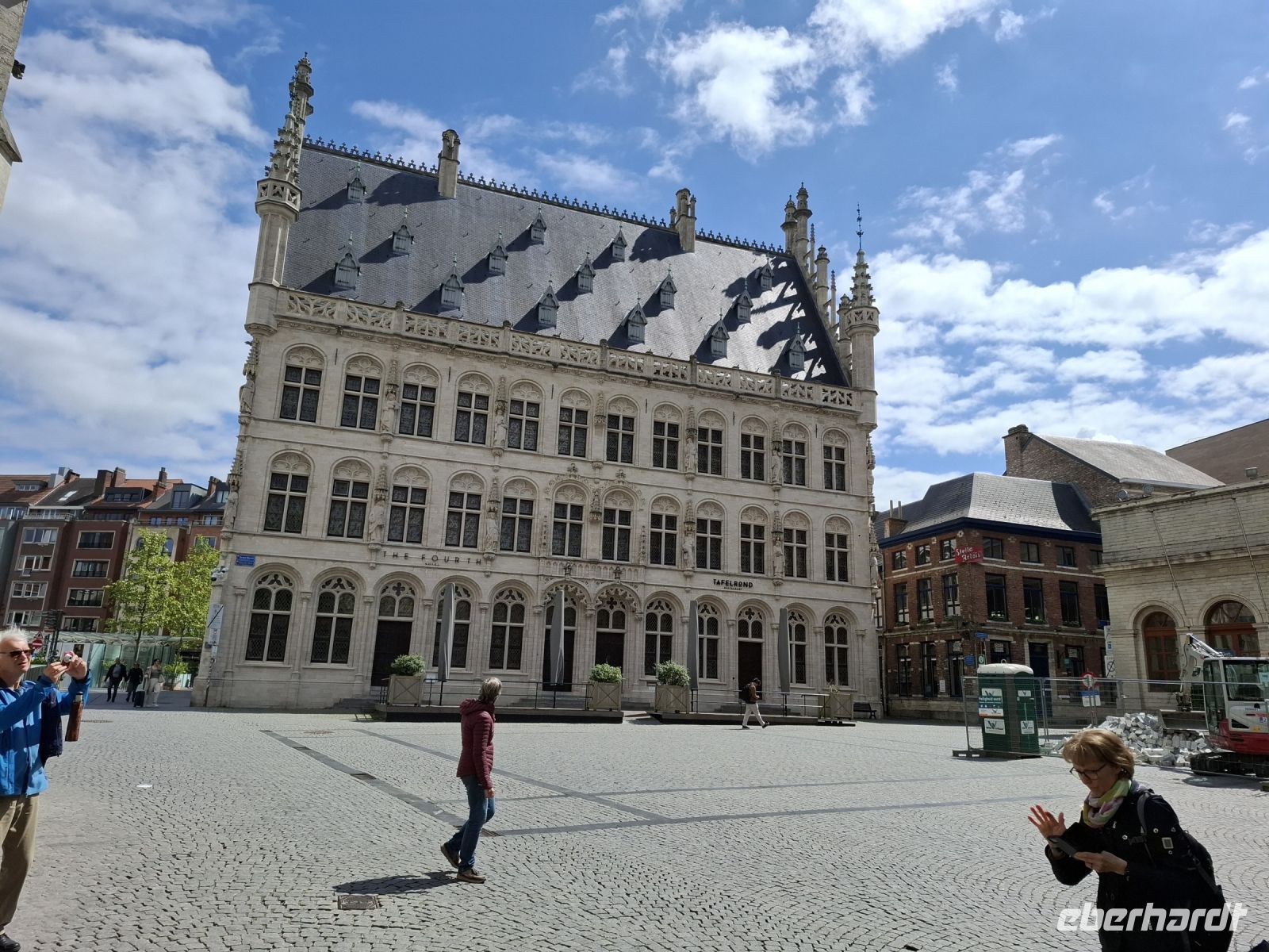 Vom Beginenhof durchquerten wir die Altstadt, vorbei an verschiedenen historischen Gebäuden, die zur größten katholischen Universität Europass in Leuven gehörten, bis zum großen Markt. Hier besticht, neben der gewaltigen Sint-Pieters-Kirche in brabantischer Gotik, das wie ein geschnitztes Schatzkästchen anmutende Rathaus. Als eines der berühmtesten und vielleicht am meisten fotografierten Rathäuser der Welt gilt der 1439 – 1468 von Mathaeus de Layens erbaute Sitz der Stadtregierung als einer der schönsten spätgotischen Profanbauten weltweit.