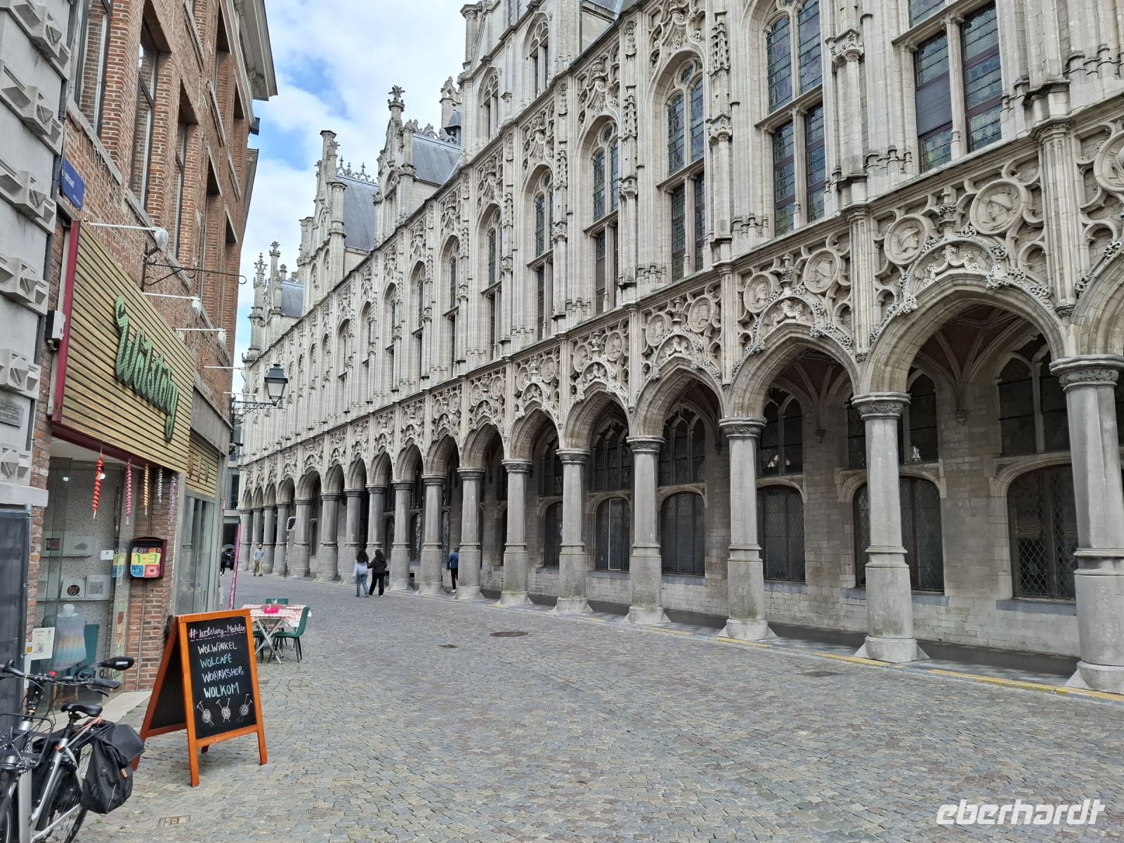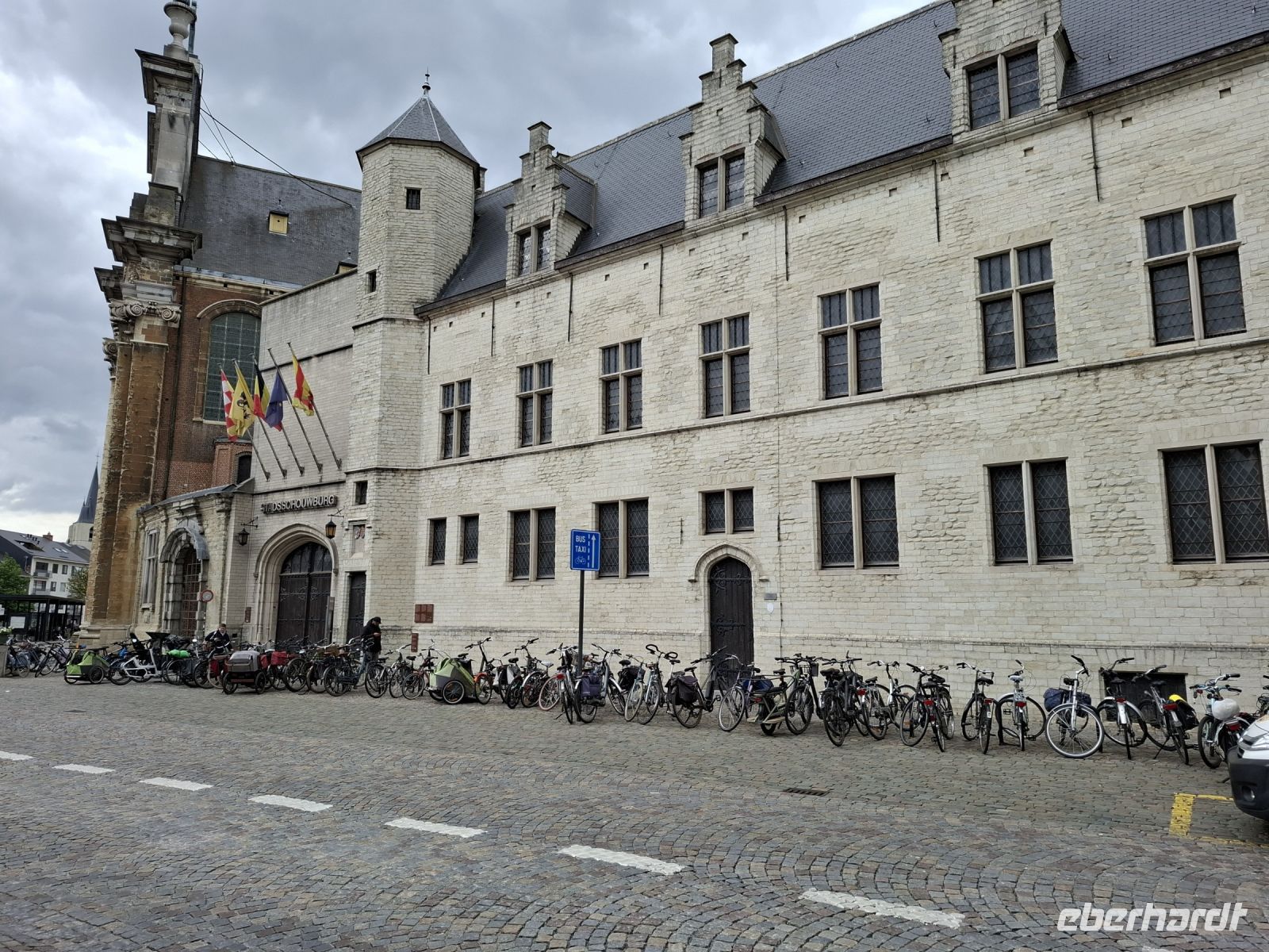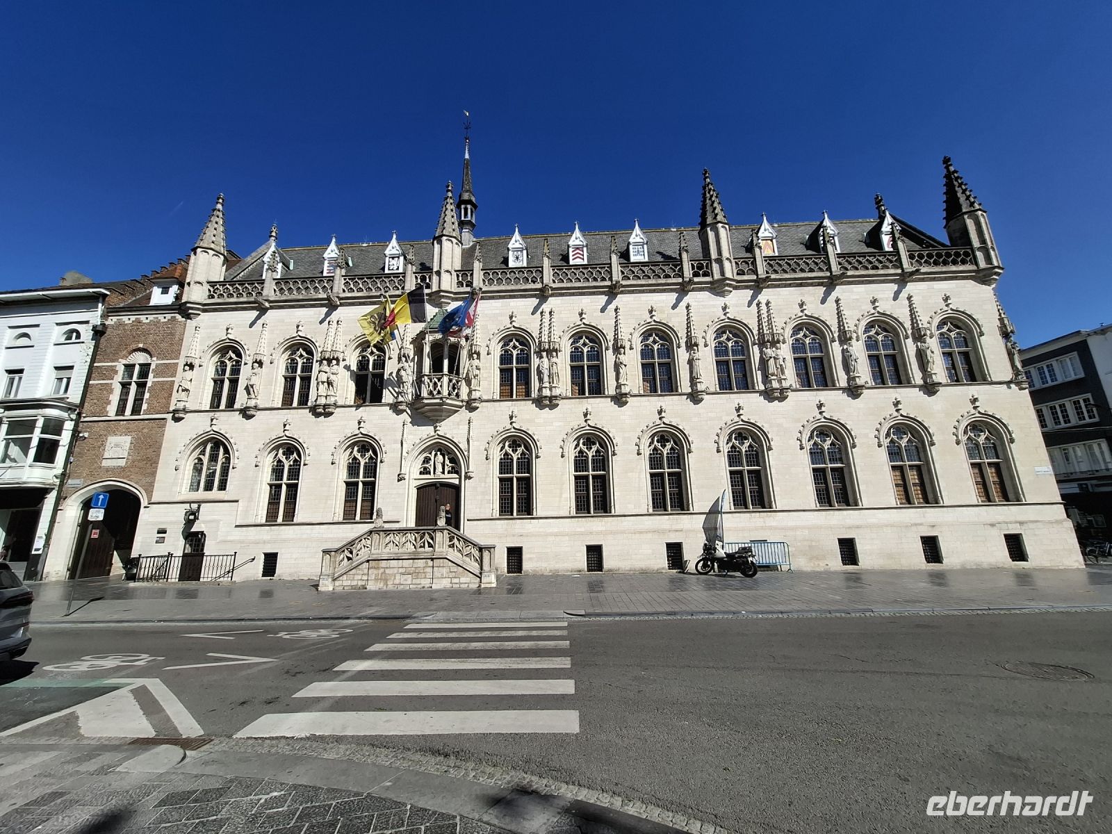 Vom Beginenhof durchquerten wir die Altstadt, vorbei an verschiedenen historischen Gebäuden, die zur größten katholischen Universität Europass in Leuven gehörten, bis zum großen Markt. Hier besticht, neben der gewaltigen Sint-Pieters-Kirche in brabantischer Gotik, das wie ein geschnitztes Schatzkästchen anmutende Rathaus. Als eines der berühmtesten und vielleicht am meisten fotografierten Rathäuser der Welt gilt der 1439 – 1468 von Mathaeus de Layens erbaute Sitz der Stadtregierung als einer der schönsten spätgotischen Profanbauten weltweit.