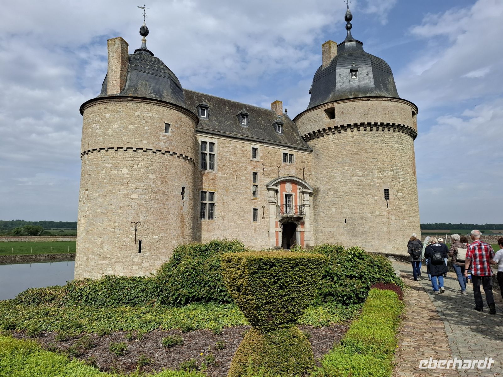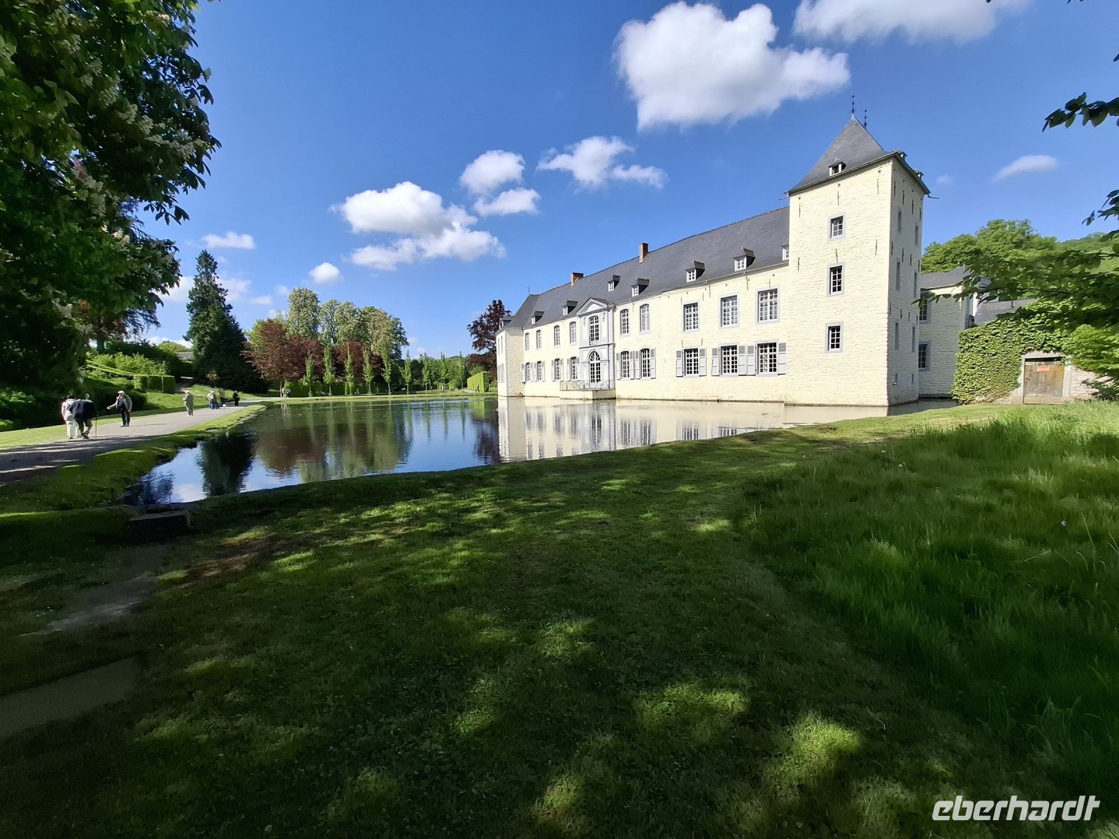 Das gut erhaltene authentische Wasserschloss Lavaux-Sainte-Anne war unser Ziel. Das symbolträchtige Bauwerk, das bis heute als Wahrzeichen der historischen Ardennen-Region Famenne gilt, wurde zwischen dem 13. Und Beginn des 16. Jh. als wehrhafte Wasserburg errichtet. Seit den 30er Jahren des 20. Jh. wird es von einer Interessengesellschaft bewirtschaftet, die hier neben dem glichst authentischen Schloss ein Museum für Forst- und Landwirtschaft sowie kürzlich einen ökologischen Park errichtet hat.