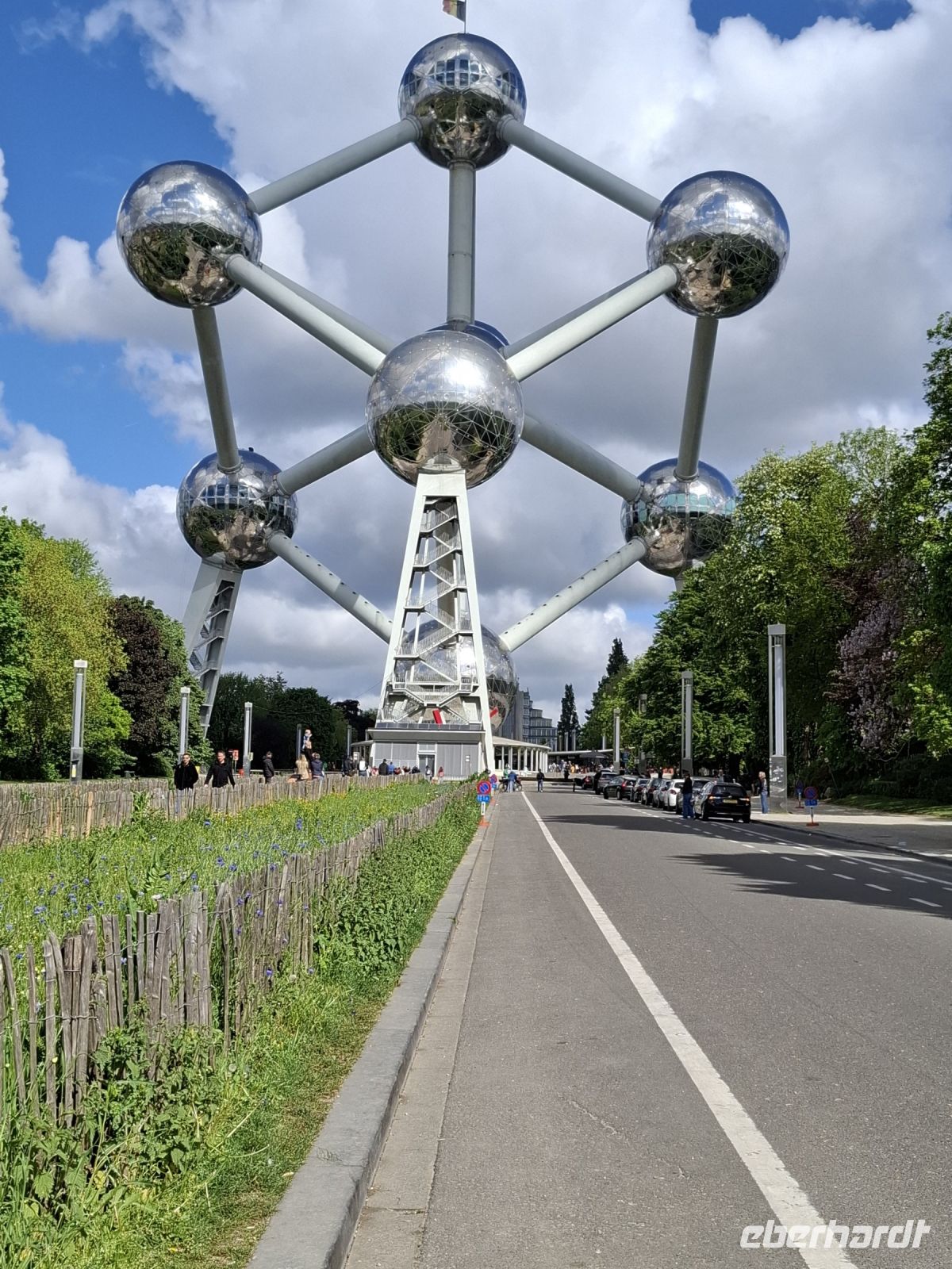 Brüssel, die Hauptstadt Belgiens und „Hauptort“ der Europäischen Union stand heute auf dem Programm. Da das gesamte Hauptstadtareal seit etwa fünf Jahren verkehrsmäßig umgestellt wird, ist es sehr schwierig, Stadtrundfahrten zu gestalten und sich der Altstadt per Reisebus zu nähern. Daher waren wir vor der Stadt bei deren bekanntestem Wahrzeichen, dem Atomium, mit einer Stadtführerin verabredet. Es liegt am Rand Brüssels, an einer der Endstationen der U-Bahn und neben dem alten Weltausstellungsgelände von 1958 sowie der größten Fußball-Arena des Landes, dem Heyzel-Stadion. Das Atomium, 2006 restauriert, gibt es seit der Weltausstellung von 1958. Es ist eine 102 m hohe Konstruktion aus neun riesigen, durch dicke Rohre miteinander verbundenen Kugeln von je 18 m Durchmesser und stellt die 165-milliardenfache Vergrößerung eines Eisenkristalls dar. Vom hier ging es zu einer „großen Runde“ mit dem Bus um die belgische Metropole. Vorbei am „Jubelpark“, einem 1881 zum 50sten Jahrestag des Bestehens Belgiens errichteten Ausstellungsgelände mit zwei riesigen Museen und einem Triumphtor fuhren wir durch das moderne EU-Viertel und am „Palais der Nation“, dem belgischen Parlament vorbei zur Innenstadt.