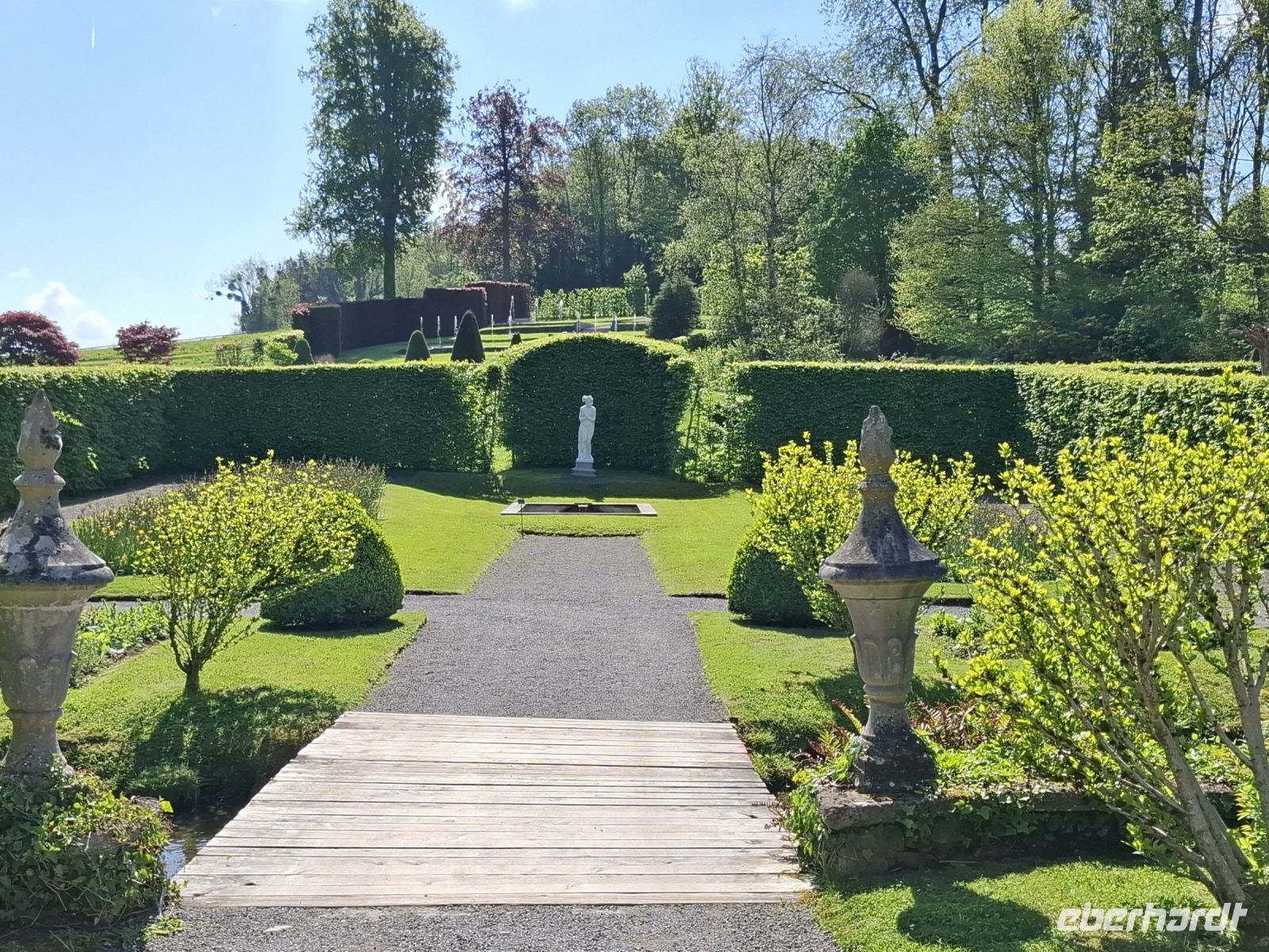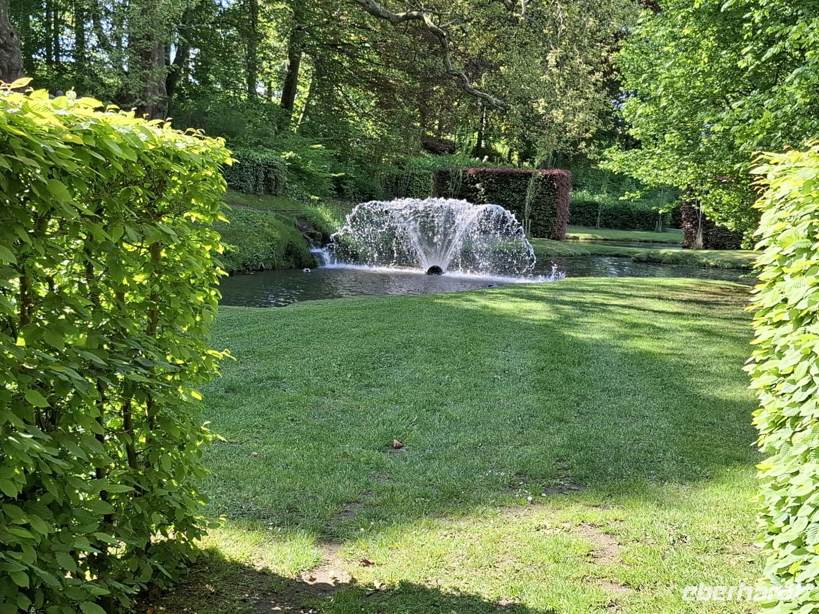 Früh des morgendlichen Staus wegen fuhren wir heute ab zu unserem ersten Ziel im lieblichen Maastal, Schloss und Gärten von Annevoie. Am Westhang des Maastales gelegen, stellen die bezaubernden Gärten des kleinen Schlösschens einen Höhepunkt der Gartenarchitektur dar, an der Belgien etwas weniger reich ist als seine Nachbarländer. Das Besondere an den Gärten, die englischen, französischen und italienischen Stil der Gartenbaukunst vereinen, stellen ihre weithin berühmten Wasserspiele dar.