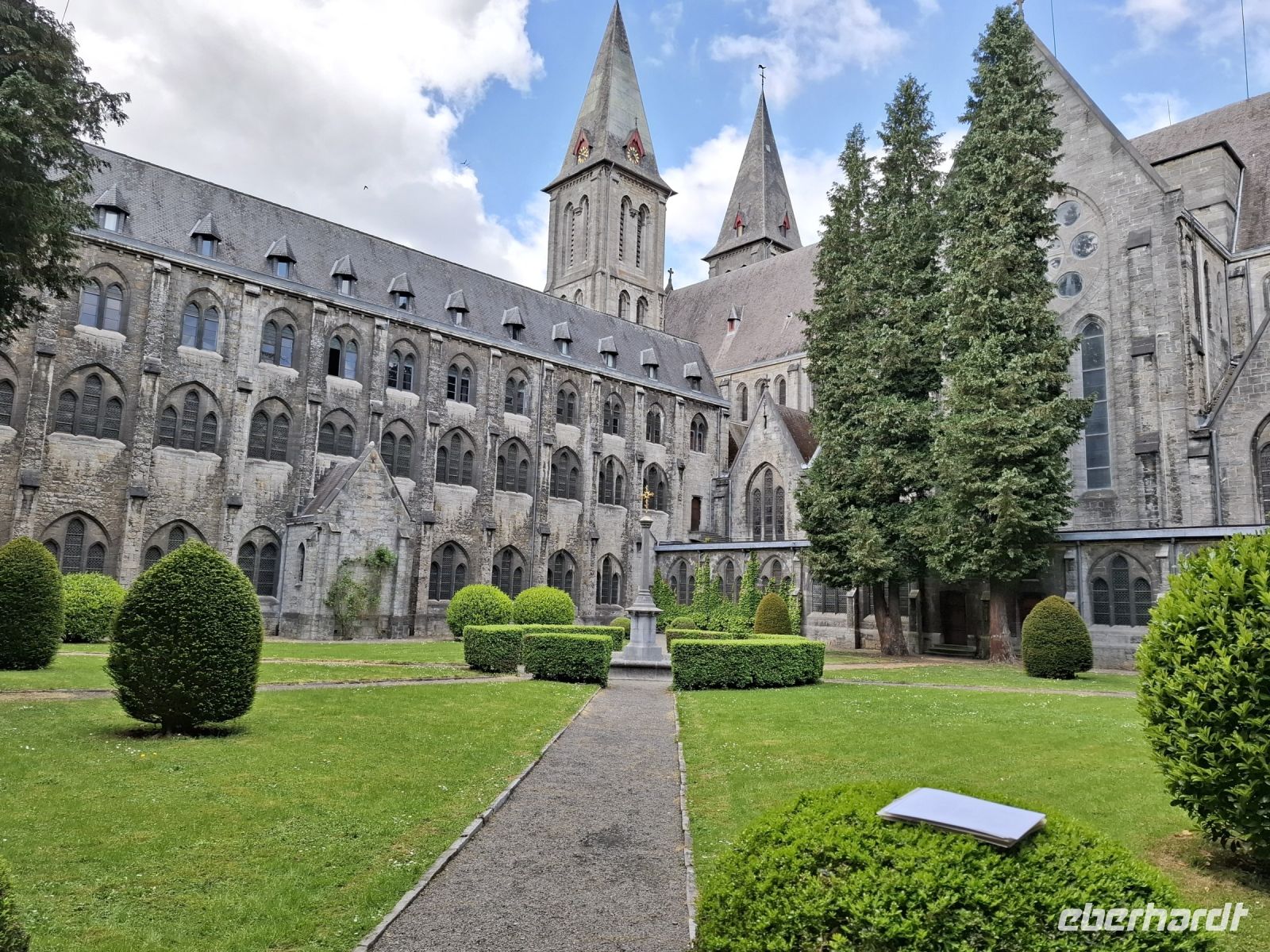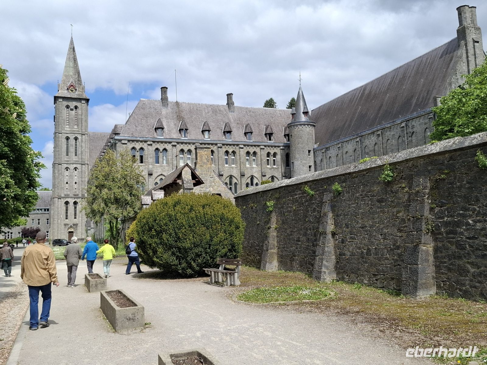 Wir hatten genügend Zeit zum romantischen Spaziergang und echtem „Lustwandeln“ in den wundervollen Gärten, bevor wir zum nächsten Höhepunkt weiterfuhren: Gegen Mittag erreichten wir die noch gar nicht so alte Benediktinerabtei Maredsous. Das Kloster wurde erst in der zweiten Hälfte des 19. Jahrhunderts angelegte. Heute leben in ihm noch etwa 30 Mönche. Weithin bekannt ist es für die Produktion von Bier und Käse und auch lokal geschätzt für sein Klosterbrot. Während einer Führung erfuhren wir viel über die Prinzipien des Lebens in diesem Kloster und den Aufbau der neogotischen großen Abteikirche. Bei einem kleinen Imbiss konnten wir den hier hergestellten Käse und das hier gebraute Bier verkosten