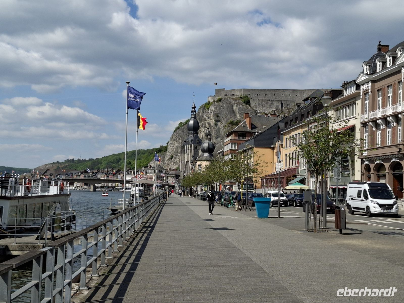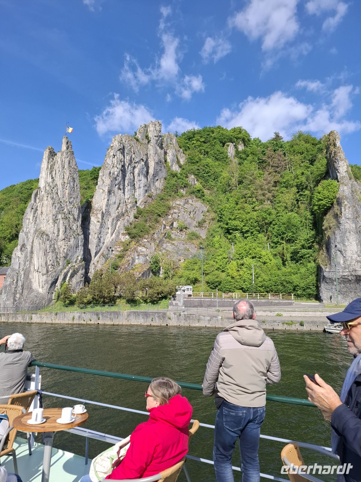 Auf der Weiterfahrt legten wir einen Stopp in Dinant ein. Das hoch von seiner mächtigen Festung überragte Städtchen an der Maas war früher bekannt für Messingarbeiten und ein bedeutender Warenumschlagplatz an der ab hier auch für größere Schiffe befahrbaren Maas. Es blieb Zeit für einen kurzen Stadtbummel und einen Besuch in der sehenswerten Kirche. Dann genossen wir, bei immer noch schönem Wetter eine kleine Bootsfahrt auf der Maas bis zur Einmündung des Flüsschens Lesse am Bayard-Felsen und zurück.