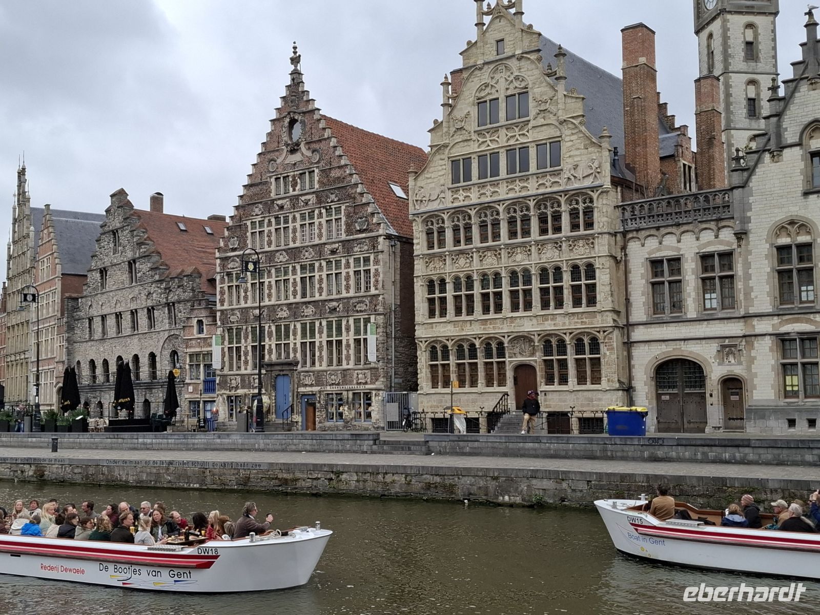 Pünktlich waren wir heute früh zum Treffpunkt mit der Stadtführerin an der Genter Jakobskirche und begannen sogleich von hier mit einer Runde in der alten Hafenstadt Gent, die im Mittelalter stets Rivalin des später bedeutendere Brügge war, das wir morgen kennenlernen würden.