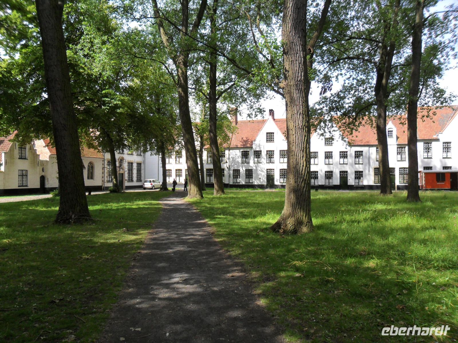 Erstes heutiges Ziel war die alte, einst begüterte Tuchmacherstadt Kortrijk, deren Name mit dem legendären Sieg einer flämischen Adels- und Ritterarmee über die schwerbewaffnete Reiterei Frankreichs im Jahre 1302 verbunden ist, der sogenannten „Schlacht der Goldenen Sporen“. Das Umfeld des „Großen Marktes“ von Kortrijk bietet einen schönen Belfried, den kleinsten und ältesten der zum UNESCO-Welterbe gehörenden, ein spätgotisches Rathaus, die interessante Sint.-Martenskerk und einen Beginenhof. Dieser ist nicht nur einer der ältesten, sondern auch einer der kleinsten und prägnantesten in Belgien. Er wurde schon um 1240 errichtet, bildet ein überaus idyllisches Ensemble und gehört seit 1998 zum UNESCO-Welterbe der „Flämischen Beginenhöfe“.