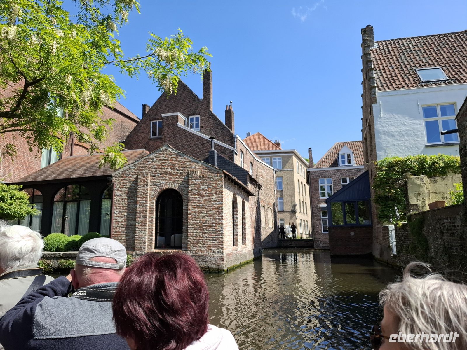 Nach etwas Freizeit trafen wir uns dann zu einer Grachtenrundfahrt, die uns vom Gruuthuse-Bootsplatz aus Brügge vom Wasser aus zeigte. Es lohnt sich auf jeden Fall, die alten Häuser auch einmal aus der Perspektive des Grachten-Wasserspiegels zu sehen.