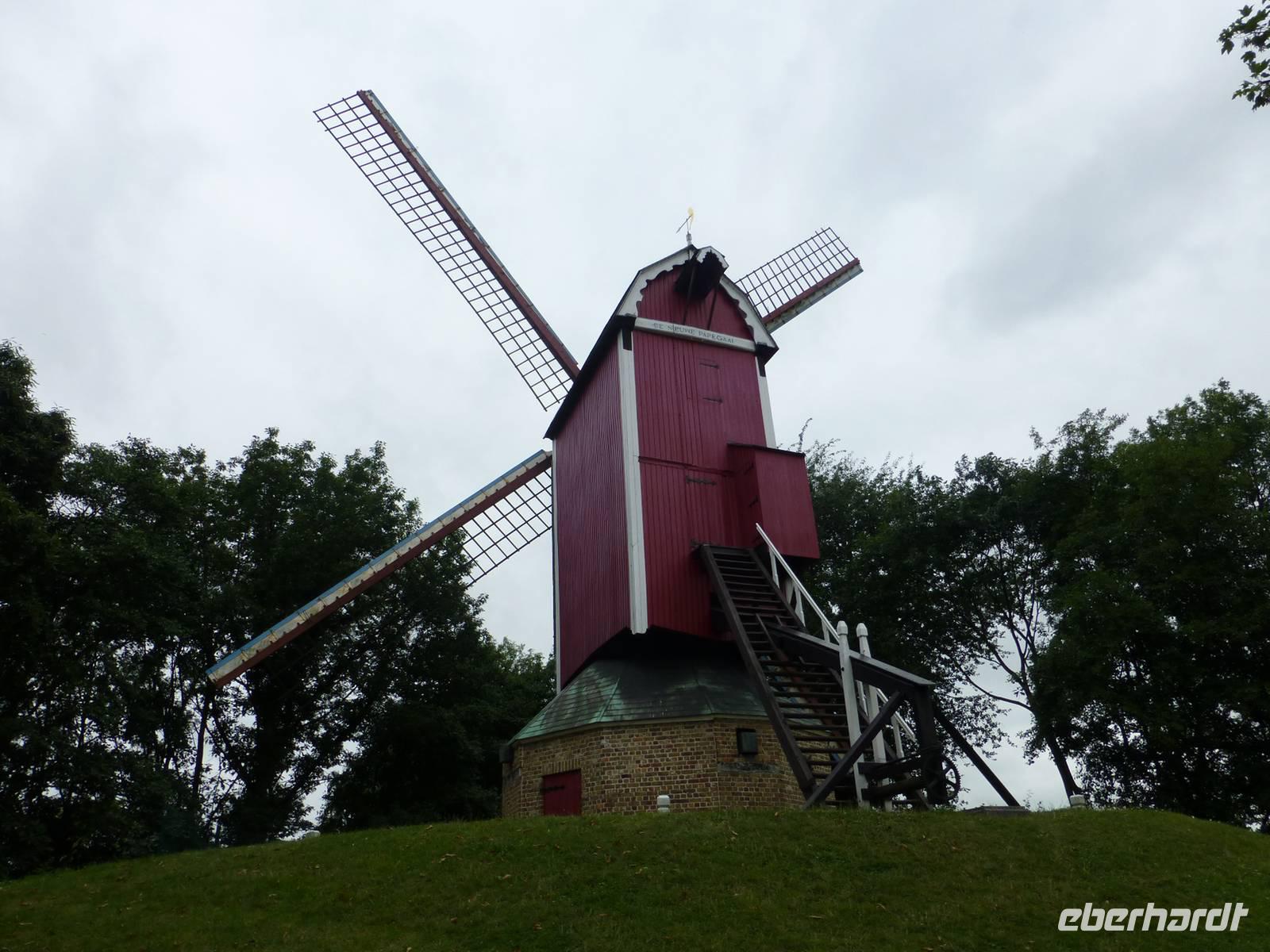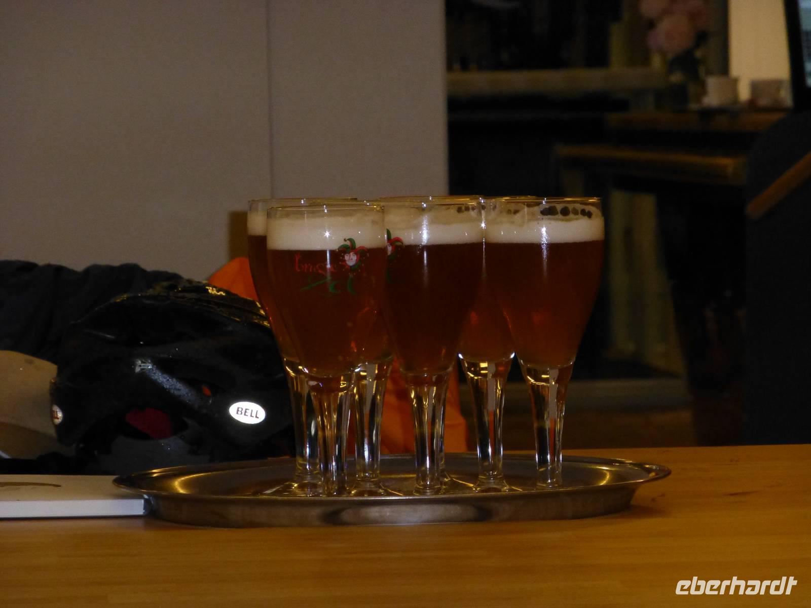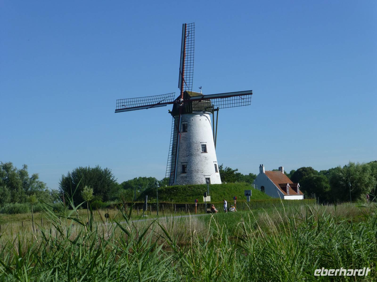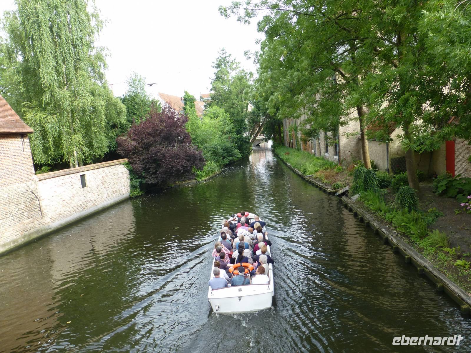Am Morgen trafen wir uns mit unserem Stadtführer am Smeedenport, dem Eingang zur Stadt, um einen Rundgang durch das schöne Brügge zu unternehmen. Durch die engen Gassen führte unser Weg zum Beginenhof, zur Heilig-Blut-Basilika und vorbei am idyllischen Rozenhoedkaai, dem Rathaus und der Liebfrauenkirche zum Grote Markt mit dem 83m hohen Belfried. Da unser Führer früher Arzt war, ließ er so die eine oder andere Geschichte zur Medizin im Laufe der Jahrhunderte mit einfließen. Anschließend blieb Zeit für eigene Erkundungen in der schönen Backstein-Stadt. Am Nachmittag trafen wir uns wieder am Bus zum Ausladen der Räder, denn wir wollten noch die Region rund um Brügge erkunden. 20 km fuhren wir zunächst entlang des Stadtwalls, vorbei an 4 typischen Windmühlen, durch kleine Wälder und liebliche Vororte. Nach der Tour besuchten wir die Brauerei „De halve Maan", wo wir zunächst ein kühles Freibier und anschließend eine spritzig, witzige Führung genossen. Heiter machten wir uns auf den Weg zum Abendessen in der urigen Bierkneipe Cambrinus, wo uns eine deftige Mahlzeit mit saftigem Hähnchen erwartete.