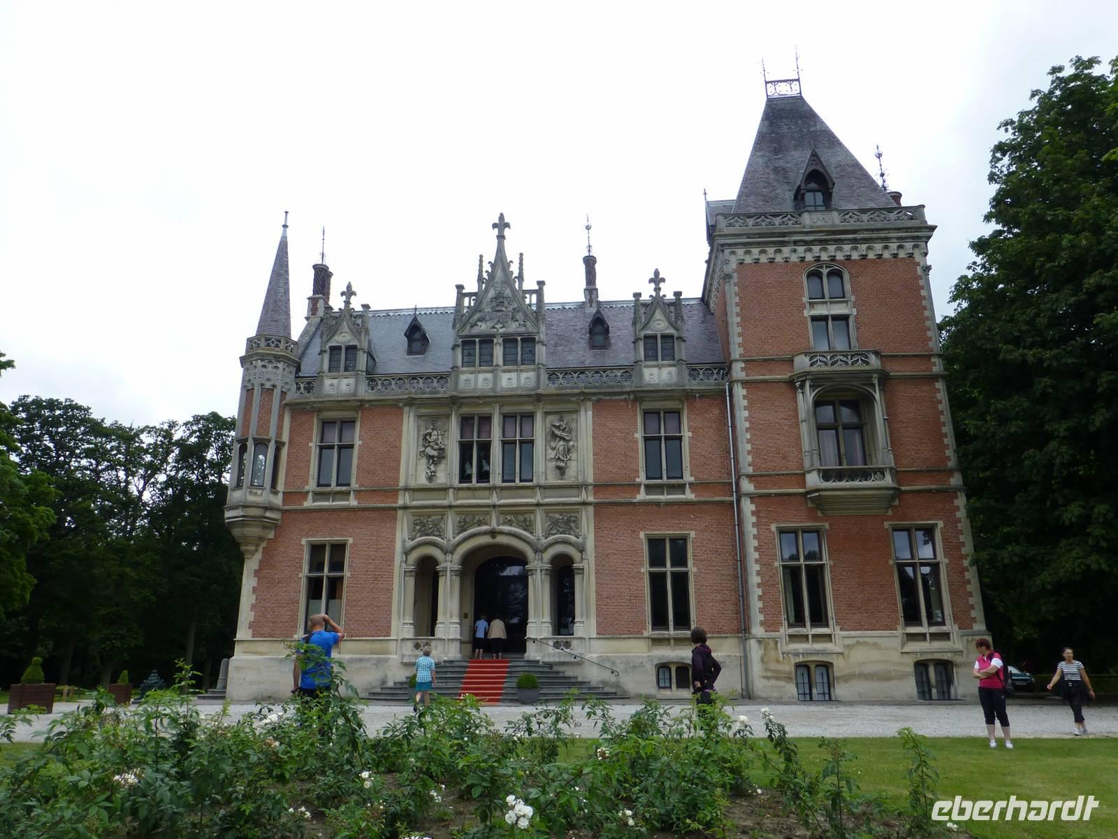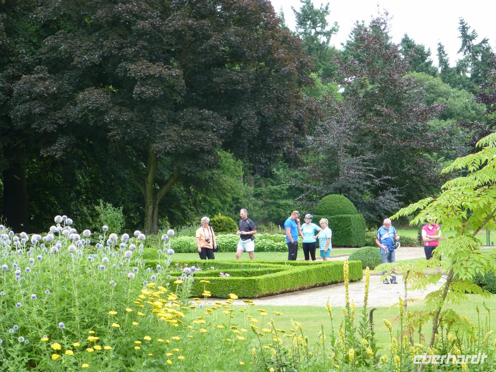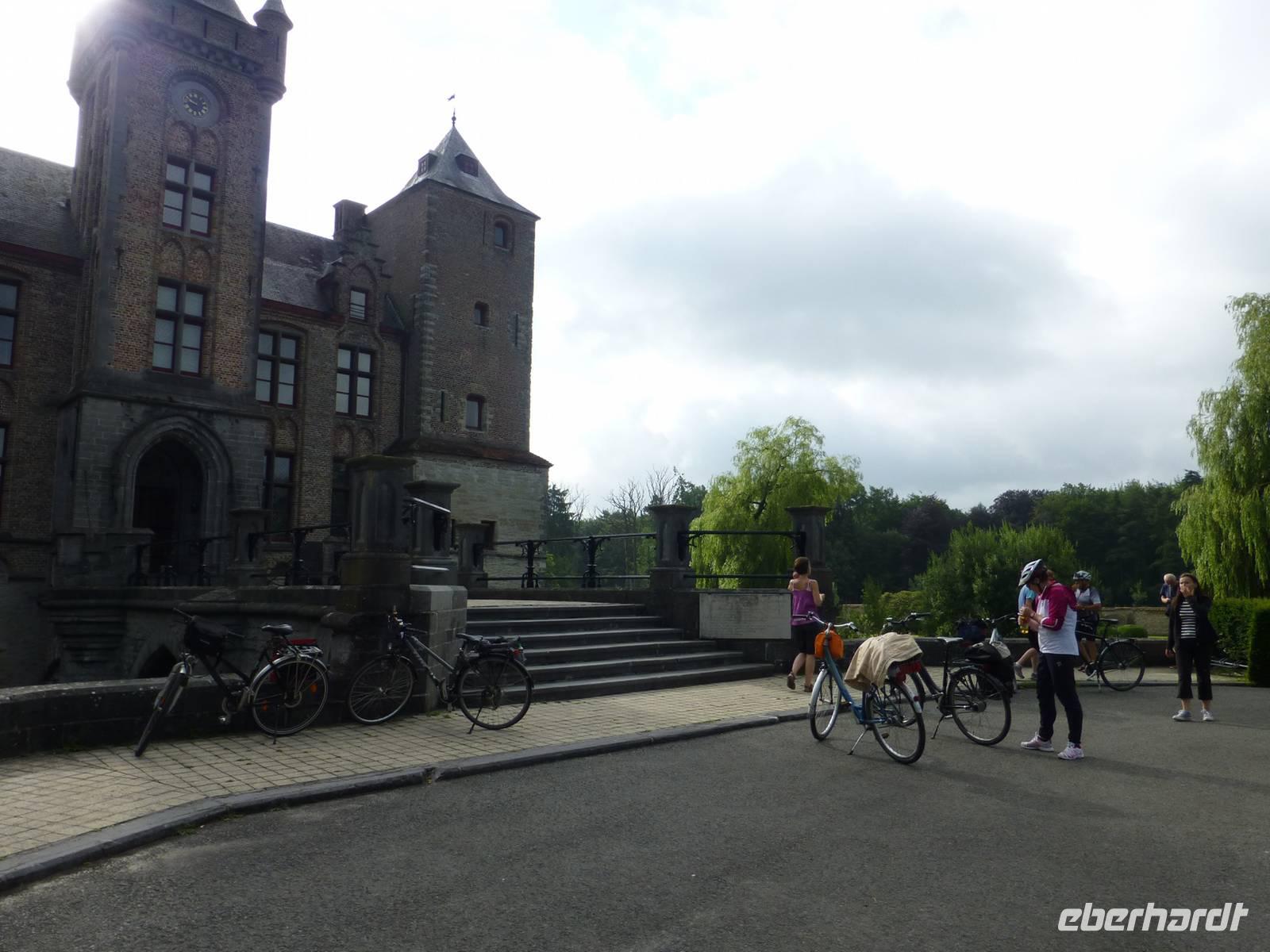 Da das Wetter noch etwas durchwachsen war, beschlossen wir, die geplante Küstenfahrt auf den folgenden Tag zu verschieben und heute die Schlössertour zu unternehmen. Mit den Rädern fuhren wir vom Hotel aus zum Wasserschloss Tillegem, was völlig unerwartet in der Landschaft erschien. Die Route führte uns heute vor allem durch kleine Wälder, sodass wir die Ruhe der Natur richtig genießen konnten und der sonst so stressige Alltag aus den Köpfen verschwand. Am Schloß D´Aerdrycke trafen wir auf Busfahrer Frank, der uns mit heißen Würstchen und Kaffe versorgte. Hier legten wir eine Mittagspause ein, so blieb Zeit, um das schöne Anwesen zu erkunden und zu entspannen. Tagesziel war das Schloß Tudor mit dem Planetarium und dem Kräutergarten, wo wir am Nachmittag ankamen und noch etwas gemütlich zusammen saßen, bevor wir die letzte kleine Etappe in Richtung Brügge antraten.
