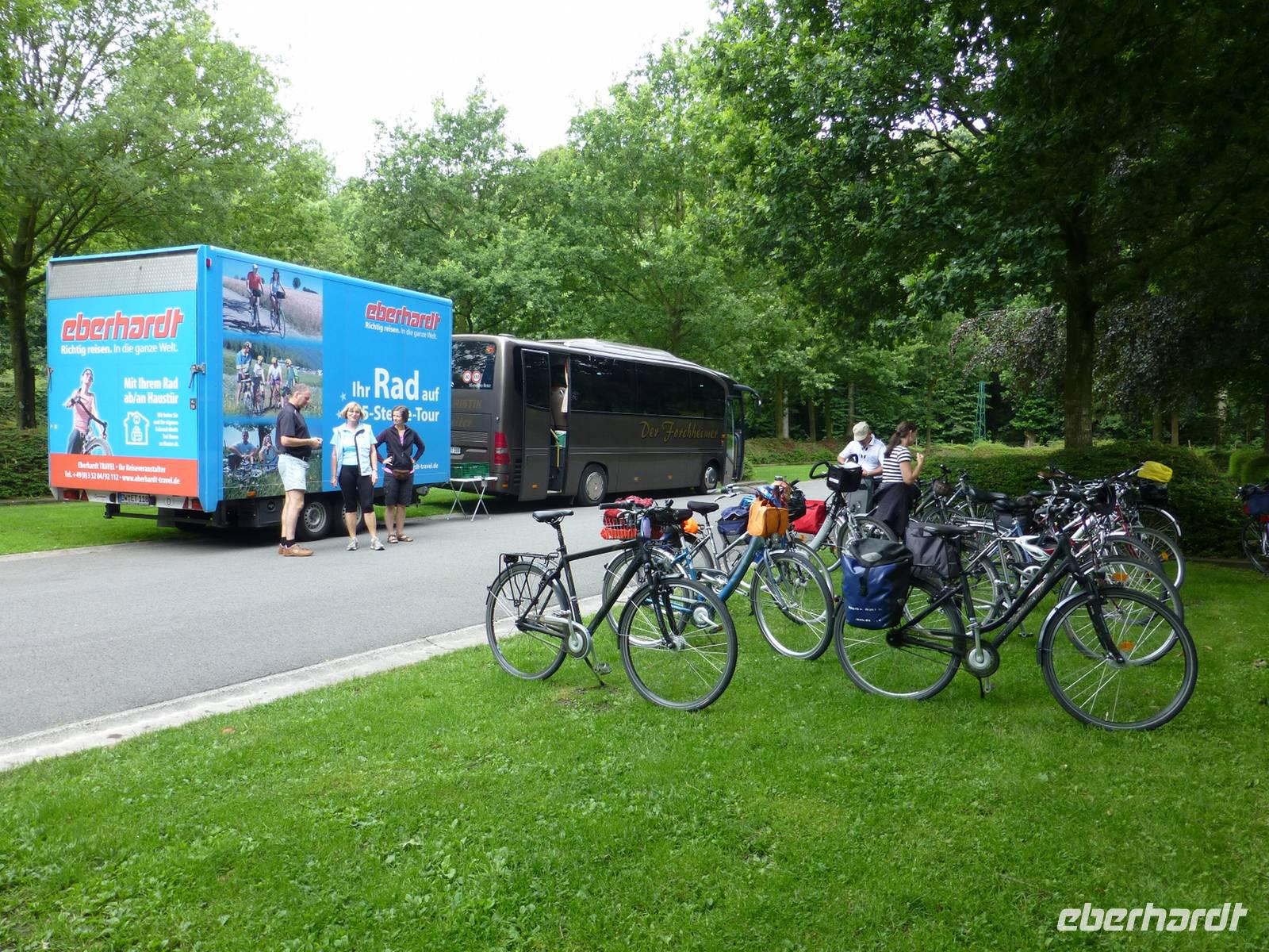 Der diesjährige Sommerurlaub sollte für die Gäste unserer 12-köpfigen Reisegruppe verbunden sein mit Aktivität, Kultur und Natur. All das bot unsere 8-tägige Radreise in die Schatzkammer Flanderns. So brachen wir an diesem Sonntagmorgen zeitig auf, um die lange Anreise bis nach Belgien anzutreten. Bei jedem Zustieg wurden die mitgebrachten Fahrräder auf den Eberhardt-Radanhänger verladen. Einige Gäste nutzten auch die Möglichkeit ein Leihfahrrad von Eberhardt TRAVEL zu mieten. In Köln traf unsere Radreiseleiterin Sandra auf unsere Gruppe, die uns die nächsten Tage durch Ihr Lieblingsreiseland führen sollte. Um 18 Uhr erreichten wir Hasselt, wo wir noch einen kleinen Stadtbummel unternahmen und ein leckeres Abendessen genossen.