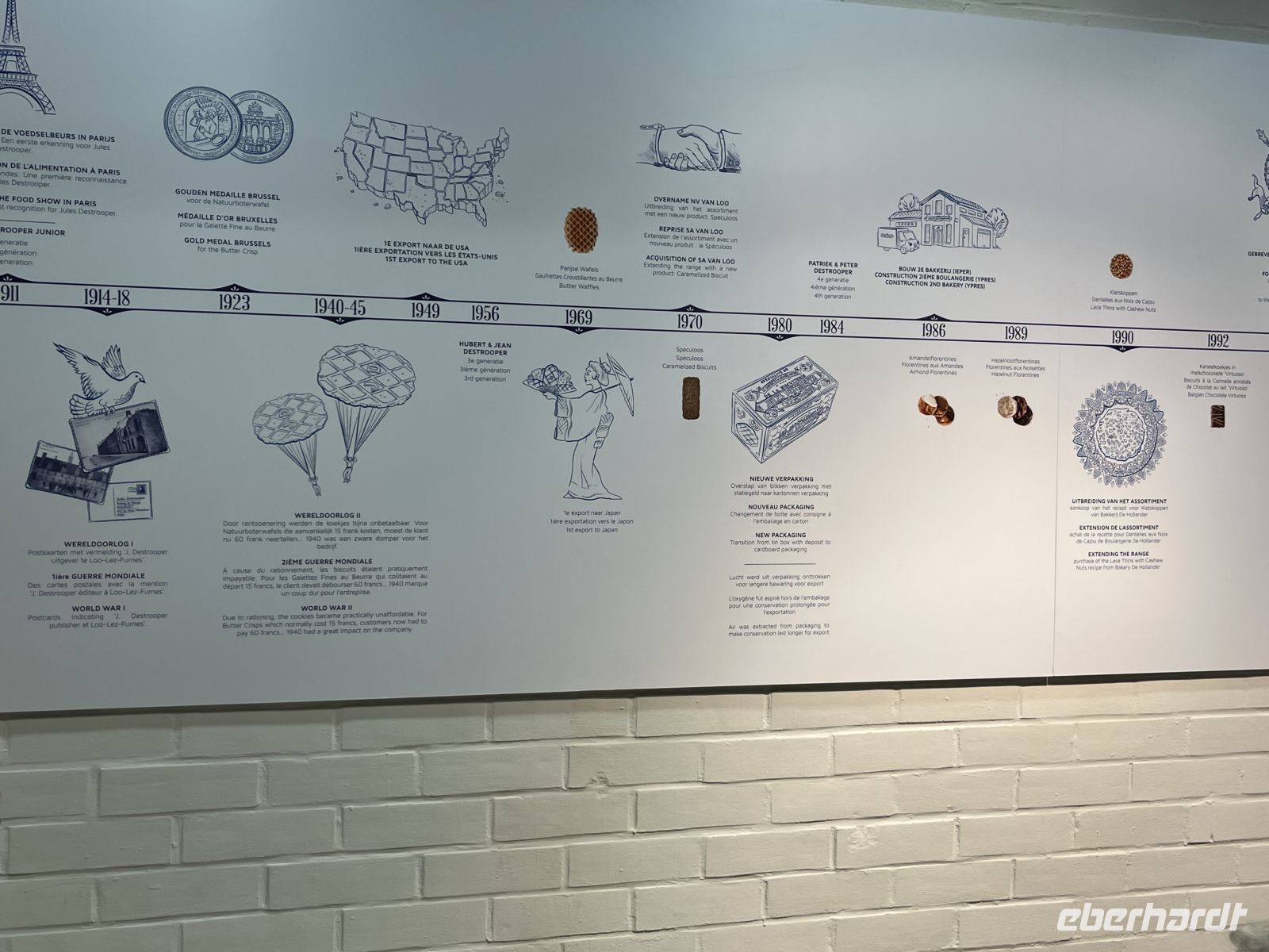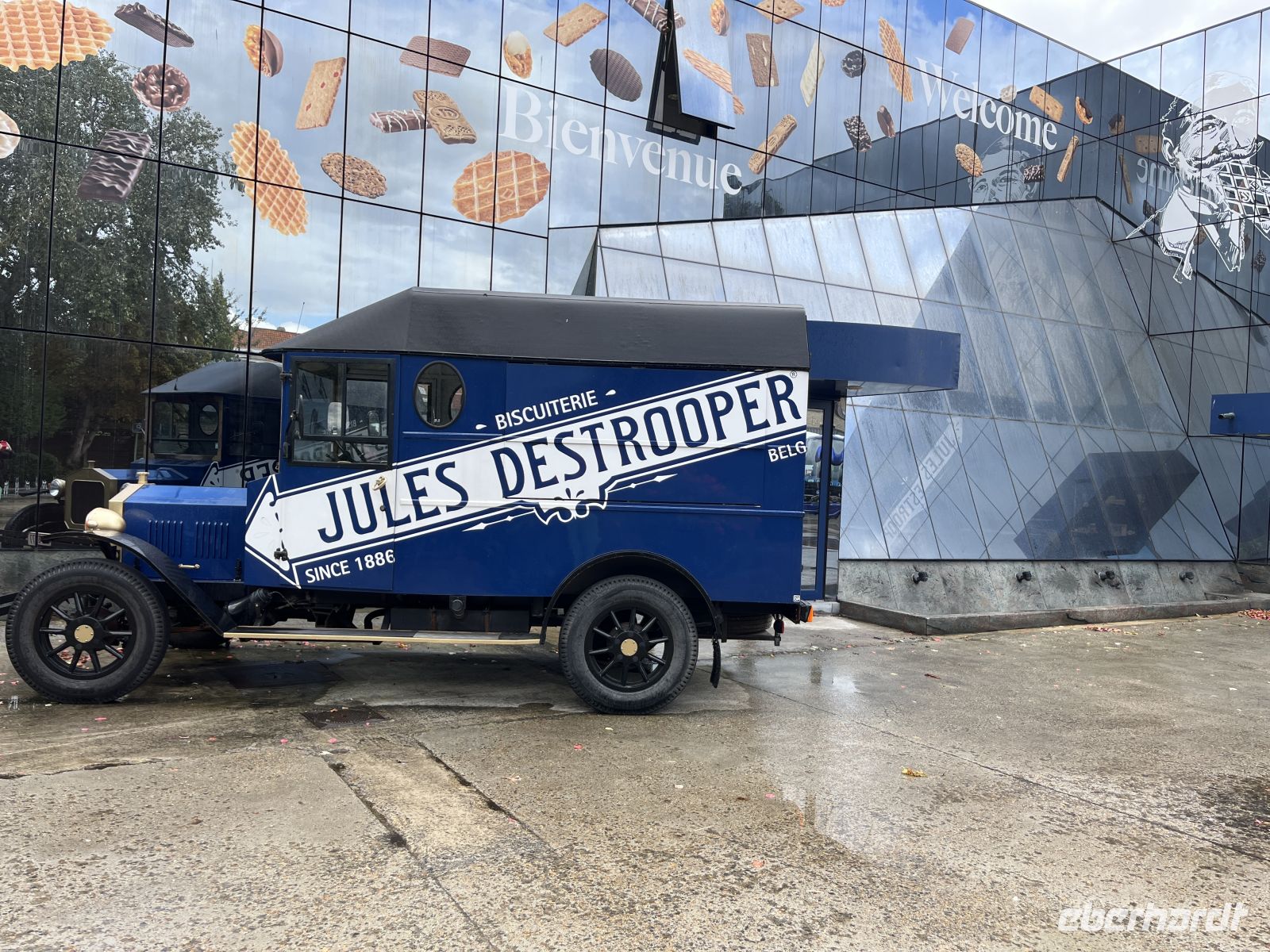 Wir fuhren heute nach Lo, wo das Besucherzentrum des Unternehmens sich befindet. Bei einer Führung wurde uns von der Geschichte des Unternehmens und der Produktion der Kekse erzählt. Ende des 19. Jahrhundert hat Herr Destrooper als erstes den Mandelkeks erfunden und in Waffeleisen gebacken. Als dieser sich gut verkaufte, folgte die Erfindung der Kekswaffel.