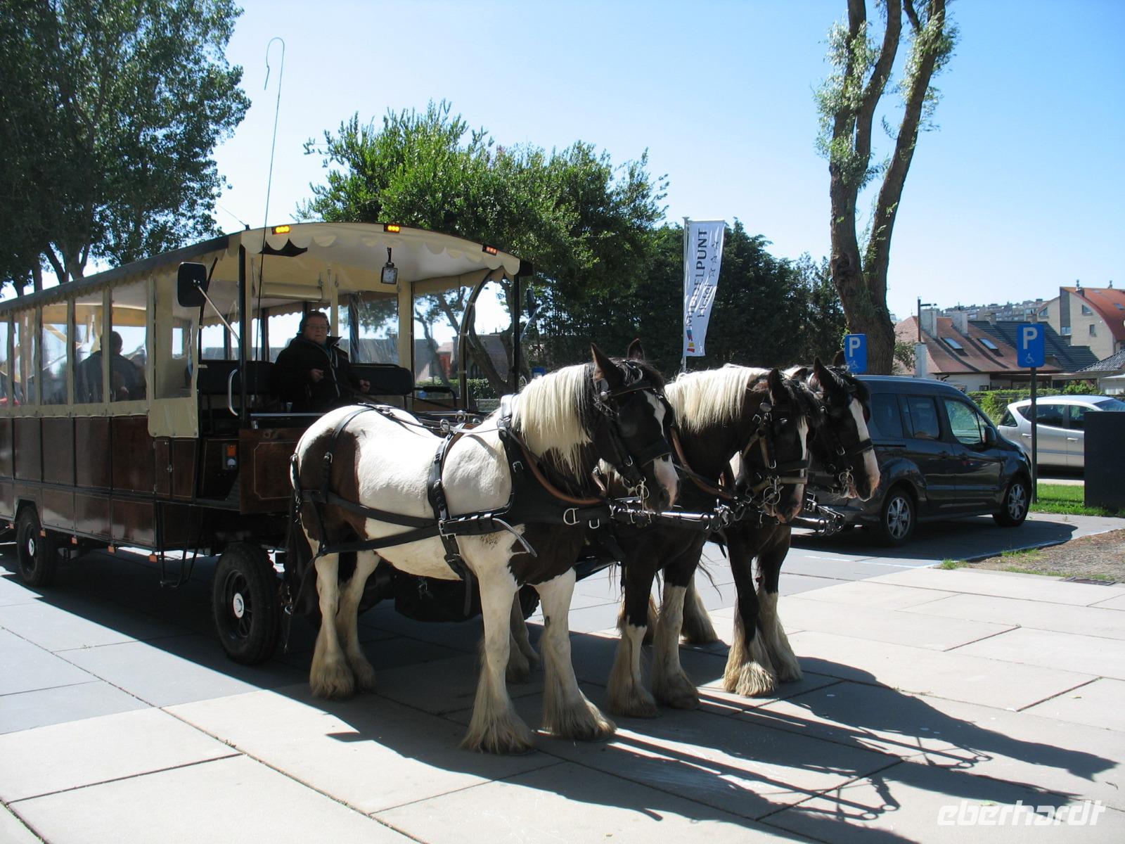 Um 14h wurden wir von Peter mit einer großen Pferdekutsche abgeholt. Diese hatte eine Vertrauen erweckende Rampe, sodass alle, auch mit Rollstuhl, gut in der Kutsche Platz fanden. Die Kutschfahrt führte uns am Strand entlang und auch ins Hinterland. Wir bekamen somit einen umfassenden Eindruck von der Landschaft.