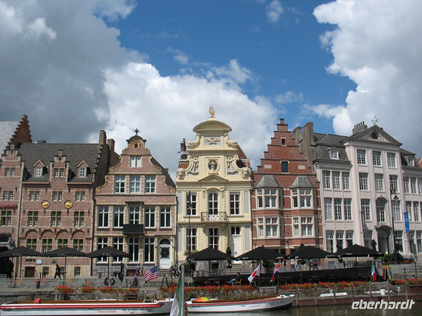Wir brachen auf nach Gent. In der Innenstadt trafen wir unsere Stadtführerin, die mit uns durch die Gassen ging und uns besonders schöne Bürgerhäuser zeigte, die allesamt Zeugnis von dem großem Reichtum der Stadt gaben. Besonders die Häuserzeile Korenlei gefiel vielen sehr gut.Wir sahen auch den Belfort, den Stadtturm mit dem Drachen auf der Spitze, der manchmal bei Stadtfesten sogar Feuer spuckt. Ein Besuch in der Kathedrale rundete die Stadtführung ab.