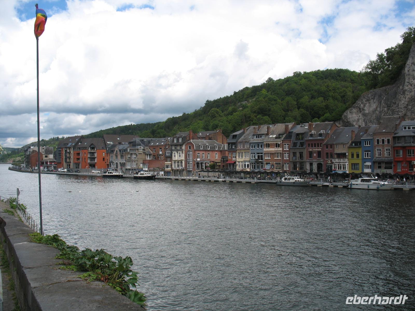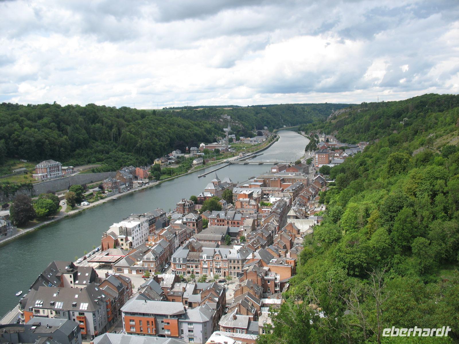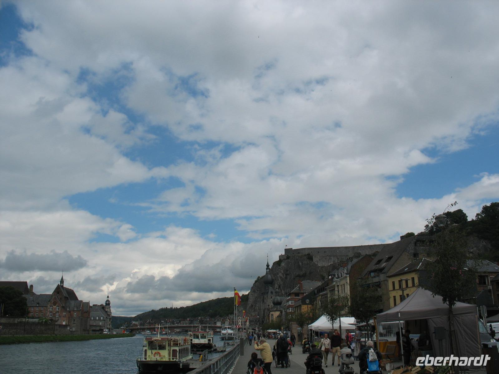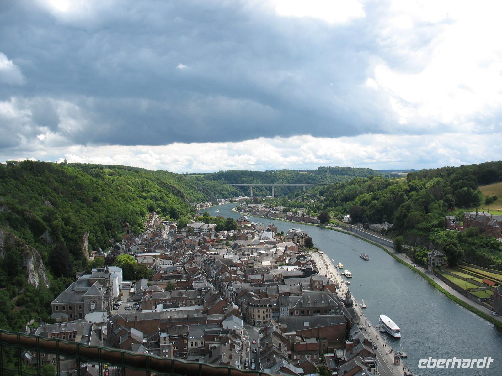 Heute stand das Maastal auf dem Programm. Wir fuhren auf der Autobahn nach Namur und von da aus an der Maas entlang, wo sie sich tief in die Ardennen eingeschnitten hat. Wir hatten eine gute Sicht auf Namur mit der Festung auf den Felsen über der Stadt. Wir sahen schöne Felsen, naturbelassene Flussauen, wo seltene Vögel ihre Heimat haben und malerische Städte am Flussufer. In Dinant stiegen wir aus, schlenderten am Ufer entlang und machten Fotos von den Häusern, die sich im Wasser spiegelten. Auch die Stiftskirche Notre Dame de Dinant war sehenswert. Nach einer Mittagspause holte der Busfahrer uns wieder ab und fuhr uns hinauf zur Zitadelle. Die Rampe zum Eingang der Zitadelle war sehr steil und holperig, ein kleines Abenteuer für uns. Aber mit vereinten Kräften schafften wir das und wurden für die Anstrengung mit einer wunderbaren Aussicht und interessant gestalteten Ausstellungsräumen belohnt. Am Nachmittag fuhren wir wieder zurück nach Edegem in unser Hotel.