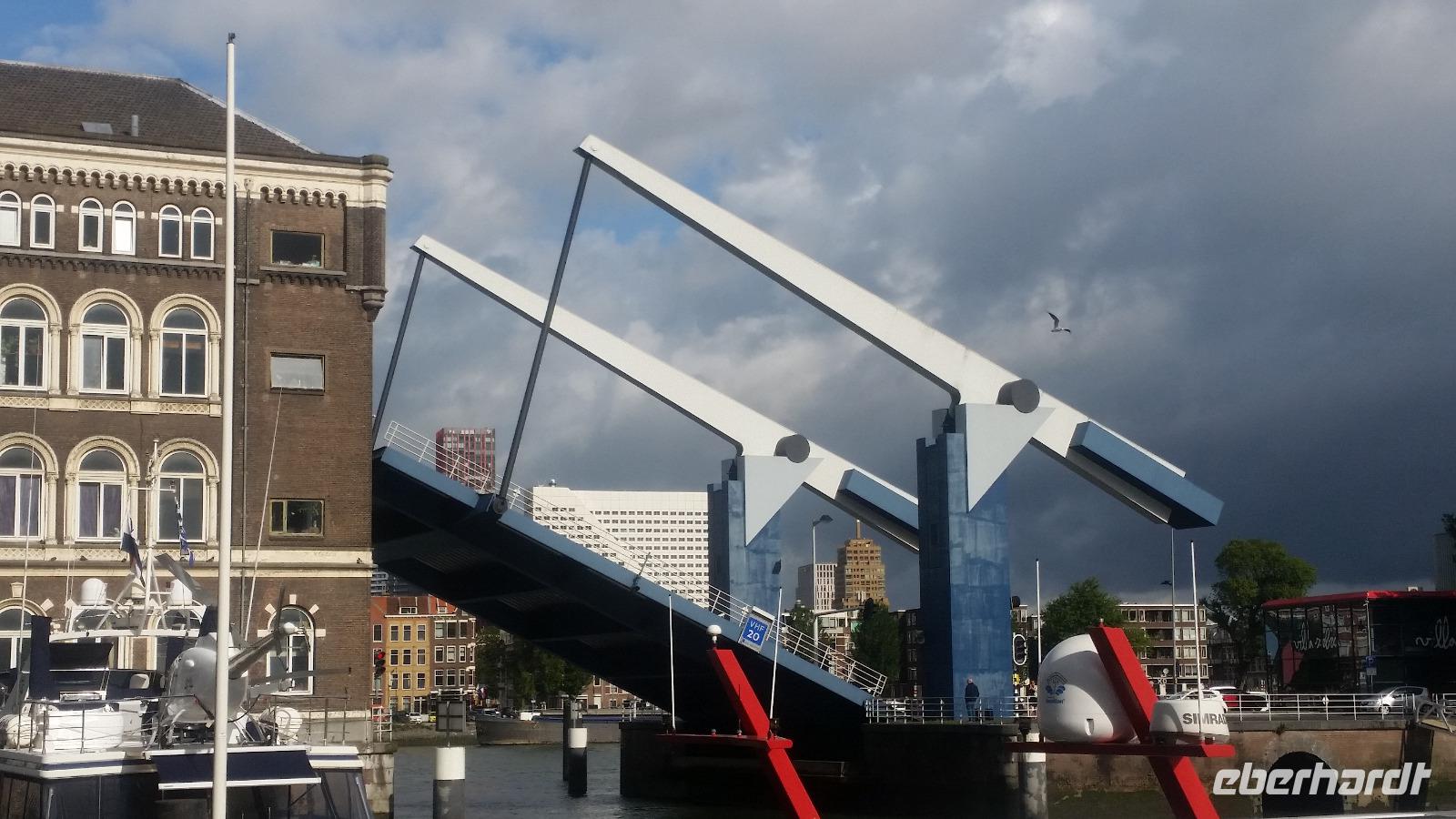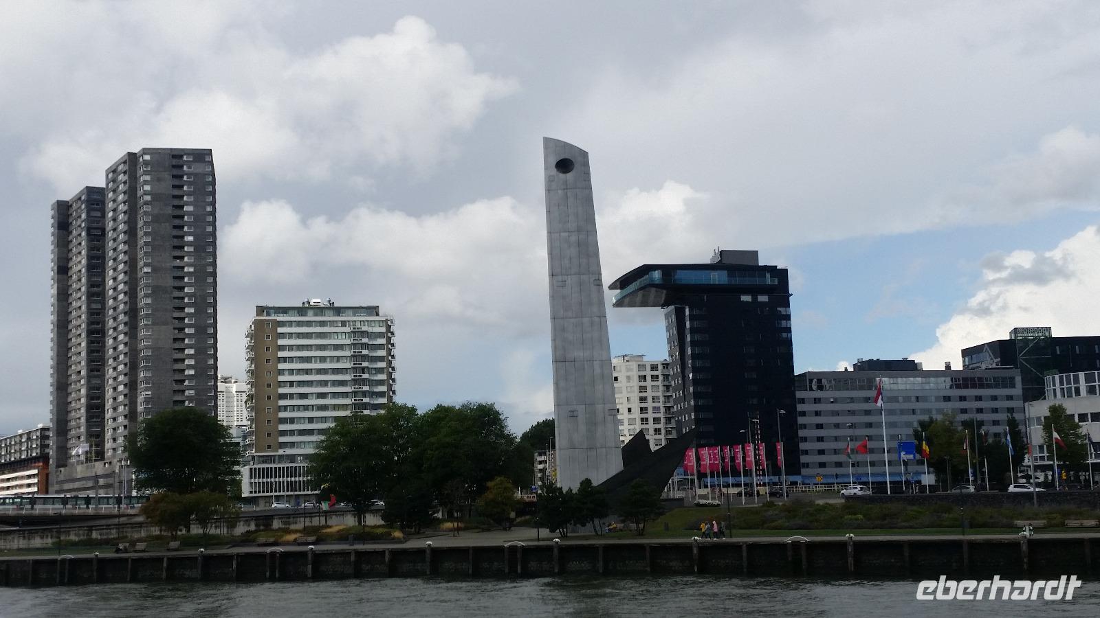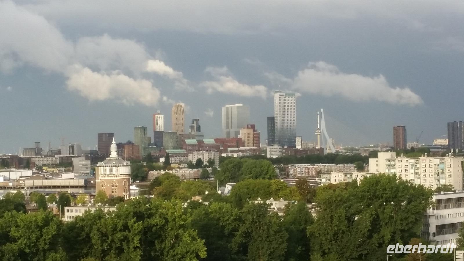 Geprägt durch den größten Hafen Europas und somit auch größten Arbeitgeber am Ort. Die große Erasmusmusbrücke überspannt die Maas. Also „Klein Manhattan" an der Maas Ei