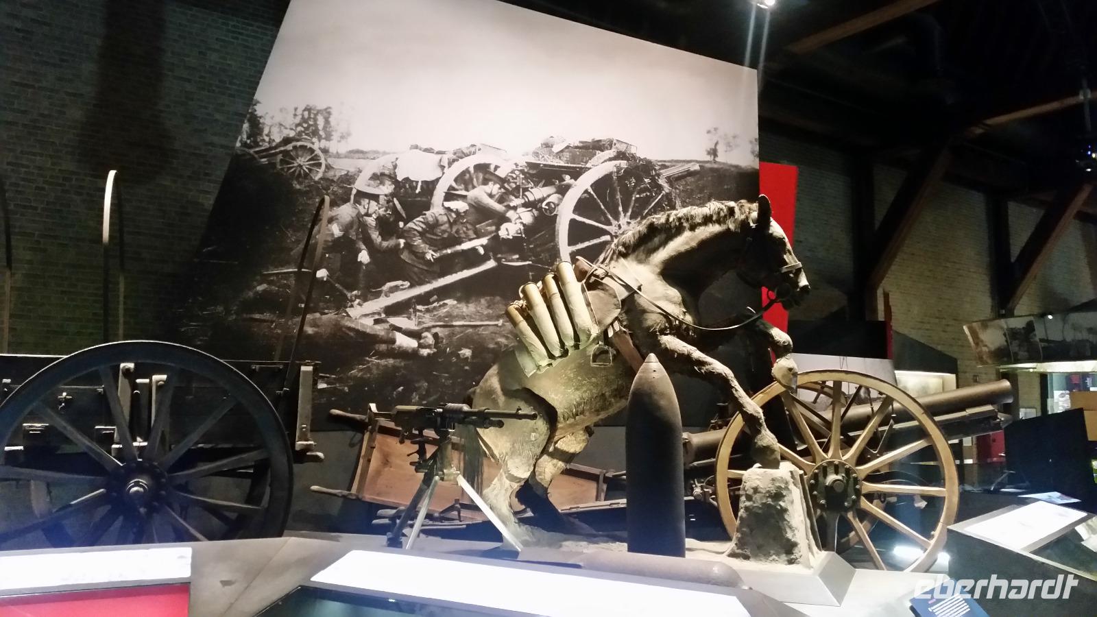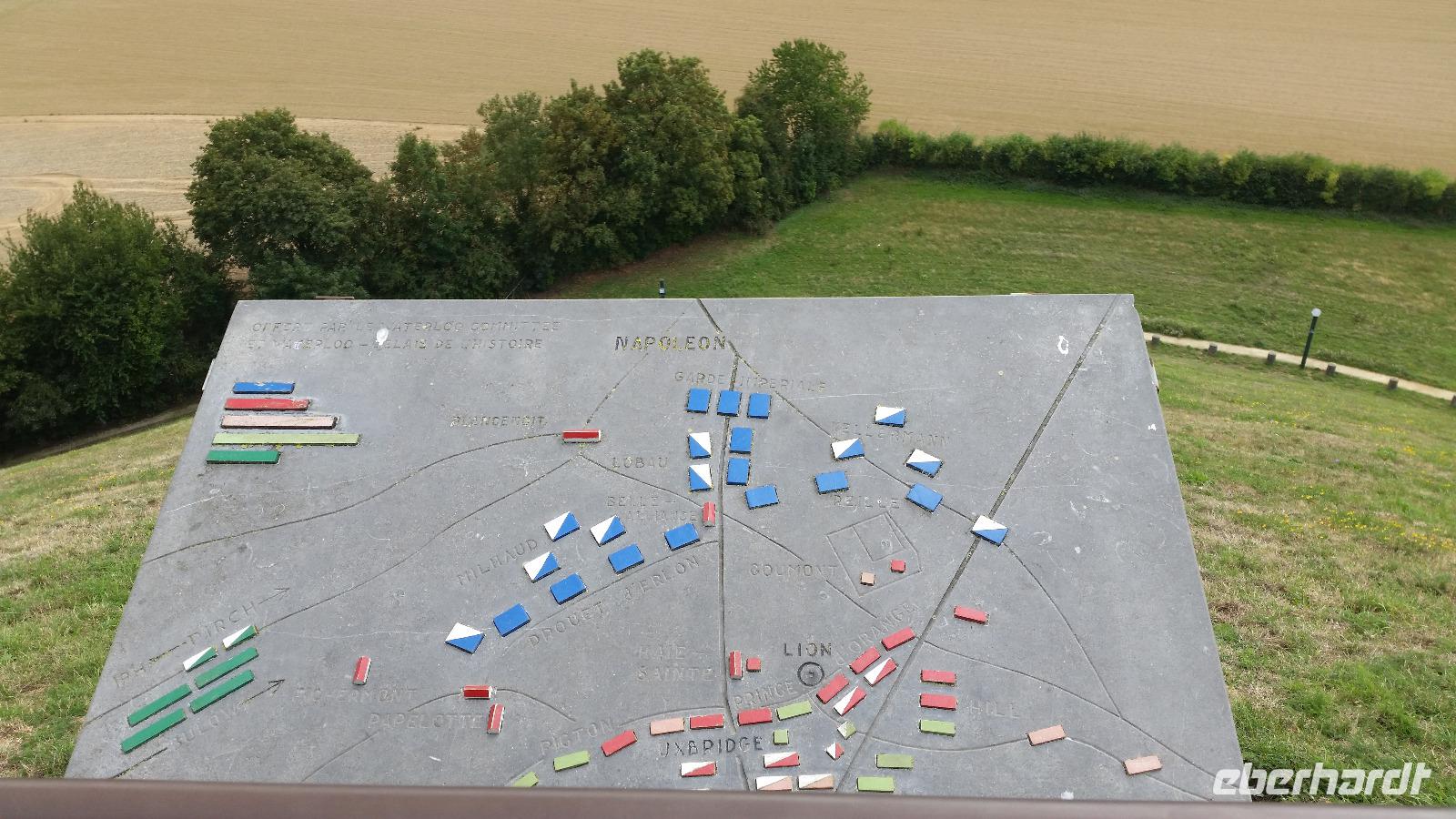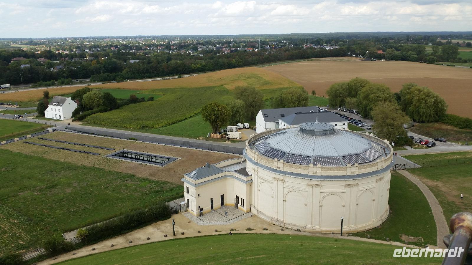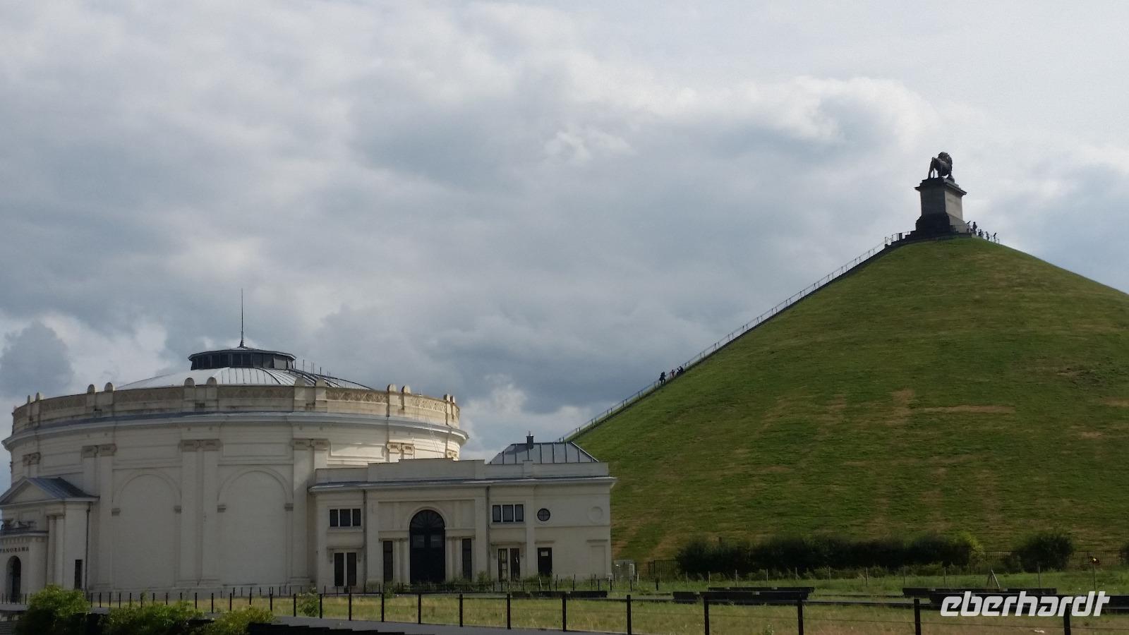 Nachmittags zum nächsten geschichtsträchtigen Ort, Waterloo. Hier fand im Jahr 1815 die entscheidende Schlacht gegen die napolianischen Truppen statt. Zu Ehren der gefallenen Soldaten ist der 40 m hohe Löwenhügel aufgeschüttet worden. Die Schlacht können wir auf einem Panoramabild erleben und im Museum „Memorial 1815" viele Details erfahren. Beeindruckend war der 4 D-Film über die Schlacht.