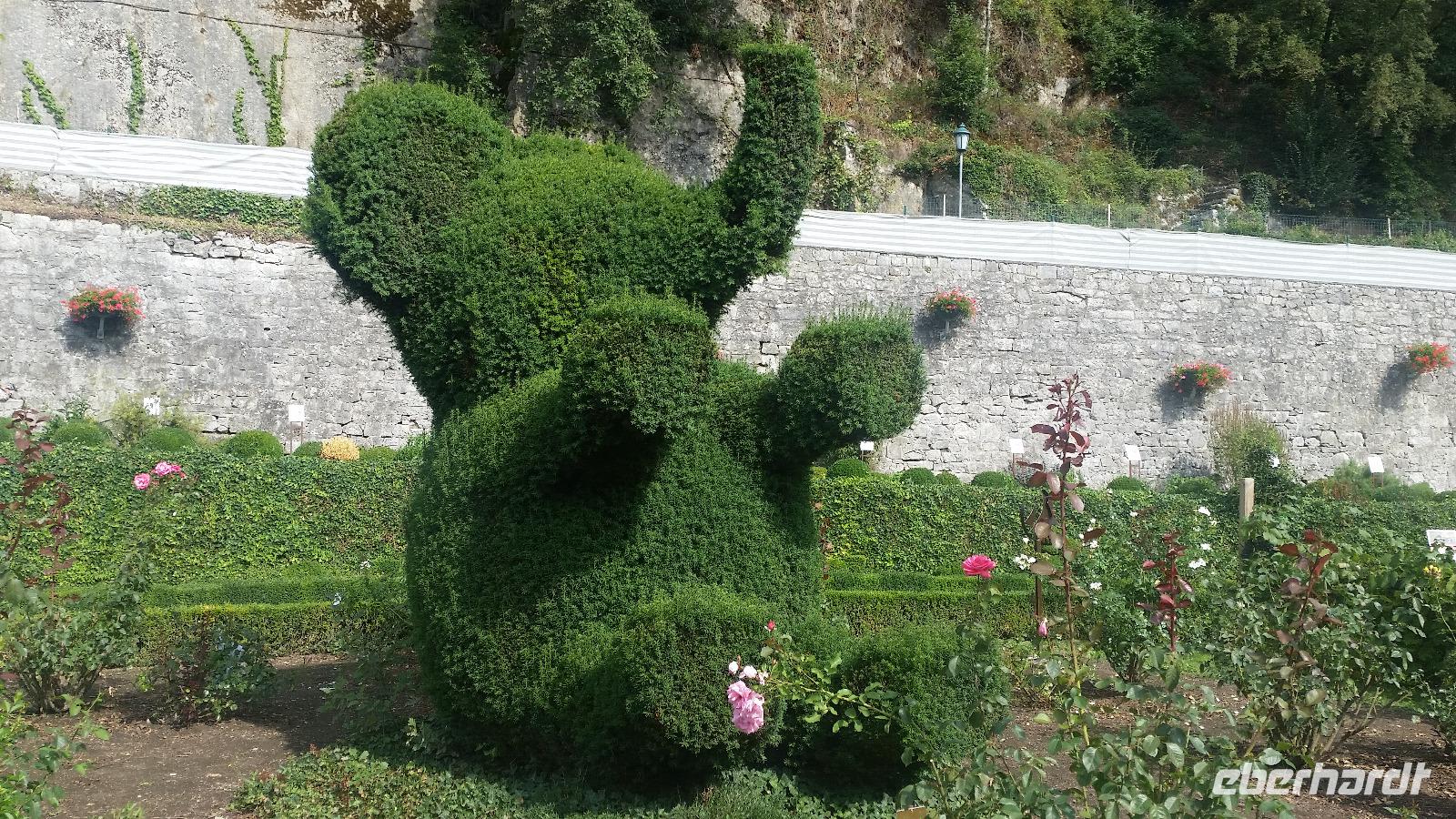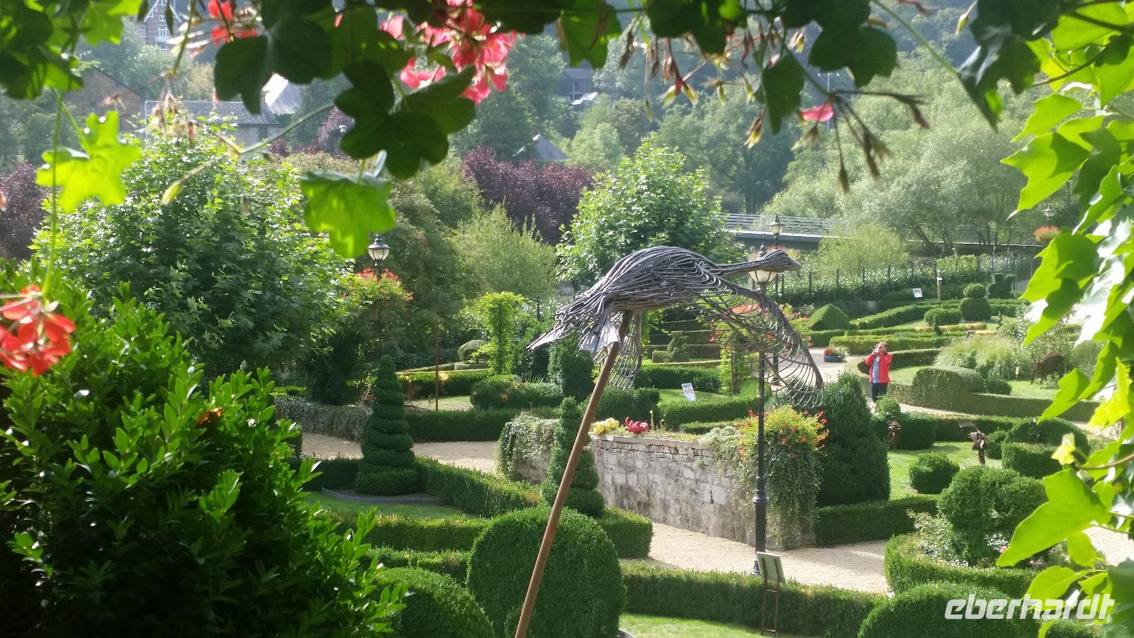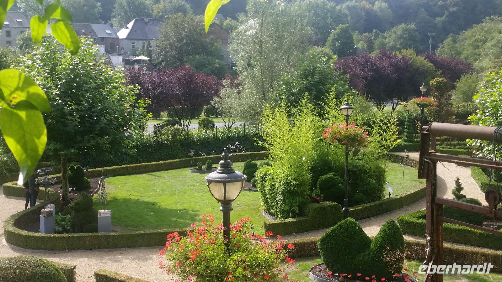 An der Maas entlang fahren wir dann in die Ardenne hinein zur kleinsten Stadt Belgiens mit 400 Einwohnern. Durbuy. Bei einem Auffenthalt schauen sich viele Gäste den schönen Skulpturenpark an, in dem aus Buchsbaum riesige Figuren geschnitten sind. Der Ort liegt idyllisch und eine Burg darf auch nicht fehlen.