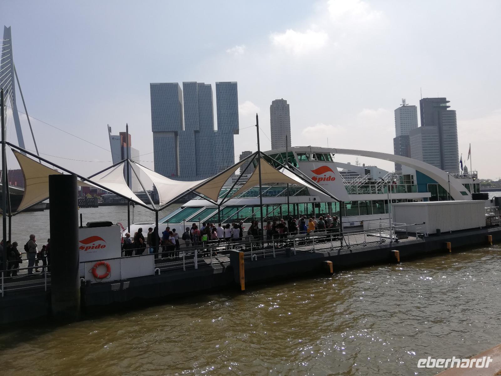 (Witte Huis),ein zehnstöckiges Kontorhaus. Als es 1900 erbaut wurde war es das erste Hochhaus in Europa. Wir bräuchten noch viel mehr Zeit für diese moderne,lebendige, hochinteressante Stadt. Aber wir haben ein weiteres Ziel. Unsere Hafenrundfahrt dürfen wir nicht verpassen. Rotterdam hat den größten Hafen Europas und da wollen wir wenigsten einen Teil sehen. Bei bestem Wetter mit Sonne und Wind genießen wir diese Fahrt. Danach bleibt noch etwas Zeit für eine Mittagspause.