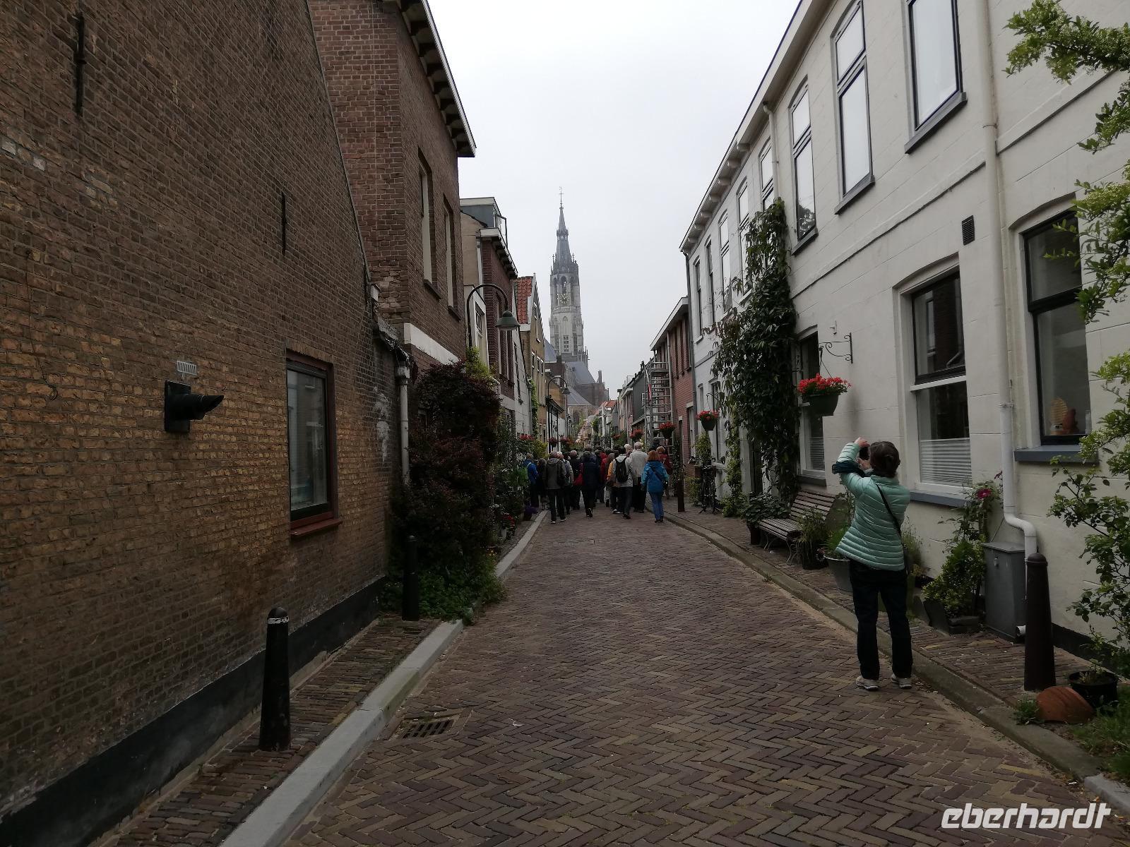 Nach einer kurzen Mittagspause fahren wir nach Delft und unsere Stadtführerin Monique erwartet uns bereits. Wir haben eine Stunde Zeit für die Stadt und Monique überzeugt mit ihren Wissen. Beeindruckend ist das gesamte Stadtbild mit seinen malerischen Kanälen und den vielen Sehenswürdigkeiten. Dabei möchte ich Wilhelm von Oranien hervorheben, der seine Residenz ab 1572 in die befestigte Stadt verlegte, wo er 1584 ermordet wurde. Er ist in der Nieuwe Kerk bestattet; in der Gruft der Kirche werden seither die Mitglieder der königlichen Familie beigesetzt. Viel zu schnell war die Stunde vorbei als uns Monique wieder zum Bus brachte. Wir verabschieden uns aber noch nicht von Delft, denn wir haben noch einen Termin in der