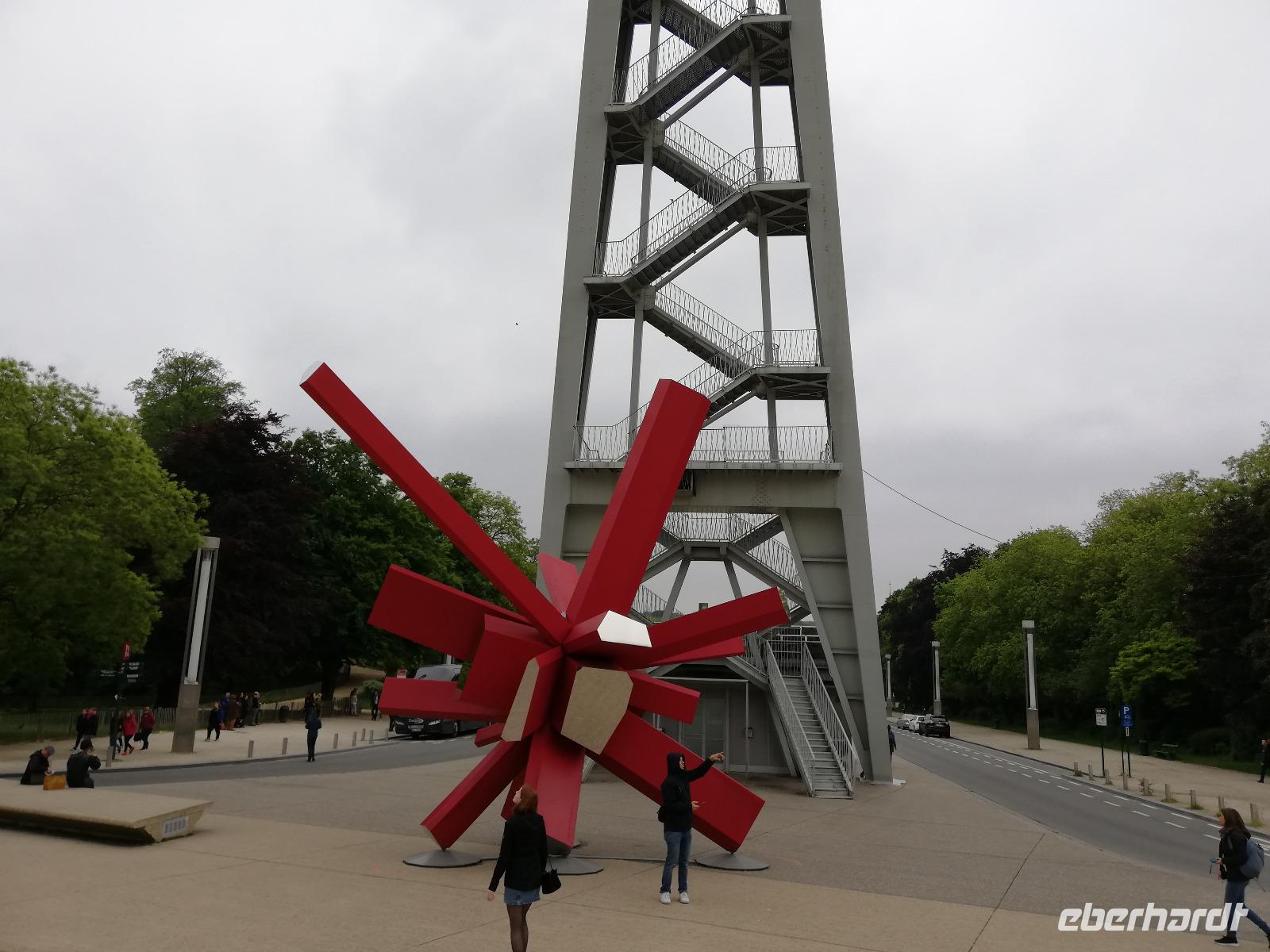 Nach einem guten Frühstück werden die Koffer wieder in den Bus verstaut und wir starten unsere Fahrt Richtung Belgien. Auf den Weg dahin Stoppen wir kurz in der belgischen Enklave Barle Hertog, diese gehört zur Provinz Antwerpen. Es ist eine verzwickte Sache nahe der belgischen Grenze. Denn „Ein Großteil der belgischen Gemeinde Baarle-Hertog liegt nämlich als Exklave von niederländischem Gebiet umgeben in direktem Zusammenhang mit der niederländischen Gemeinde Baarle-Nassau und bildet mit dieser zusammen den Ort Baarle. Baarle-Hertog stellt wiederum auch keine zusammenhängende Exklave dar: Die Gemeinde besteht aus 22 Stücken, von denen 16 im Ort Baarle selbst und 6 in der näheren Umgebung von Baarle liegen. In 2 der zu Baarle-Hertog gehörenden Exklaven liegen wiederum insgesamt 7 niederländische Exklaven von Baarle-Nassau. „. So kompliziert gestaltet sich die Grenze zwischen der Niederlande und Belgien. Auf unserem weiteren Weg nach Brüssel haben wir einen Blick auf Antwerpen bevor wir gegen Mittag vor dem Atomium stehen. Ein Wahrzeichen der Stadt.Das 165-milliardenfach vergrößerte Eisenatom, dass eigens für die Weltausstellung 1958 entworfen wurde, möchte sich keiner von uns entgehen lassen. Zuerst fahren wir mit dem Aufzug von der Ebene 0 in die Ebene 7 . In 5m/s (1958 war es der schnellste Aufzug ) kommen wir zum 360° Panorama an. Die Fahrt hat sich gelohnt. Nach rund 1,5 Stunden treffen wir uns mit unserer Stadtführerin Christine am Bus.