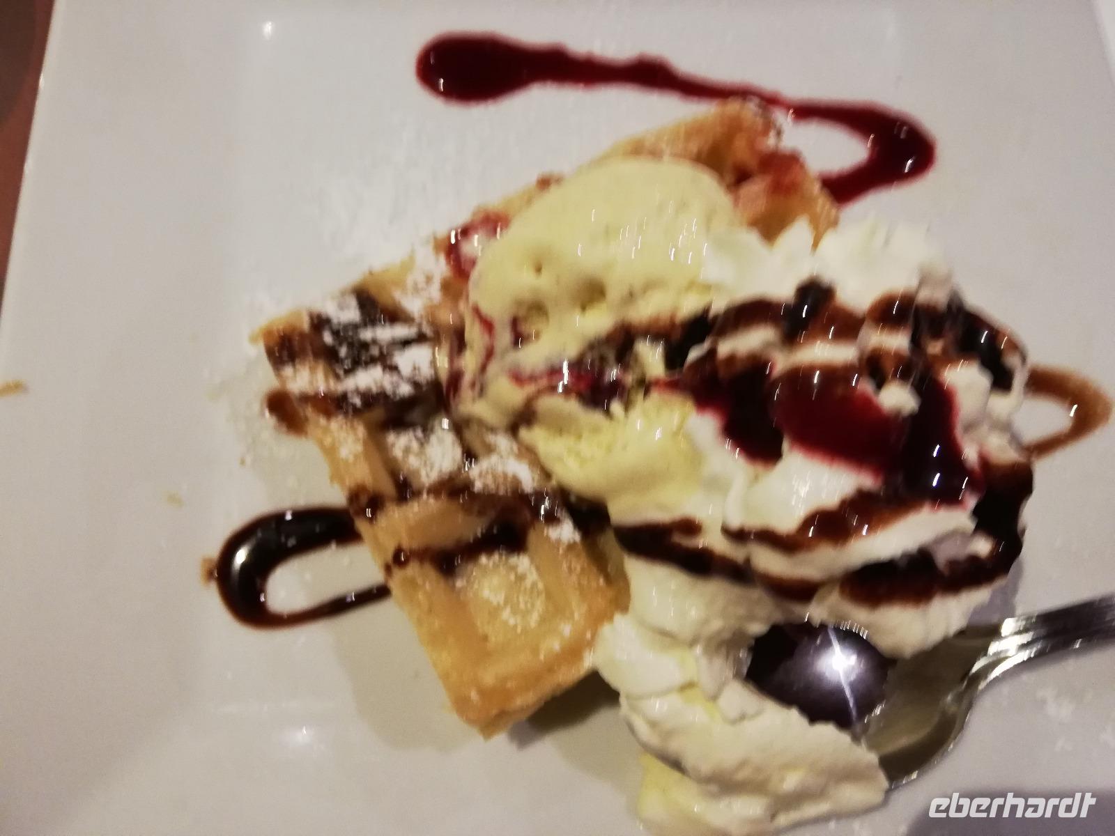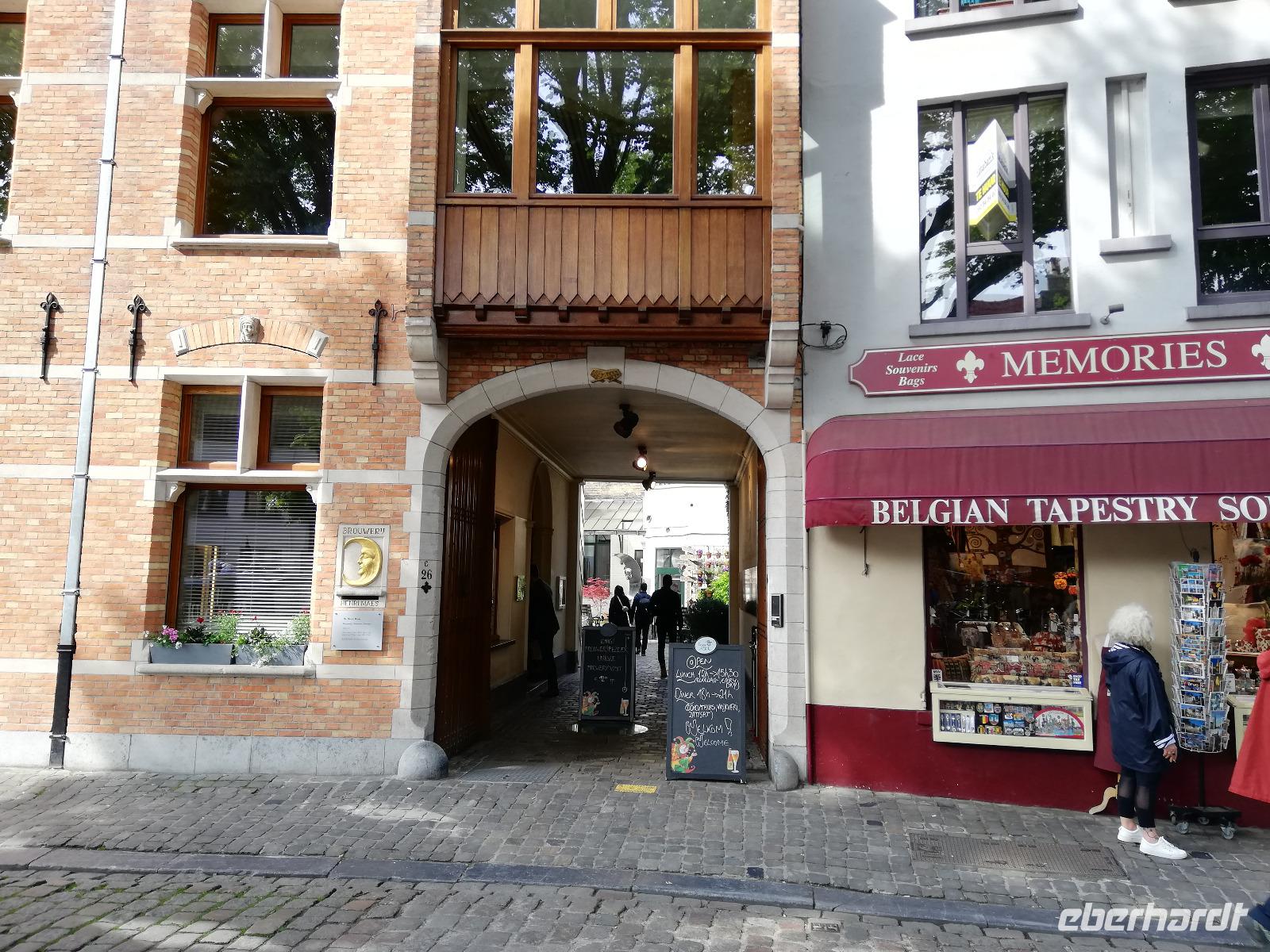 den jeder Besucher von Brüssel sehen möchte. Der 110 m lange und 68 m breite Platz mit seinen Zunfthäusern ist einer der schönsten der Welt und ein besonderes Erlebnis. Weiter führt uns unser Weg natürlich zu Manneken Pis. Heute im Kostüm,zu den Christine auch informiert. Hier verabschieden wir uns von unserer Stadtführerin und laufen zu Fuß zu unserem Hotel. Frank wartet schon auf uns mit dem Gepäck, das schnell in die Zimmer gebracht wird. Nebenan gibt es dann ein leckeres Abendessen, auch mit einer belgischen Waffel. Damit geht die Zeit in Brüssel schon zu Ende. Morgen fahren wir nach Brügge.