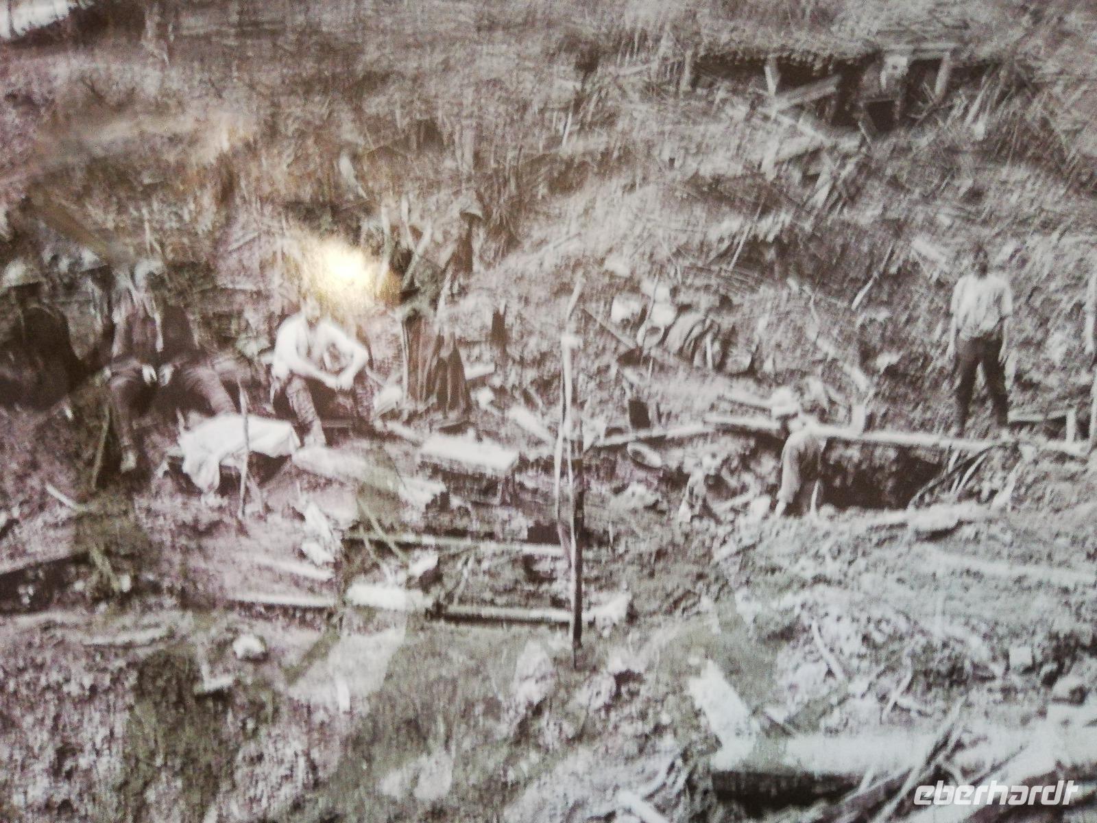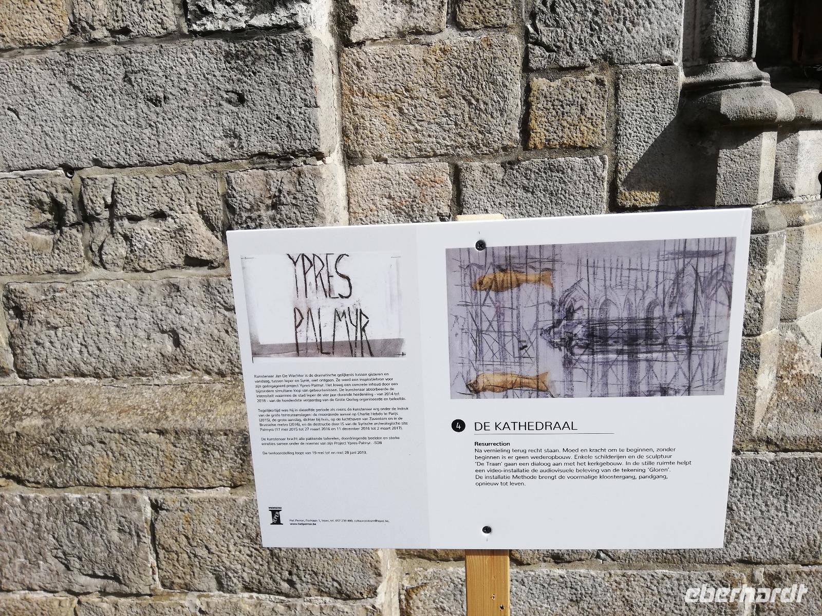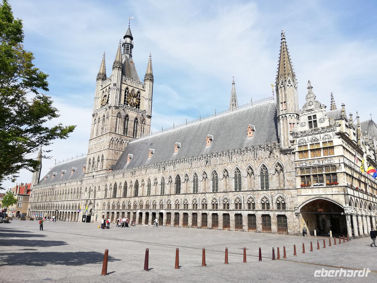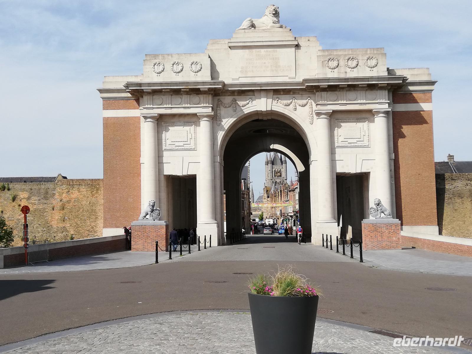 Eine reichliche Stunde fahren wir von Brügge nach Ypern(Iepern). Die Stadt, die im Mittelalter mit Brügge und Gent durch die Tuchindustrie zu den bedeutendsten Städten Flanderns gehörte. Die Tuchhalle, die größte und schönste Belgiens ist ein Beweis dafür. Ypern hat aber auch eine andere Vergangenheit. Schon bei der Ankunft in der Stadt stehen wir vor dem Menenpoort. Ein bewegender Ort. Wir sprechen von 3 Flandern -Schlachten im 1. Weltkrieg und der deutschen Frühjahrsoffensive 1918 mit den Kampf um den Kemmelberg. Das Ergebnis, auf beiden Seiten mussten in 4 Jahren ca.900 000 ihr Leben lassen und die Stadt war völlig zerstört.. Im Menenpoort sind im Gewölbe die Namen von 54896 verschollene Briten eingemeißelt und seit 1928 wird jeden Abend 20.00 Uhr „The Last Post" geblasen. Sehr nachdenklich verlassen wir das Gewölbe und sind freudig überrascht wie diese Stadt wieder aufgebaut wurde. Die Tuchhalle und die Sint-Maartenskathedrale sind dabei die herausragendsten Bauten. Wir haben unsere Zeit so geplant, dass auch der Besuch des Flanders Fields Museum möglich ist.Gegen 11.00 Uhr setzen wir unsere Fahrt fort und steuern