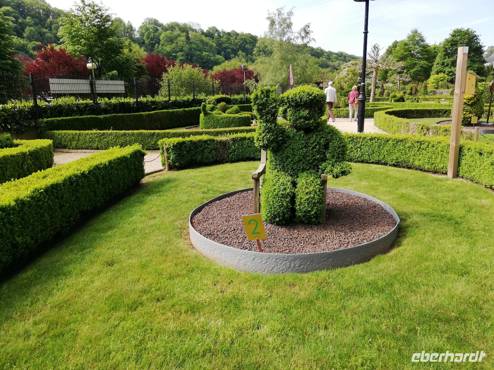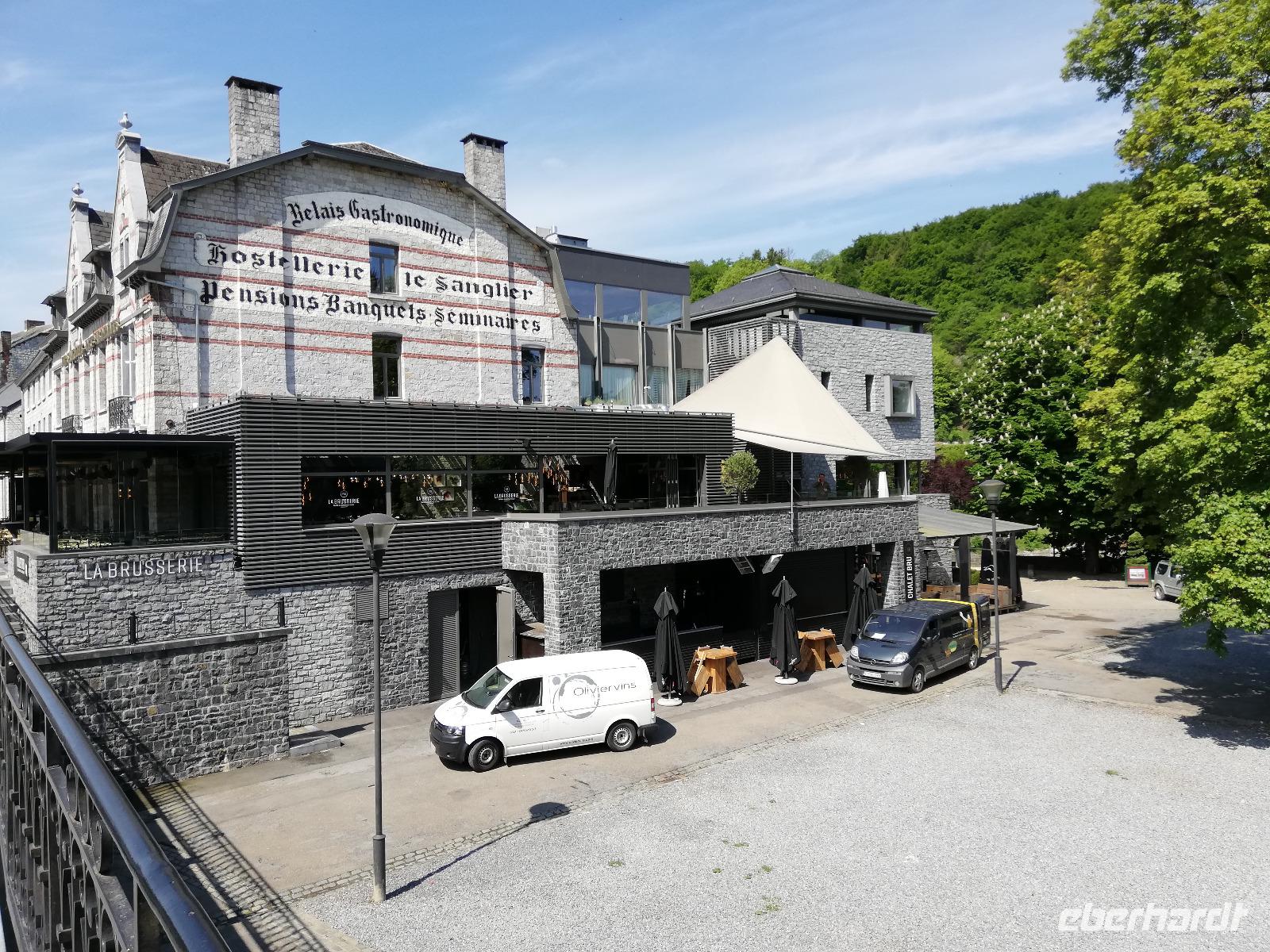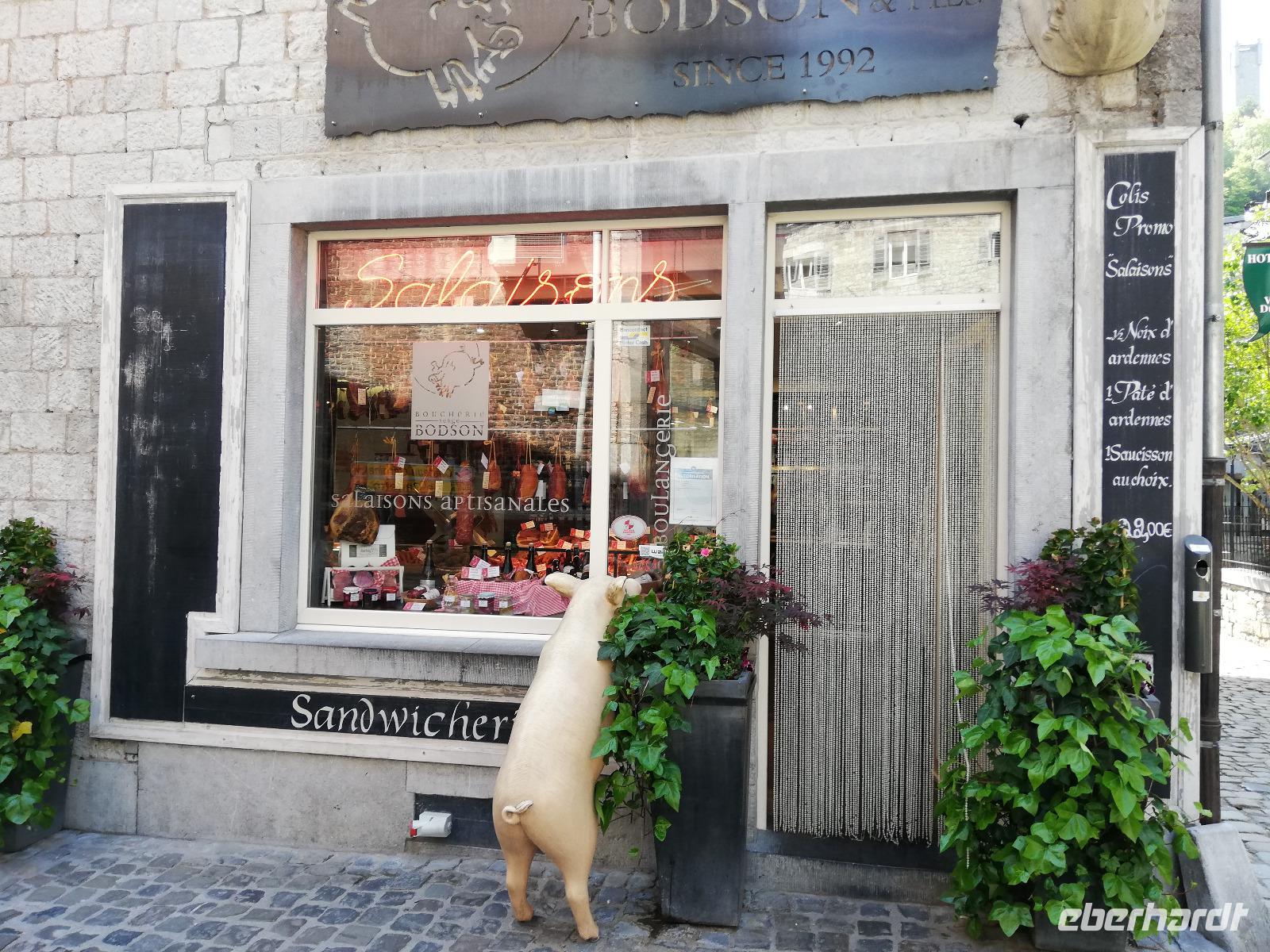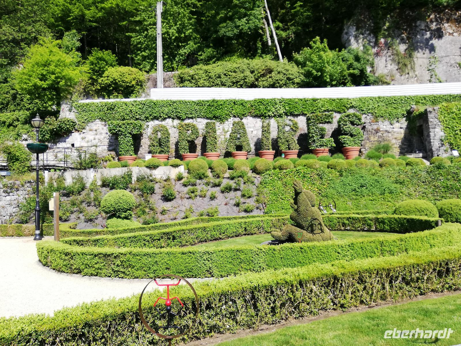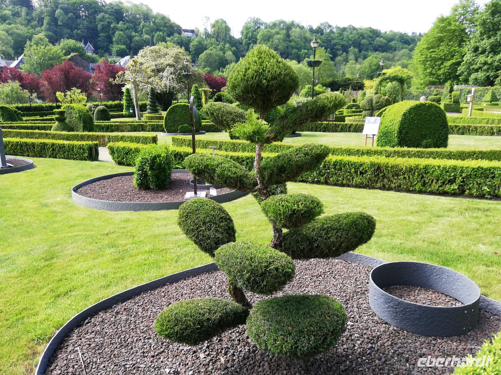 Wir starten zeitig, schon 08.00 Uhr sind die Koffer im Bus, der vor dem Hotel Ibis parken konnte. Wir verabschieden uns von Namur und fahren durch das beeindruckende Maastal. Langsam schlängelt sich der Fluss durch die beeindruckende Landschaft. Unser früher Start lohnt sich, wir können uns auf das Tal konzentrieren ohne das uns viel Verkehr aufhält. Bis Dinant bleiben wir am Fluss doch nun müssen wir auf unsere Zeit achten. Wir fahren nach Durbuy, der kleinsten Stadt der Welt. Obwohl sie nur rund 400 Einwohner hat darf sie sich seit 1331 Stadt nennen.Verwinkelte Gassen, kleine Geschäfte und Restaurants laden ein. Die kleinste Stadt hat aber auch den größten Garten der Welt, der dem Formstutzen gewidmet ist. Sehr unterhaltsam ist dieser Garten, mit geformten Tieren, interessanten Formschnitt der Bäume, wir finden hier eine Galerie und auch ein Kaffee. Wir könnten noch einige Zeit in Durbuy verbringen. Aber unser Programm sieht noch den Besuch der Abtei Orval vor und diesen Besuch möchten wir auf keinen Fall verpassen. Frank wählt für uns eine Strecke abseits der Autobahn aus und damit ist auch eine Pause mitten im Grünen möglich. Danach müssen wir uns aber sputen. Wir möchten unseren Klosterführer nicht wartend lassen. Nach unserer Ankunft nahe der französischen Grenze können wir sofort mit der Führung durch das Kloster beginnen.