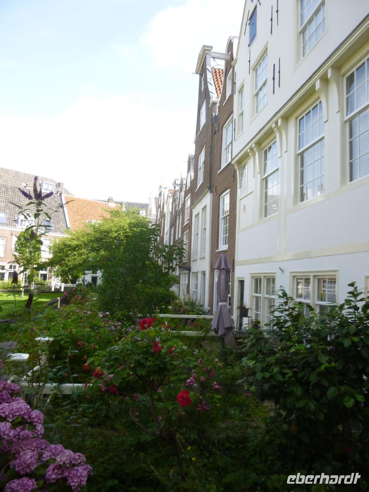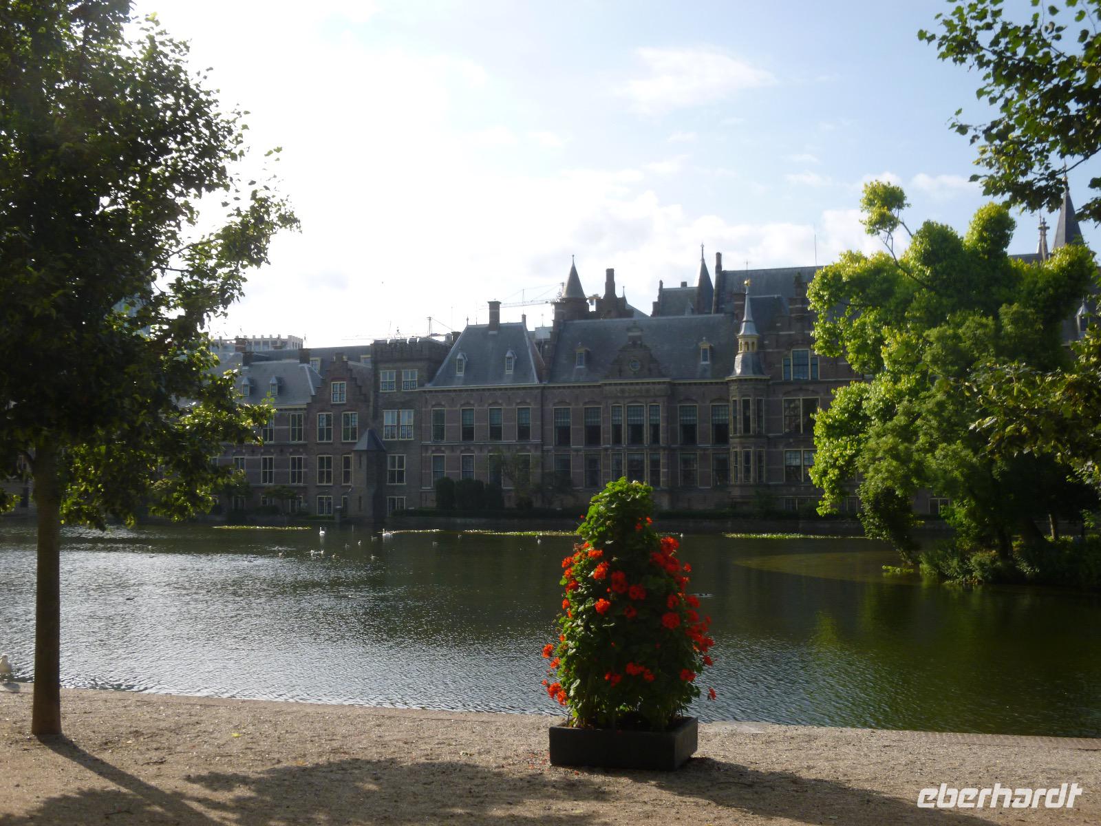 Den Haag mit Palästen und Promenaden, Botschaften und Ämtern ist Regierungssitz und Königliche Residenz (seit dem Wiener Kongress). Sehenswert ist nicht nur der Parlamentssitz Binnenhof, sondern auch das prachtvolle Mauritshuismuseum mit Kunstschätzen der königlichen Sammlung, darunter das berühmte und bereits verfilmte „Mädchen mit dem Perlohrring" von Vermeer oder seine meisterhafte Delft-Ansicht, die wir mit der heutigen Stadt dann vergleichen konnten. Auch die wenig bekannten Hofjes, einst mittelalterliches Refugium für Mittellose und heute stille Rückzugsorte waren unserem Führer einen Abstecher wert. Mit ihnen entdecken wir auch Jugendstilfassaden nahe der eleganten Einkaufspassage, bevor wir nach einer Mittagspause nach Delft zur Königlichen Manufaktur des berühmten Delfter Blau fuhren, die sich im 17. Jahrhundert als preiswertere Fayence gegen das teurere chinesische Porzellan behaupten konnte. Für Fayence wurde im Sprachgebrauch des 16. bis 19. Jahrhunderts auch der ungenau verwendete Begriff „Porzeleyne" gebraucht, das sich jedoch vom hochweißen, durchscheinenden und härter gebrannten Scherben aus mehr Kaolinton von ungesinterter Irdenware der Fayence mit wenig Kaolin unterscheidet. Wir lernten den Herstellungsprozess anschaulich bei einer Besichtigung durch die Manufaktur vom Formen, Bemalen bis zum Brennen kennen. Wer mochte, entspannte sich für einen Moment im grünen Innenhof, bevor wir zur Stadtbesichtigung des alten malerischen Delft mit Monique aufbrachen.