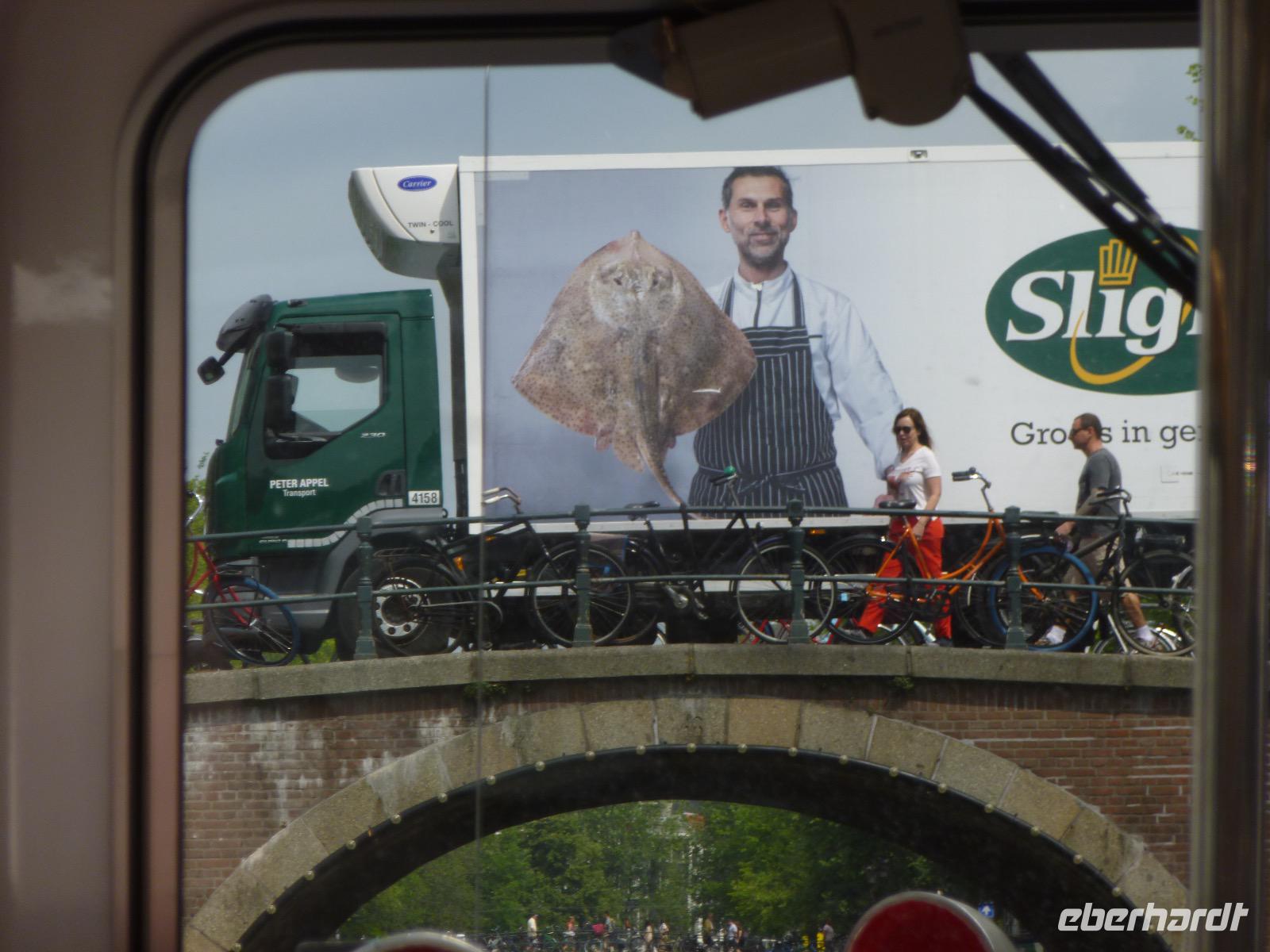 Wo die Amstel in das Ij und in die Zuiderzee mündet, siedelte und fischte man bereits ab 1200. Im Mittelalter Hansemitglied, prosperierte Amsterdam besonders im 17. Jahrhundert als Handelsplatz und Ausgangsort zu anderen Kontinenten wie Indien, Amerika, Afrika. Malerische Zugbrücken und noble Patrizierhäuser mit ihren verschiedenen Giebelsteinen künden vom immensen Reichtum. Warenhaus der Welt, Blüte der Kunst, philosophisches und wissenschaftliches Zentrum Europas charakterisiert Amsterdam. Unsere Stadtführerin Cecilia zeigte uns bereits den seit 2013 UNESCO geschützten Grachtengürtel aus dem Bus heraus, wir erkundeten ihn danach bei unserer Grachtenfahrt von der Wasser-Perspektive. In der Innenstadt mit ihrem bebauten Kanalgeflecht wurde kaum etwas zerstört, sie bewahrte sich als städtebauliches Gesamtkunstwerk. Die tiefen Parzellen hatten ein Kutschhaus und einen Garten, der damals Statussymbol (mit kostbaren Tulpen) war.
