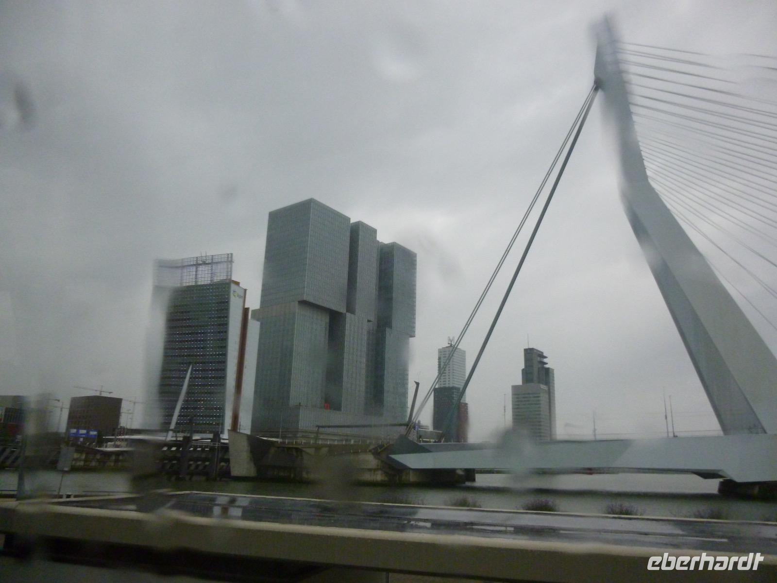 Heute wollten wir die moderne Hafenmetropole Rotterdam erleben, nach Amsterdam die größte Stadt der Niederlande. Seit der Nachkriegszeit hat sie sich zu einem Geheimtipp für Freunde der modernen Architektur entwickelt. Die Geburtsstadt des großen Humanisten Erasmus von Rotterdam entwickelte sich an der Einmündung der Rotte in die Nieuwe Maas zur wichtigsten Hafenstadt des Landes. Der Aufstieg zum größten Hafen der Welt mit mehr als 300 Tonnen Warenumschlag im Jahr begann im 19. Jahrhundert mit der Fertigstellung des „Neuen Wasserweges", einem Schifffahrtskanal Maas-Sluis und Hoek van Holland mit direkter Verbindung zur Nordsee.