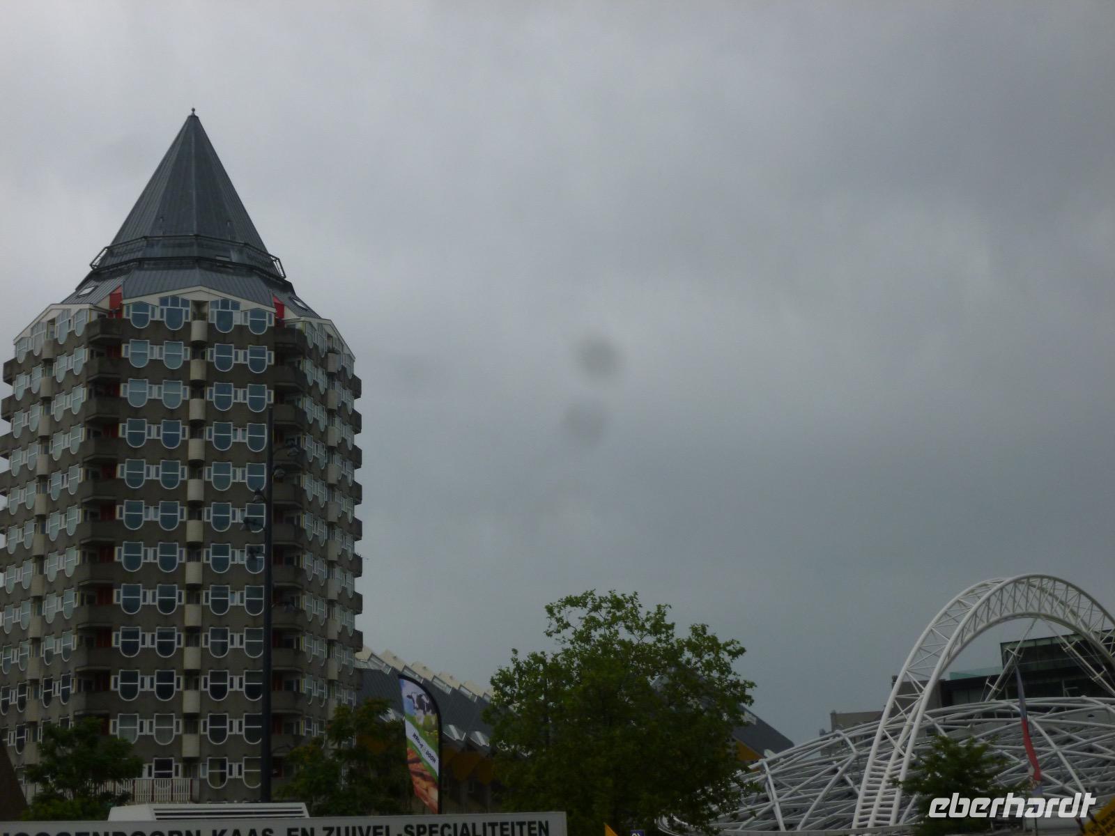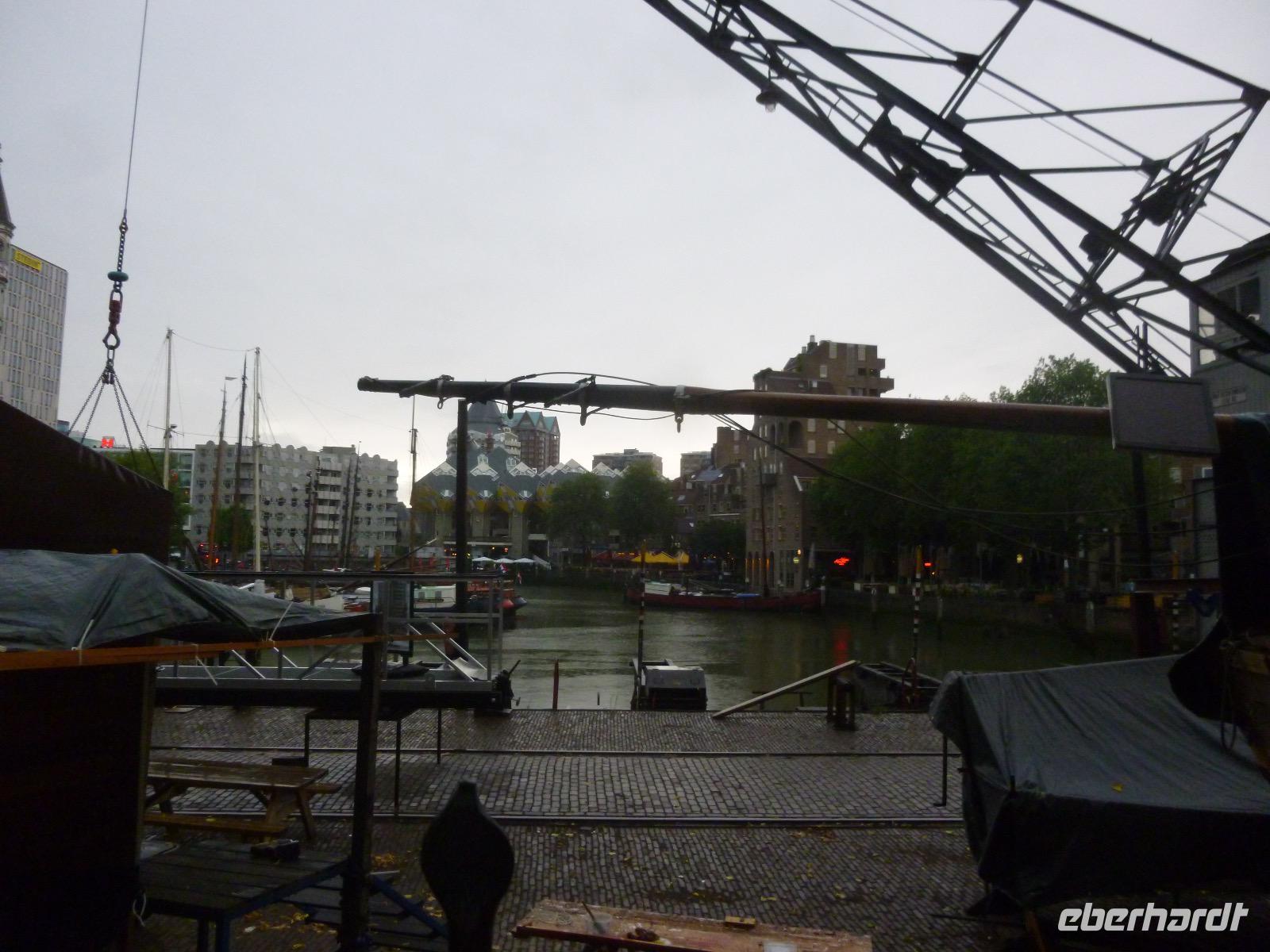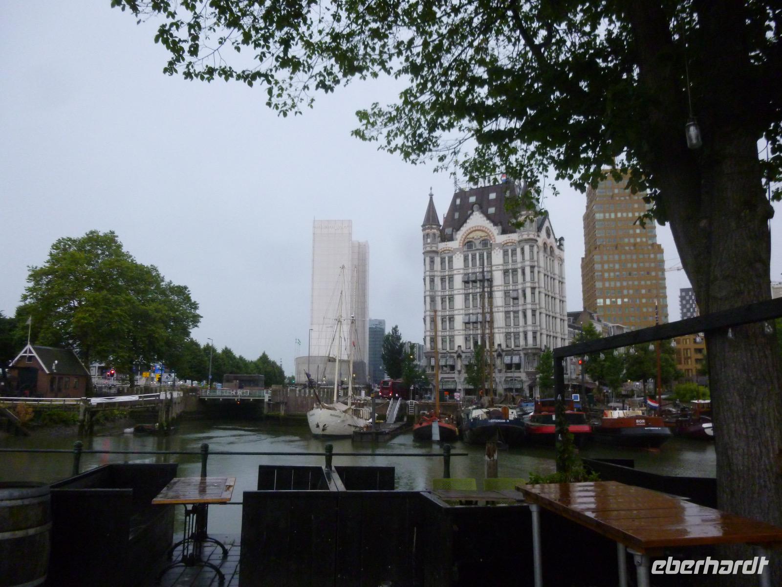 Unsere beiden Stadtführer zeigten uns die Schönheiten, aber auch die Wunden der 1940 geschundenen Stadt auch zu Fuß. Wir sahen die Kathedrale, den Geburtsort von Erasmus, die Würfelhäuser und auch die neue Markthalle, in der man teuer wohnen kann. Postmoderne Architektur-Skyline grüßt uns auch an der Erasmusbrücke, wo wir unsere Spido-Hafenrundfahrt starteten. Wir sahen vom Schiff riesige Containerschiffe, Kräne und Lagerhallen und den von weither sichtbaren Euromast, den einige von uns in ihrer Freizeit bestiegen.