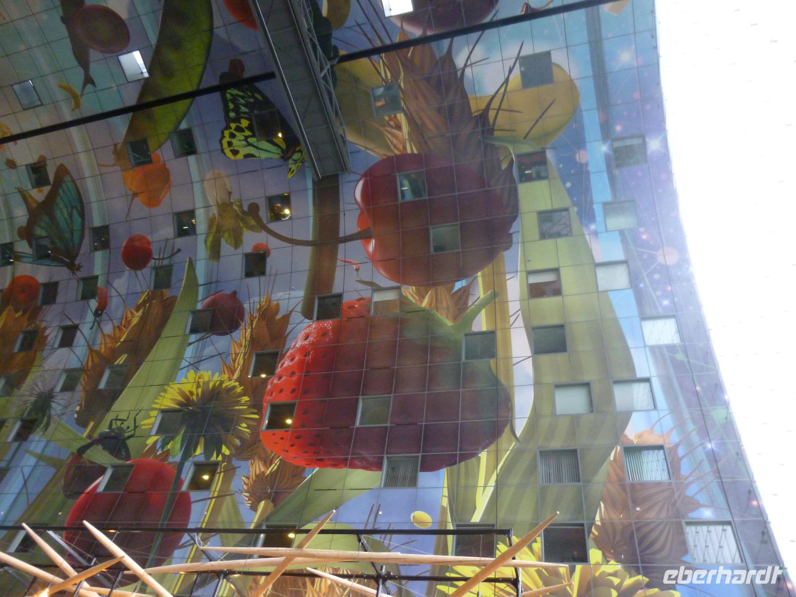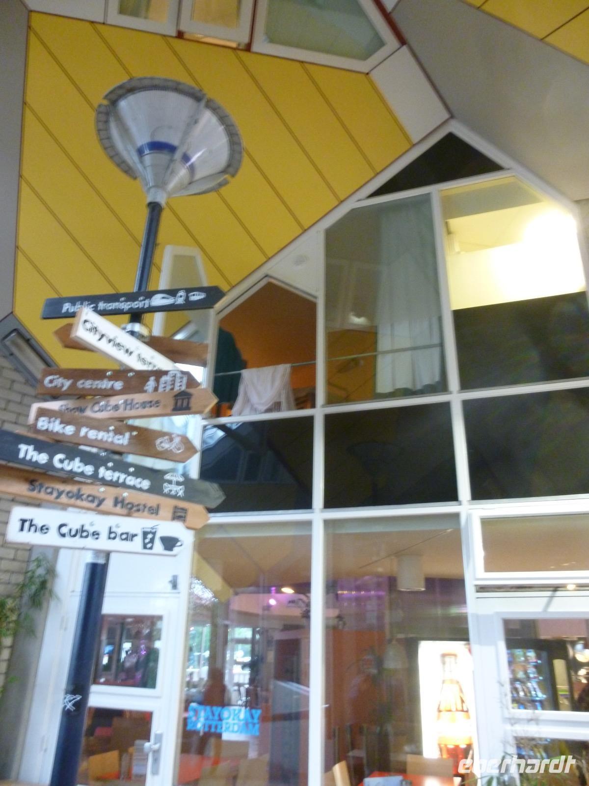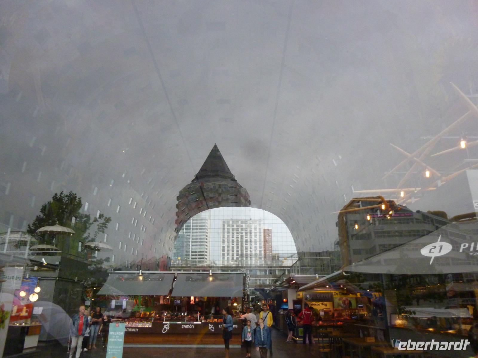 Unsere beiden Stadtführer zeigten uns die Schönheiten, aber auch die Wunden der 1940 geschundenen Stadt auch zu Fuß. Wir sahen die Kathedrale, den Geburtsort von Erasmus, die Würfelhäuser und auch die neue Markthalle, in der man teuer wohnen kann. Postmoderne Architektur-Skyline grüßt uns auch an der Erasmusbrücke, wo wir unsere Spido-Hafenrundfahrt starteten. Wir sahen vom Schiff riesige Containerschiffe, Kräne und Lagerhallen und den von weither sichtbaren Euromast, den einige von uns in ihrer Freizeit bestiegen.