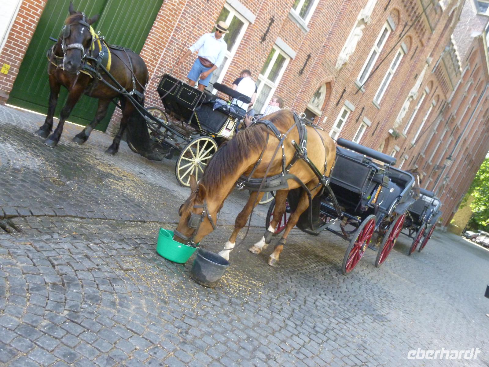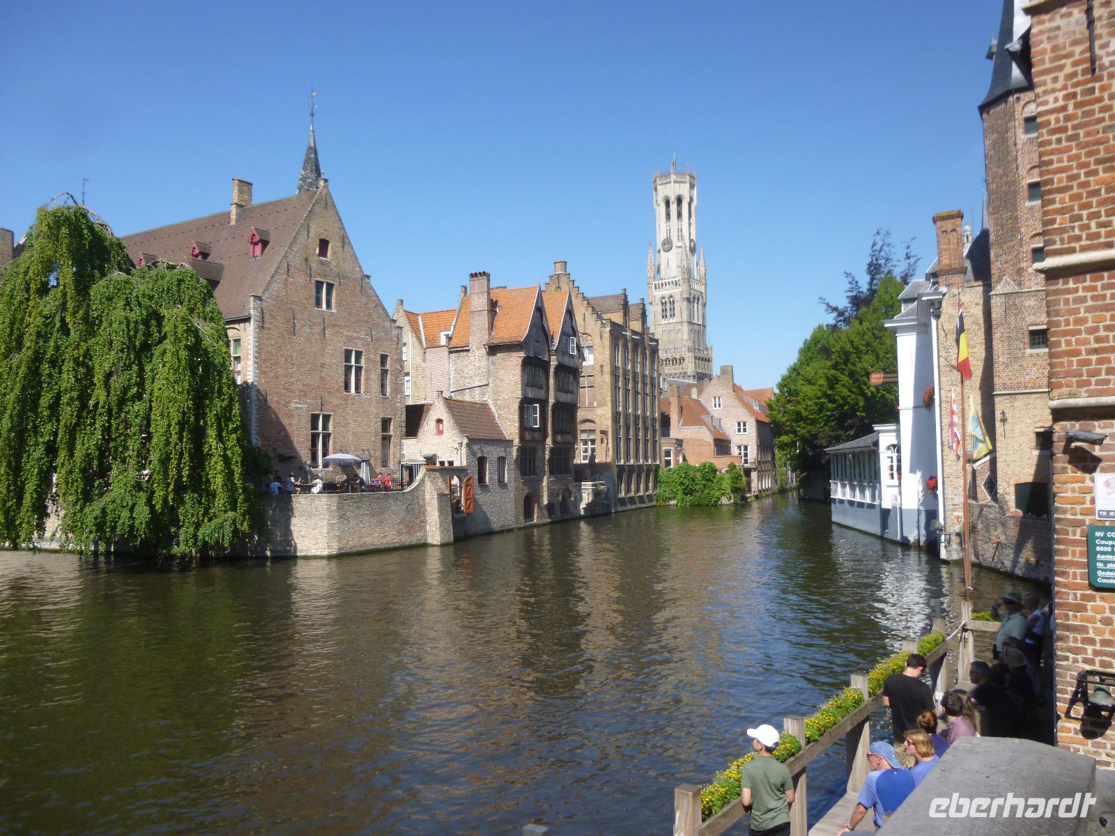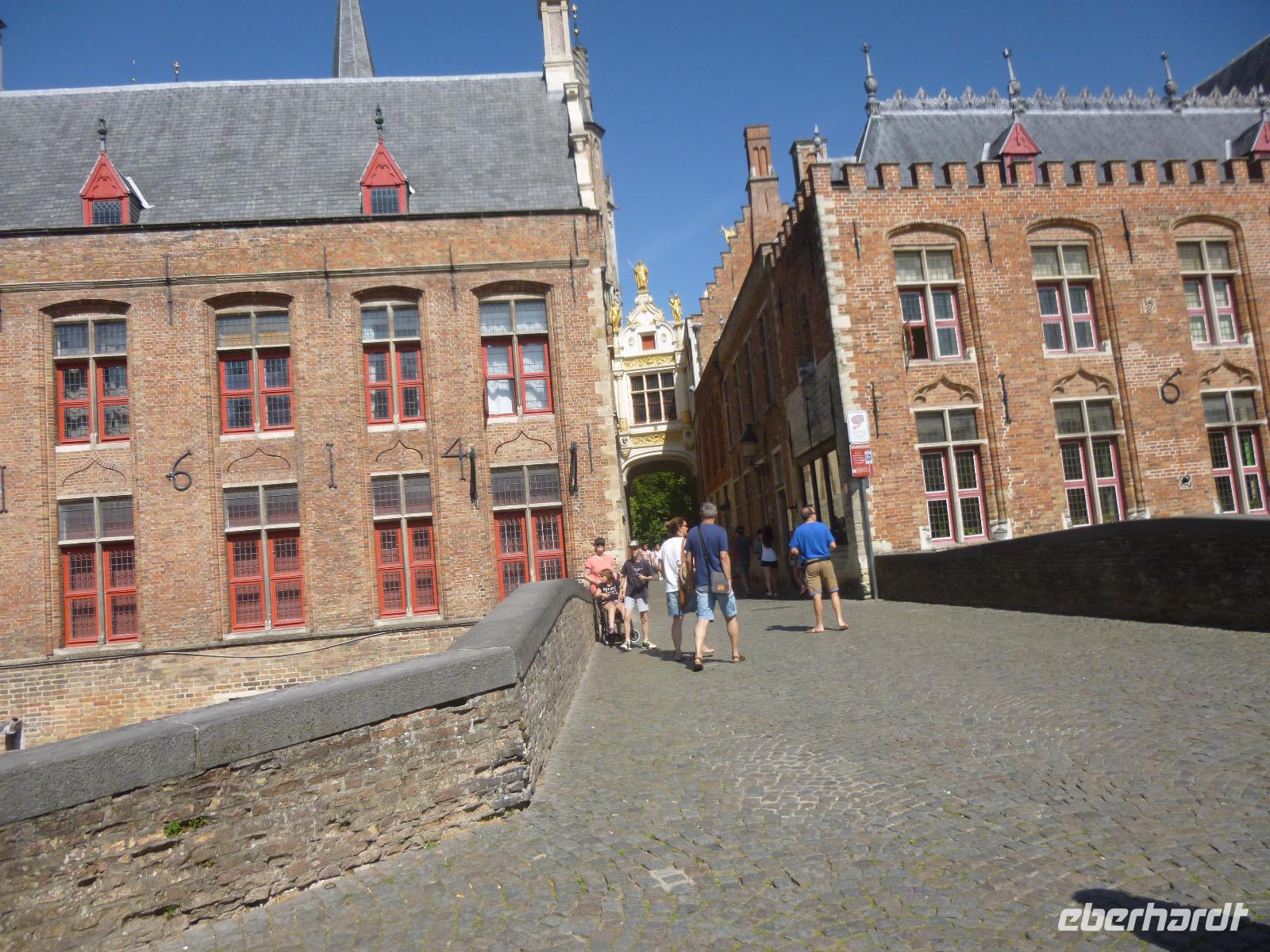Unsere beiden kundigen Brüggelinger Guides präsentierten Brügge als nahezu vollständig erhalten mittelalterlich mit malerischen Gassen und Grachten. Einst durch den Meeresarm Zwin mit der Nordsee verbunden, landete man direkt mit Schiffen in der Stadt zum Umstapeln der Waren und stieg zu einer der bedeutendsten Hansestädte der damaligen Welt auf. Bank- und Handelshäuser aus 17 Nationen handelten hier mit Stoffen, Fischen, Pelzen, Weinen, Gewürzen, Wolle. Mit der Versandung des Zwin begann der Niedergang Brügges, aus dem es langsam ab dem 19. Jahrhundert erwachte („Brughes la Morte") mit dem Meereszugang durch den Bodewijn-Kanal 1907 und dem modernen Hochseehafen Zeebrügge und natürlich dem Tourismus.