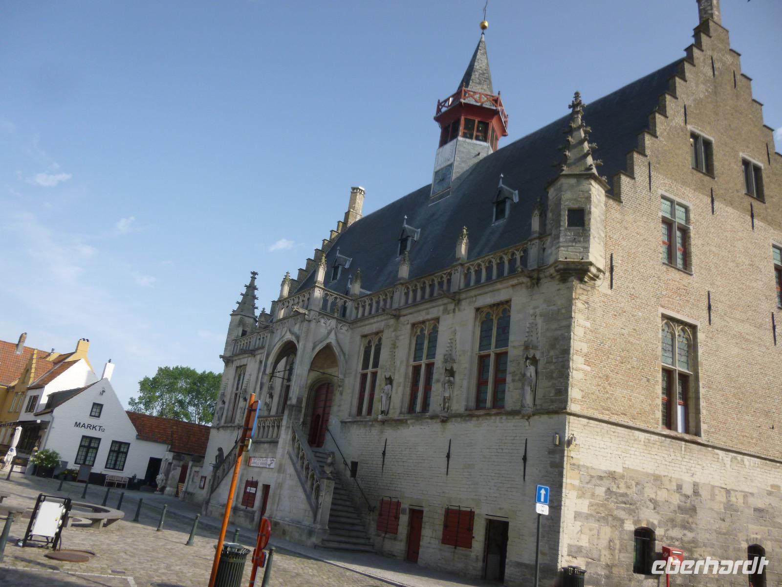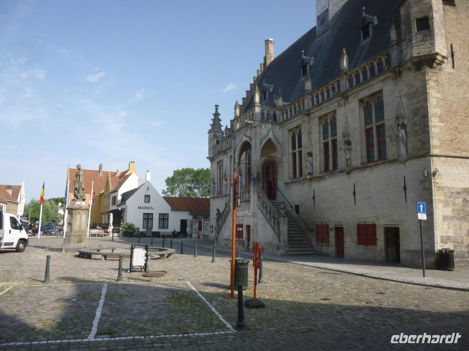 Etwa 200 Jahre nur währte Dammes Blüte als Vorhafen Brügges, dann war die schöne Zeit vorbei, die dem Städtchen mit schwedischen Heringen und französischen Weinen Wohlstand brachte, sichtbar an repräsentativen Bauten am Markt und der überdimensionierten unvollendeten Liebfrauenkirche im Stil der Schelde-Gotik, erbaut ab dem 13. Jahrhundert. Unterhalb des Kirchturms liegt der Dichter Jacob van Maerlant, der hiesige Dante, begraben und eine zweite literarische Heimat fand in der heutigen Buchstadt Tyl Ulenspiegel und Lamme Goedzak, die Hauptfiguren aus dem Coster-Roman - sichtbar am Ortseingang in Bronze.