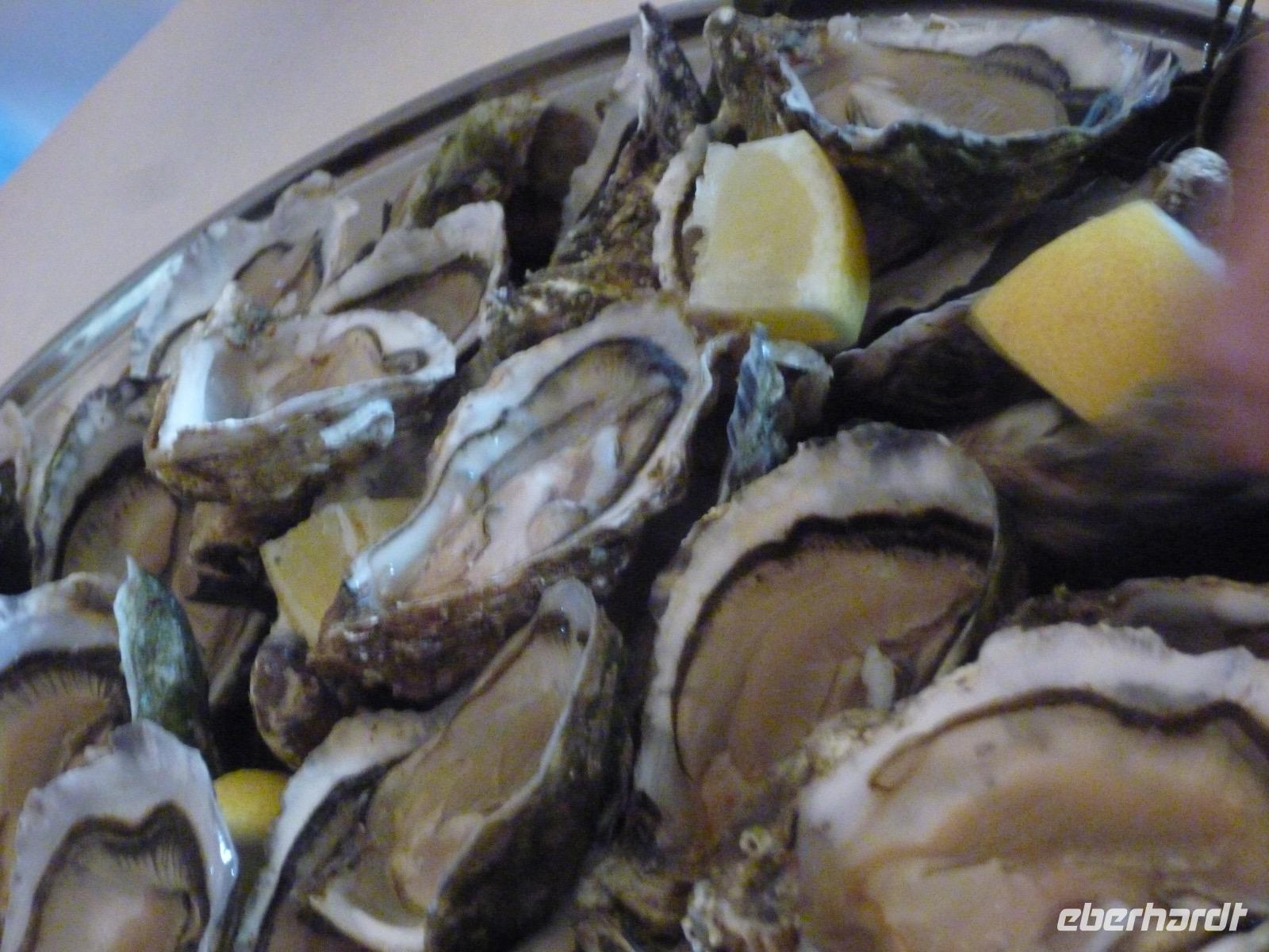 Über das etwa sechsjährige Leben der Zuchtauster erfuhren wir mehr am Austernsee und im "De Oesterput", dort bestaunten wir auch Langusten und Muscheln. Wir sahen die Babys mit ihrem Füßchen und ausgewachsene, dann unbewegliche Tiere, betrachteten Hummer und Muschelvielfalt, bevor wir selbt frische Austern zu einem kühlen Weißweinchen genüßlich schlürften - ein Höhepunkt! Entlang der Küste und der Küstenstraßenbahn fuhren wir kurz vor Blankenberge bis nach Brügge zurück.