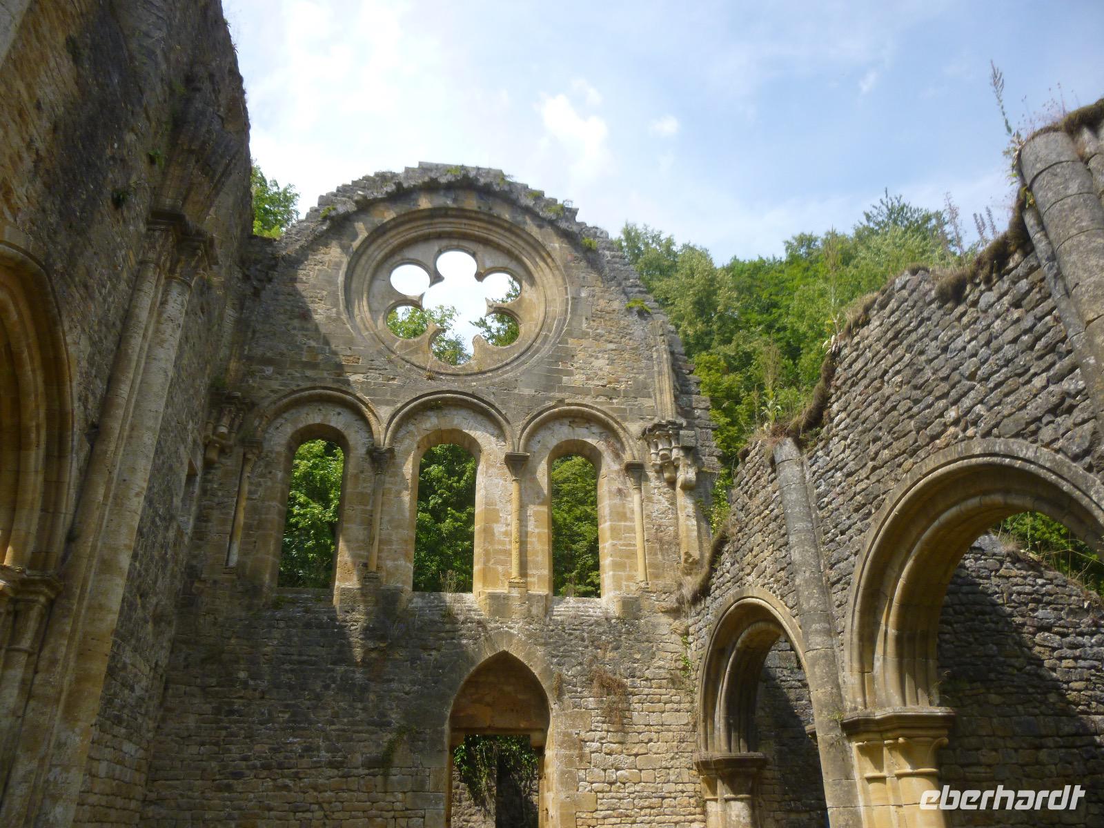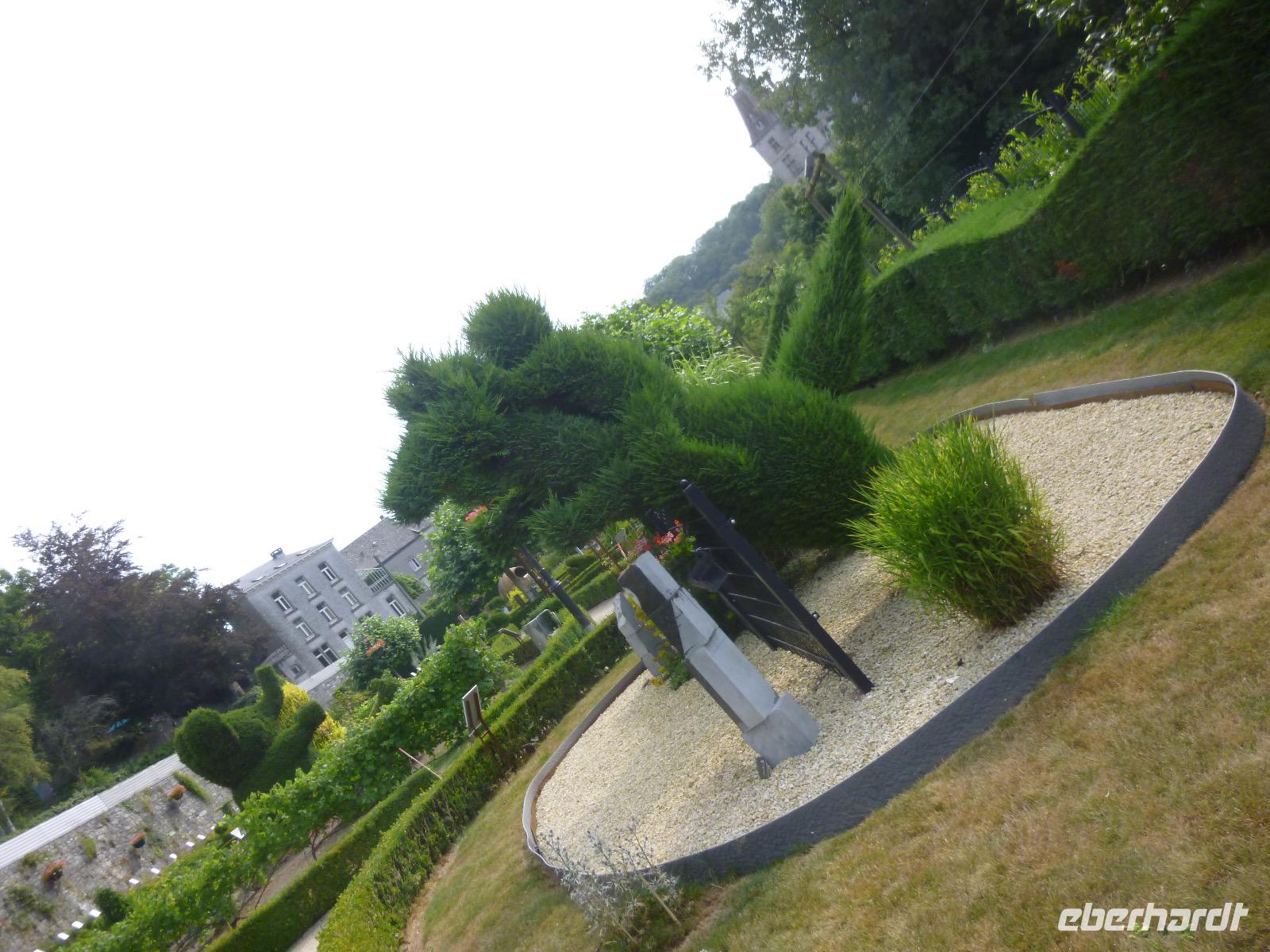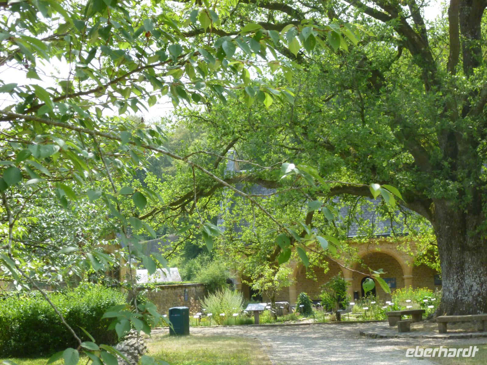 Der Maas ein kurzes Stück bis Dinant folgend, reisten wir in den Ardennen nach Durbuy im Ourthetal zur „kleinsten Stadt der Welt" mit rund 350 Einwohnern. Einst komplett von einer Stadtmauer umgeben, schützen die Stadt (erteilt seit dem 13. Jahrhundert vom blinden König Johann von Luxemburg) immer noch Felsen und Fluss. Es lohnt, entlang der Flussufer unterhalb des privaten Schlosses der Familie von Ursel zu spazieren, wo auch die Heckenschnittkunst-Ausstellung "Ars Topiaria" am Ortsrand zu sehen ist. Zahlreiche Lokale bieten gutes Bier und Pommes, wir lassen es uns hier gut gehen und entspannen und stärken uns für die längere Weiterfahrt nach Orval, inmitten stiller Wälder an der französischen Grenze gelegen.