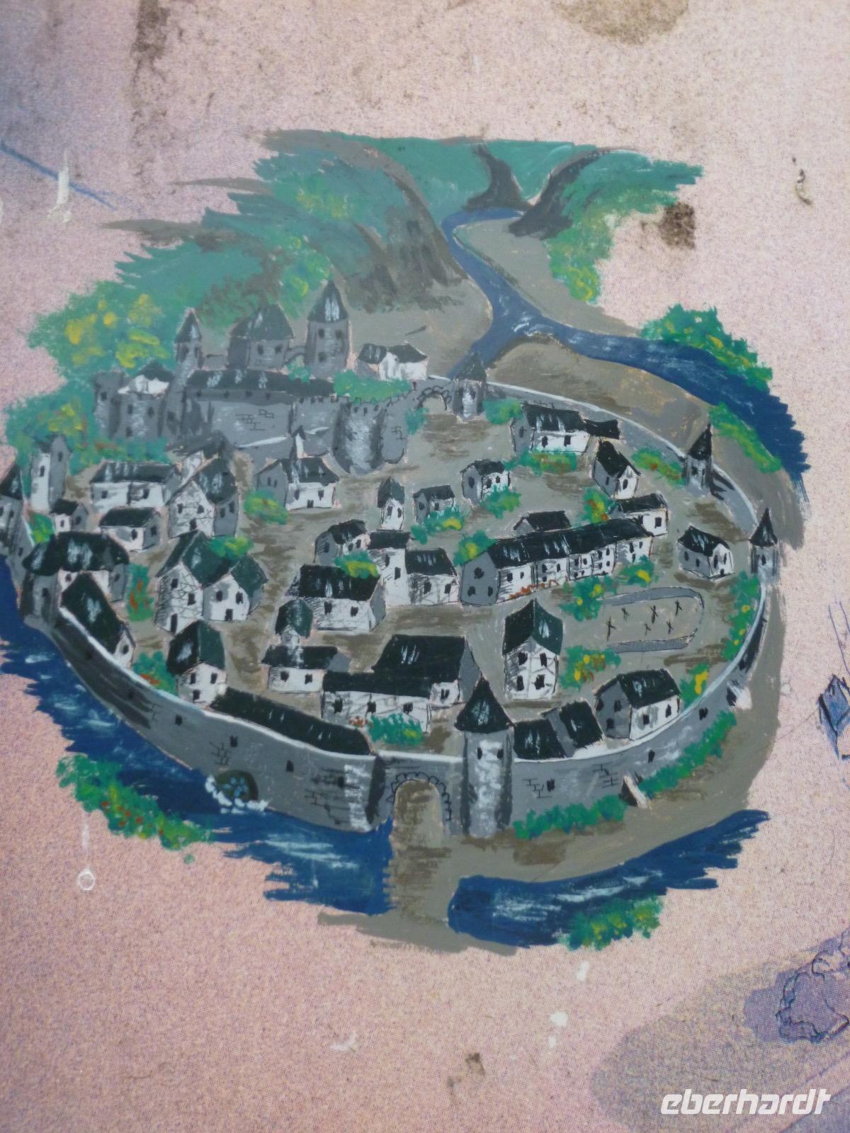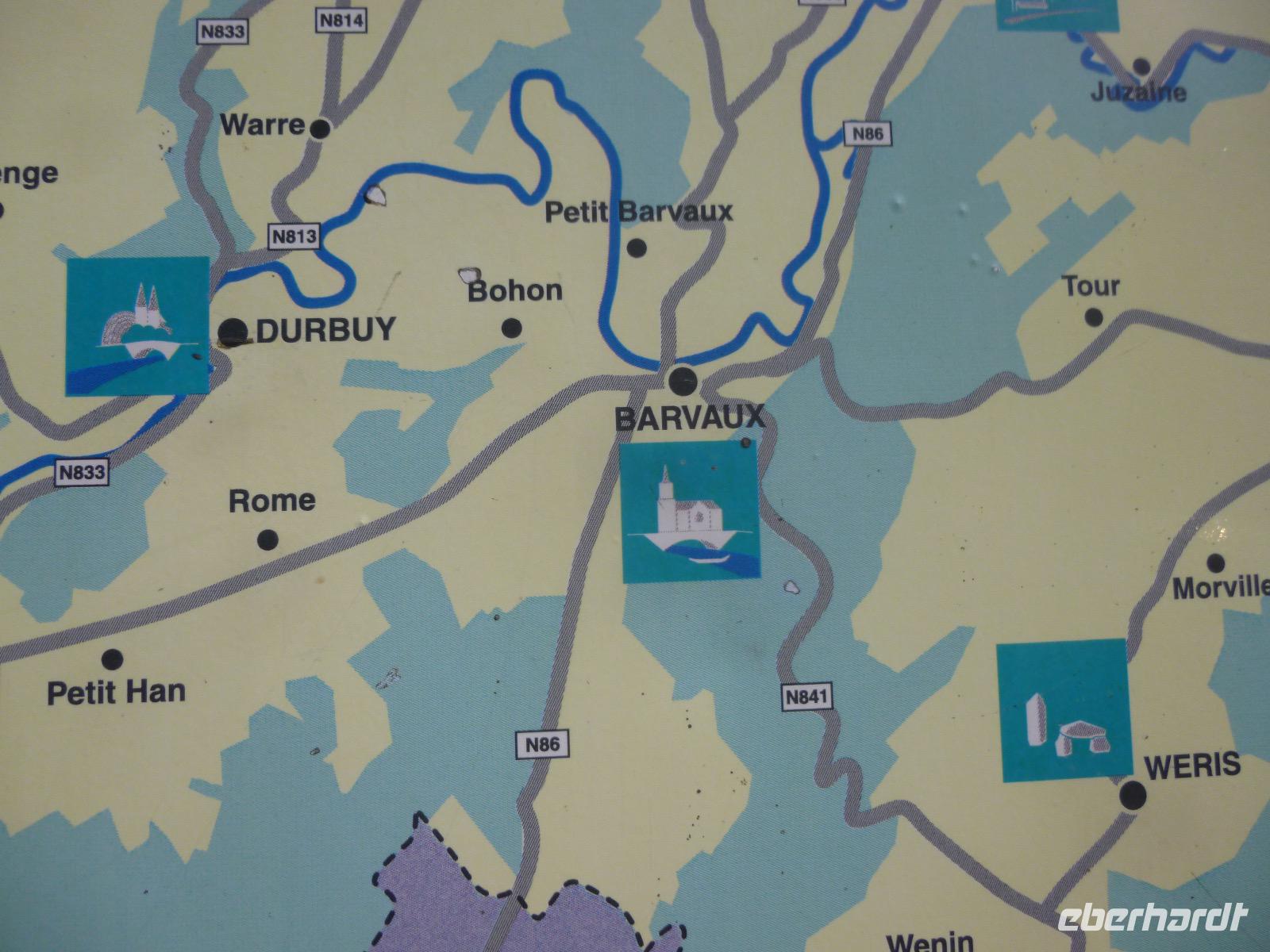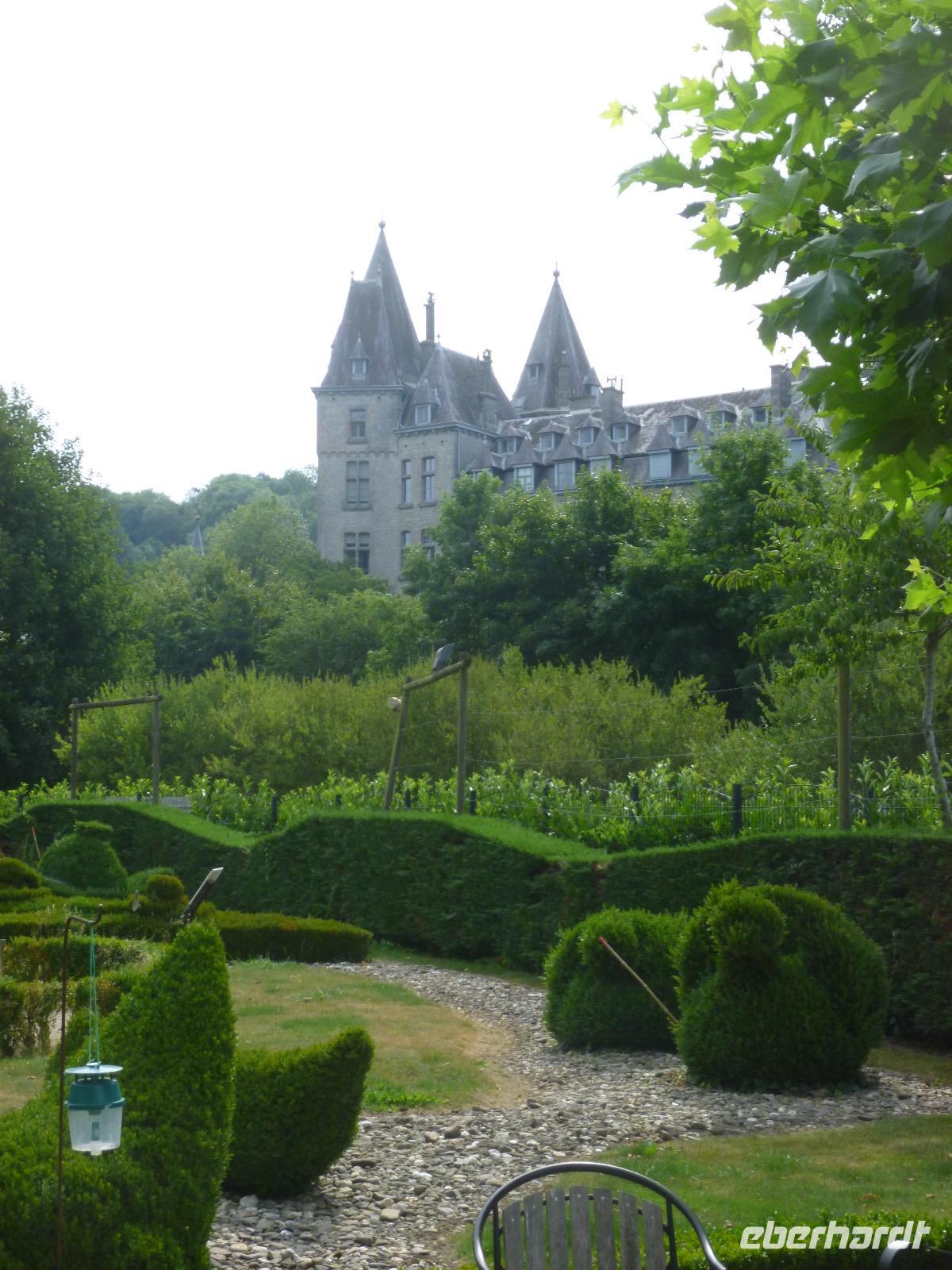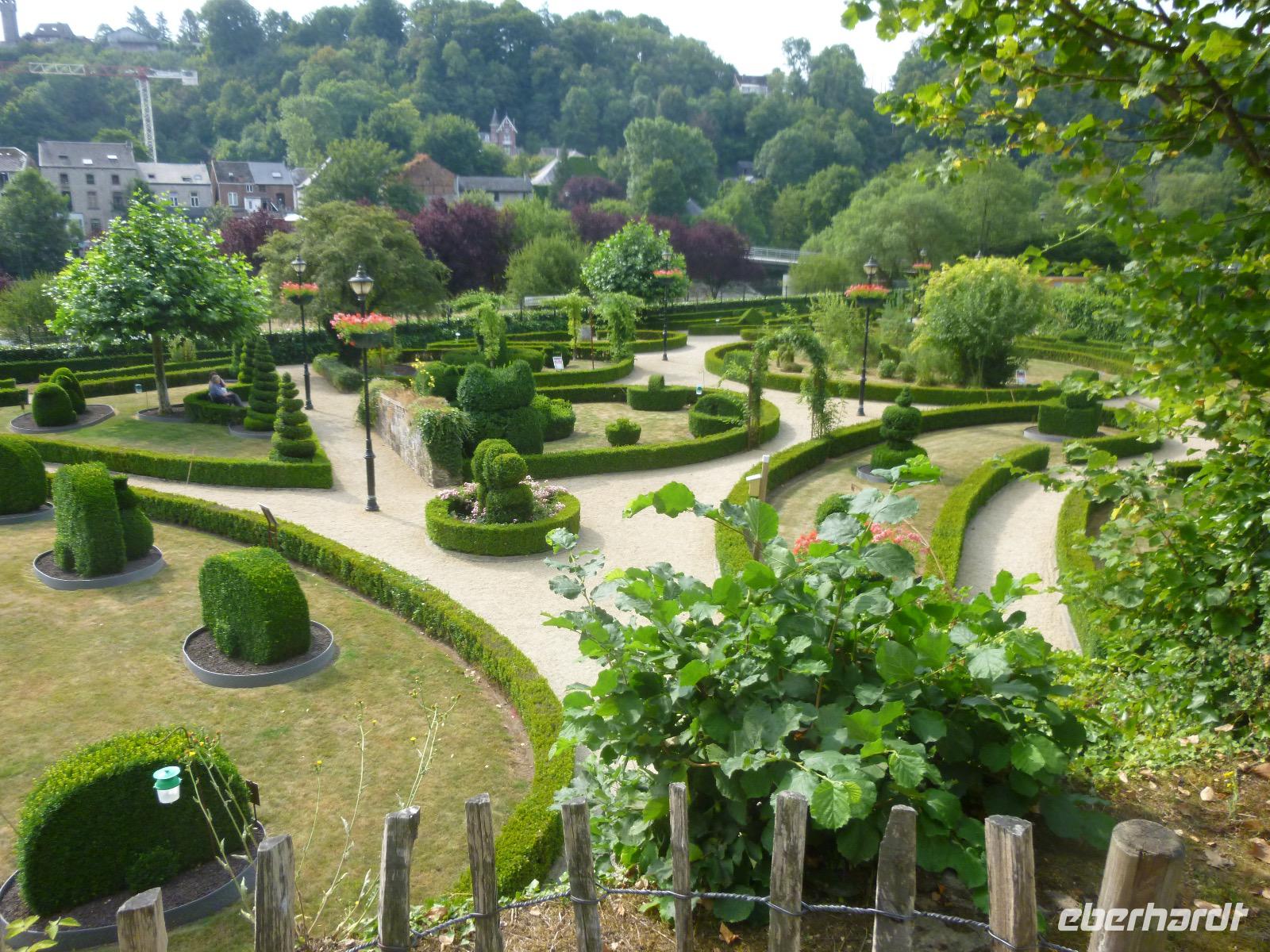 Der Maas ein kurzes Stück bis Dinant folgend, reisten wir in den Ardennen nach Durbuy im Ourthetal zur „kleinsten Stadt der Welt" mit rund 350 Einwohnern. Einst komplett von einer Stadtmauer umgeben, schützen die Stadt (erteilt seit dem 13. Jahrhundert vom blinden König Johann von Luxemburg) immer noch Felsen und Fluss. Es lohnt, entlang der Flussufer unterhalb des privaten Schlosses der Familie von Ursel zu spazieren, wo auch die Heckenschnittkunst-Ausstellung "Ars Topiaria" am Ortsrand zu sehen ist. Zahlreiche Lokale bieten gutes Bier und Pommes, wir lassen es uns hier gut gehen und entspannen und stärken uns für die längere Weiterfahrt nach Orval, inmitten stiller Wälder an der französischen Grenze gelegen.
