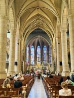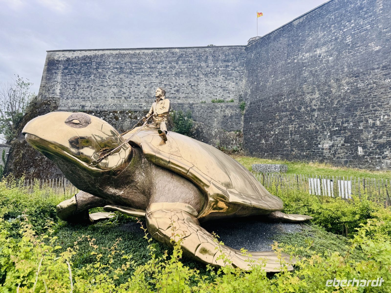 Christi Himmelfahrt – oder wie wir heute sagen: Männertag! Und wir starten stilecht in den Tag. Herbert Grönemeyer schallt aus dem Buslautsprecher, „Männer“ natürlich, und spätestens beim Refrain singen alle mit. Die Stimmung ist ausgelassen – und bleibt es auch, als wir uns auf den Weg nach Namur machen. Namur, die Hauptstadt der Wallonie, begrüßt uns zunächst mit milder Frühlingsluft und einem Himmel, der heute gnädig über unseren Köpfen bleibt: Wolken, aber trocken. Wir schlendern über den Place d’Armes, vorbei an der stattlichen Börse und dem Königlichen Theater – ein charmantes Gebäude im neoklassizistischen Stil, das sich würdevoll in die Altstadt einfügt. Die Stadt wirkt entspannt, gelassen – vielleicht färbt das auf uns ab. Dann geht es weiter durch die Gassen bis zur Seilbahnstation. Elegant schweben wir in den modernen Gondeln hinauf zur Zitadelle von Namur – eine der größten Festungsanlagen Europas, hoch oben über der Mündung von Sambre und Maas gelegen. Oben erwartet uns ein weites Panorama: Die beiden Flüsse schlängeln sich durch die Stadt, die Dächer von Namur liegen uns zu Füßen, und in der Ferne zeigen sich sanfte Hügel. Manche von uns spazieren gemütlich den Serpentinenweg hinunter, andere genießen ein zweites Mal den Blick aus der Gondel. Zurück im Tal folgen wir dem Flussverlauf: Das Maastal zeigt sich von seiner schönsten Seite. Malerische Dörfer, bewaldete Hänge und Burgen, die plötzlich über dem Wasser auftauchen – eine der reizvollsten Strecken unserer Reise. Die Straße windet sich kurvenreich durch die Landschaft, während wir entspannt hinausschauen. Am Nachmittag erreichen wir Lüttich – oder Liège, wie es auf Französisch heißt. Die Stadt pulsiert. Unsere Stadtführerin Aline nimmt uns mit auf einen Rundgang durch das Herz der wallonischen Metropole. Zwischen dem fürstbischöflichen Palast, dem Rathaus und den alten Klostergebäuden schlägt die Geschichte der Stadt deutlich hörbar – und Aline erzählt sie uns so lebendig, dass man fast glaubt, die Fürstbischöfe seien gerade eben erst abgetreten. Lüttich ist nicht glattpoliert, sondern echt, mit Ecken und Kanten, die uns faszinieren. Anschließend bleibt noch Zeit zur freien Verfügung. Einige schlendern durch die belebten Gassen der Innenstadt, andere gönnen sich eine typische Lütticher Waffel – außen karamellisiert, innen weich und warm, ein echtes Geschmackserlebnis, das wir uns einfach nicht entgehen lassen können. Schließlich erreichen wir unser Hotel – unsere letzte Übernachtung in Belgien. Morgen heißt es dann: Auf nach Luxemburg! Aber heute Abend stoßen wir noch einmal gemeinsam an – auf diesen vollen Tag, auf Grönemeyer und Gondelfahrten, auf Zitadellen, Maastal und Männertag.