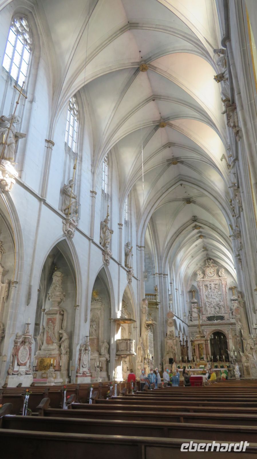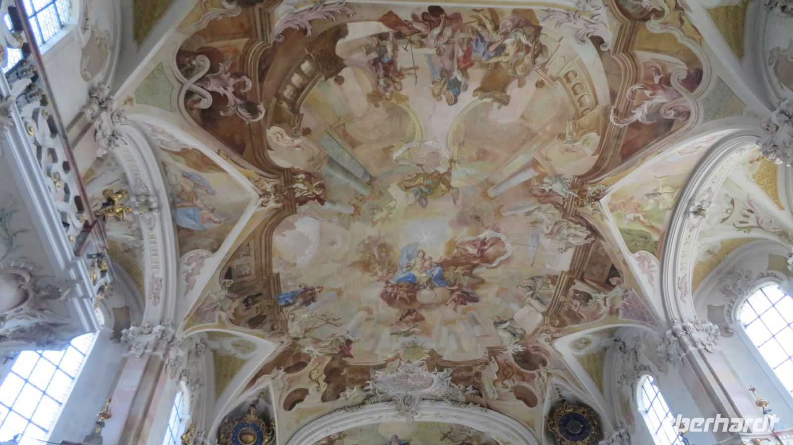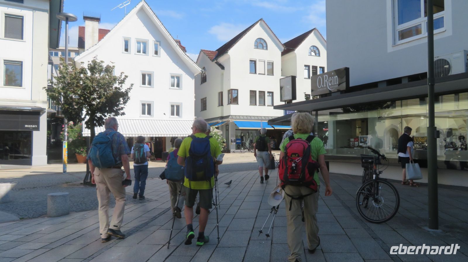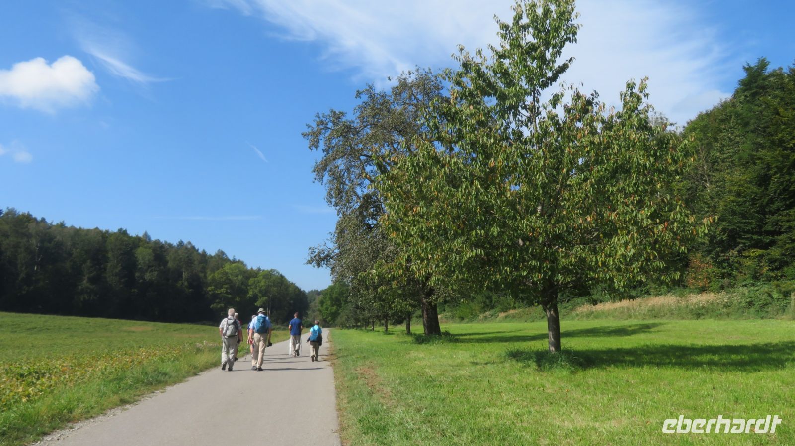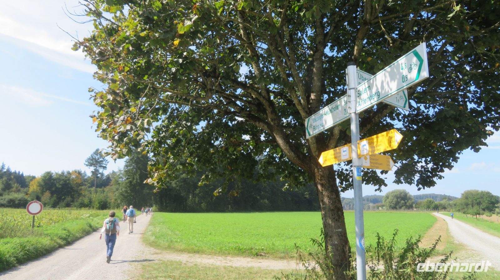 Unseren letzten Wandertag am Bodensee lassen wir ruhig angehen und lassen uns von unserem lieben Fahrer zum Schloss Salem chauffieren, in dem uns eine kleine Schlossführung erwartet. In der einstündigen Fahrt haben wir den Morgennebel überwunden und können nun eines der schönsten Kulturdenkmäler am Bodensee mit seiner großzügigen Park- und Schlossanlage kennenlernen. Die Reichsabtei war früher ein Zisterzienserkloster und ist noch heute Familiensitz des Markgrafen von Baden. Es beherbergt neben einer Schule diverse Kunsthandwerkerläden, Museen, eine Obstbrennerei, einen barocken Marstall sowie eine Goldschmiede. Wir besichtigen im Rahmen unserer Führung den Hofgarten, das gotische Münster mit seiner klassizistischen Alabasterausstattung, den ehemaligen Speisesaal der Mönche und den Kreuzgang. Anschließend schnüren wir die Wanderschuhe und „bezwingen“ den früheren Wirtschaftsweg des Klosters, der durch den Bau der Wallfahrtskirche Birnau auch als Pilgerweg genutzt wurde. Es geht also gemütlich durch Apfelhaine und Wiesen immer in Richtung Bodensee. Auf halber Strecke laufen wir am sogenannten Affenberg vorbei – 200 Berberaffen tummeln sich in Deutschlands größtem Affenfreigehege. Wir beobachten noch die Kolonie der Weißstörche, die es sich auf den Dächern des Mendlishauser Hofes gemütlich gemacht haben. Nun geht es munter weiter in Richtung Wallfahrtskirche Birnau, die war nach gut einer halben Stunde erreichen. Noch schnell die Unterführung der B31 passiert und schon haben wir einen fantastischen Blick auf den Bodensee, die vielen Segelboote und vor allem auf die imposante Klosterkirche St. Marien. Unser Armin erzählt uns einige interessante Dinge darüber, bevor wir auch die barocke Innenausstattung mit Fresken und Stuckaturen bestaunen. Wir genießen noch einmal das herrliche Panorama, bevor wir diesen gelungenen Wandertag im Birnauer Oberhof bei regionalem Wein und Flammkuchen gesellig ausklingen lassen.
