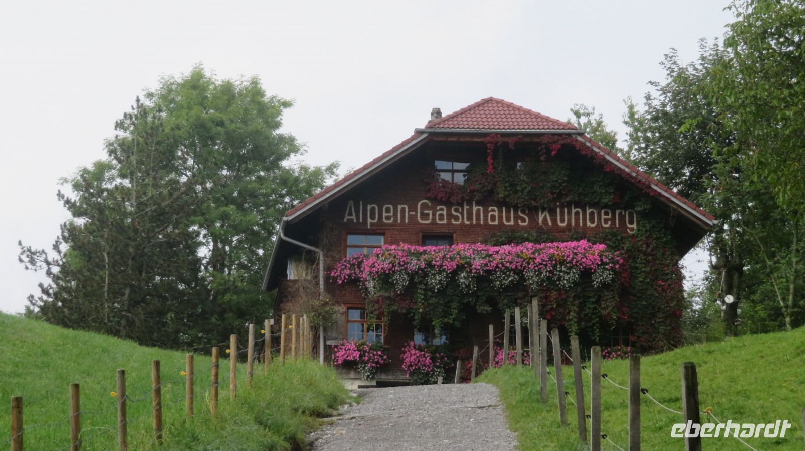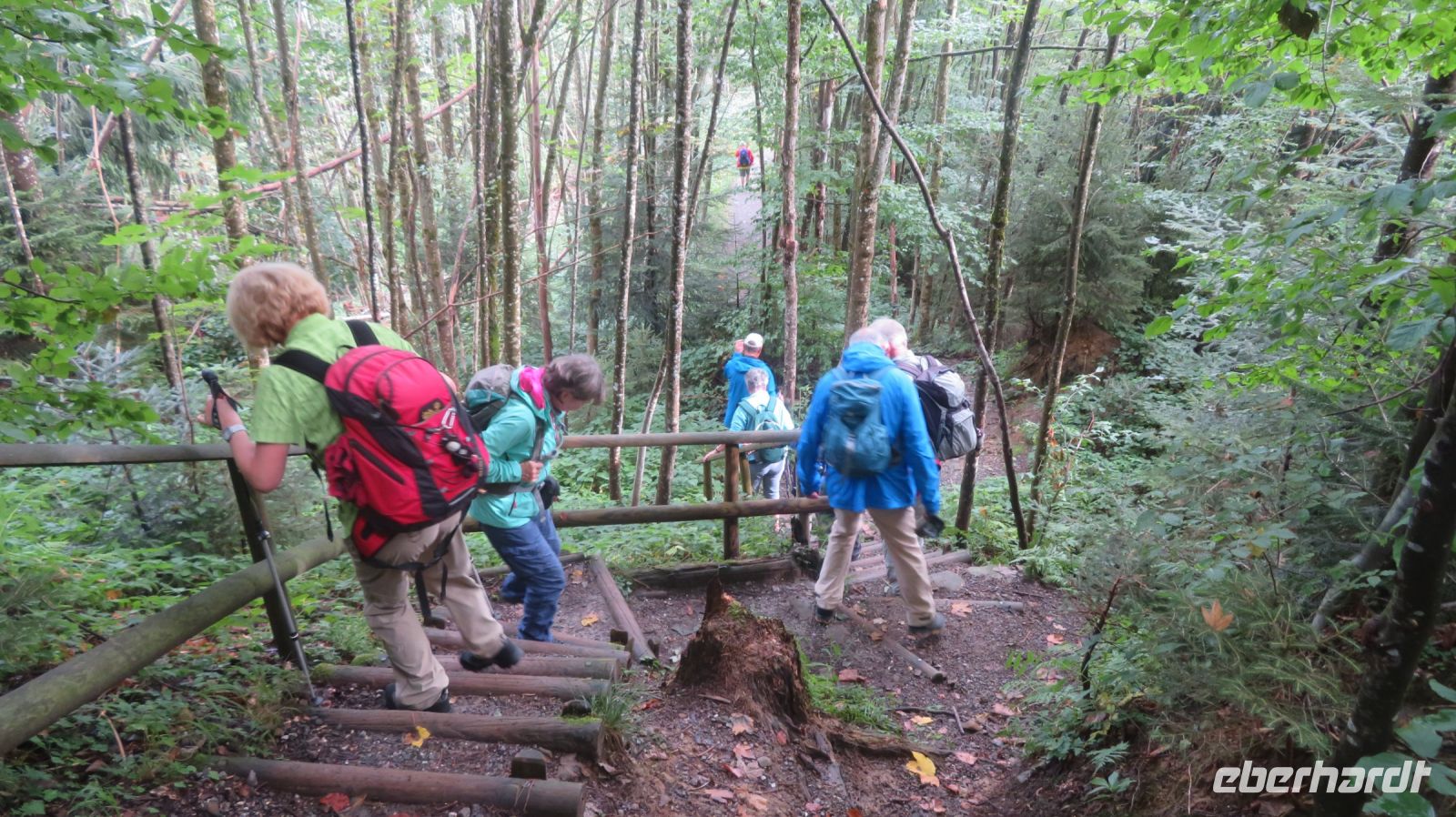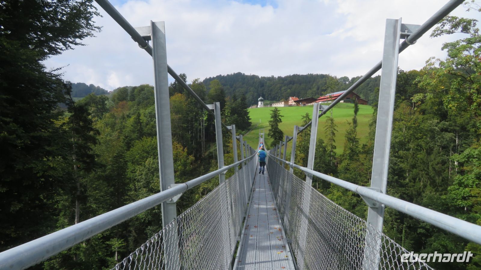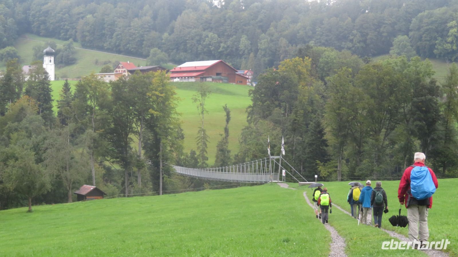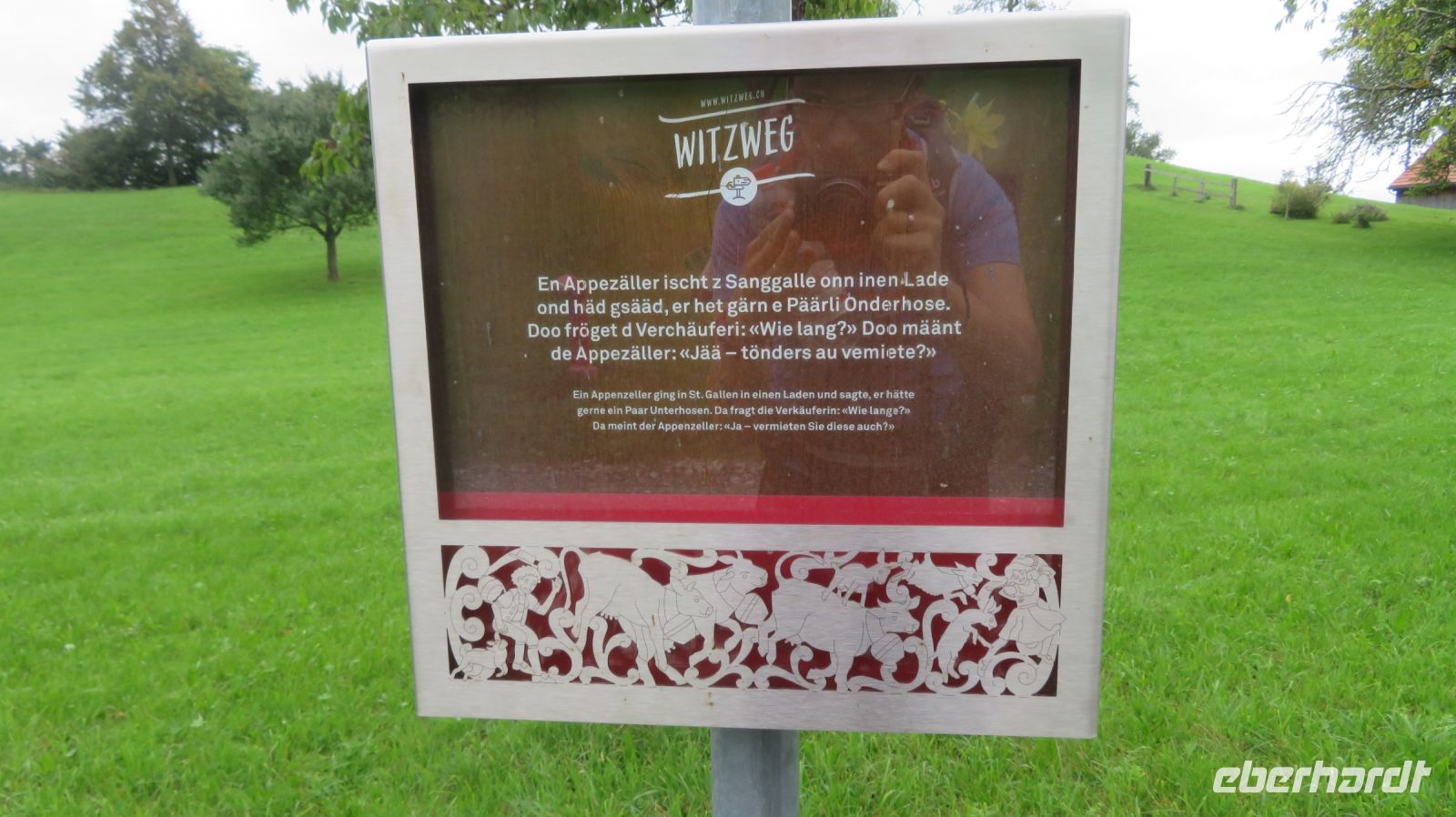 Der heutige Tag soll dem Wetterbericht zufolge der feuchteste der ganzen Woche werden – von daher haben wir zur Sicherheit einen Plan B in der Tasche. Aber wir wären keine Wandergruppe, wenn uns ein paar Regentropfen abschrecken würden. Also sind wir mutig und fahren wir geplant mit der anderen Gruppe in die Schweiz und lassen uns nach Walzenhausen, oberhalb vom Bodensee chauffieren. Sicher bringt uns unser Chauffeur über die Serpentinen auf knapp 700 Höhenmeter. Von dort beginnt der bekannte Appenzeller Witzwanderweg – denn die Appenzeller sollen ein lustiges Völkchen sein. Der Weg mit rund 40 Witztäfelchen läd immer wieder zum Vorlesen, Übersetzen und Schmunzeln ein. Zudem genießen wir die traumhafte Landschaft des Appenzellerlandes mit der tollen Aussicht auf den Bodensee. Auch das Wetter bietet uns viel Abwechslung, denn von Sonnenschein bis Starkregen ist alles dabei. Dank unserer vielseitigen, wetterfesten Ausrüstung trotzen wir den nassen Unterbrechungen und erleben am Ende unserer heutigen Wanderung eine gemütliche Fahrt mit der Zahnradbahn nach Rorschach. Diese beschauliche Stadt entwickelte sich schon im Mittelalter zum bedeutendsten Handelsplatz am südlichen Seeufer. Dort lassen wir den Tag, leider noch einmal bei Starkregen, aber zum Glück trocken in einem gemütlichen Café ausklingen, bevor uns der Bus wieder abholt und wir gemeinsam ins Hotel zurückfahren können. Am Abend werden wir wieder gut von unserem Hotel verköstigt und freuen uns auf die gute Wettervorhersage für den Rest der Woche.