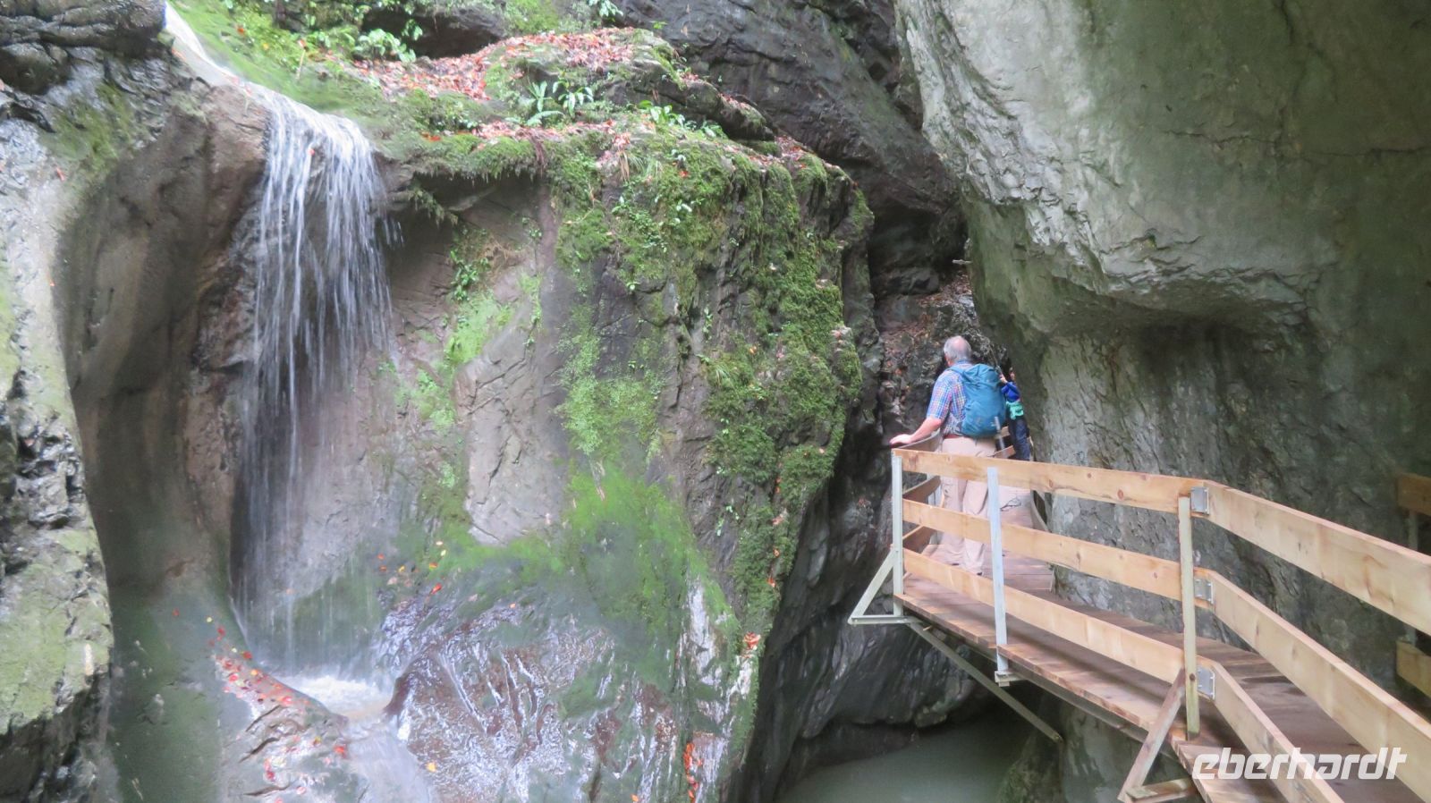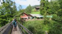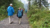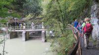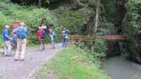 Nachdem die Wanderschuhe wieder getrocknet sind, rüsten wir uns heute für eine schöne Wanderung im schönen Dornbirn. Unser Fahrer chauffiert uns ganz bequem zur Talstation des Karren. Innerhalb weniger Minuten überwinden wir mit der Bahn über 500 Höhenmeter und befinden uns nun knapp 1000 Meter über dem Meeresspiegel. Oben angekommen genießen wir die grandiose Aussicht nach Dornbirn und über das Rheintal bis in die Schweiz. Der 12 Meter lange Glas-Steg bietet uns ein tolles Fotomotiv – man muss aber schon etwas höhentauglich sein. Nun werden die Rucksäcke geschnürt und die Wanderstöcke vorbereitet um hinunter zum Staufensee zu wandern. Etwas mühsam war der Abstieg, denn durch den Regen der letzten Tage waren die Stufen zudem sehr glitschig. Als das geschafft ist, geht es munter weiter am Staufensee entlang zur Alplochschlucht. Diese wildromantische Schlucht wurde vom fließenden Wasser der Ache geformt – immer wieder bleiben wir stehen um die sagenhaften Formationen von dem am Felsen entlang gebauten Steg zu bewundern. Auf dem Rückweg gehen wir dann wieder am Kraftwerk Ebensand vorbei und stärken uns etwas, bevor es nun auf der anderen Seite des Staufensees entlang zur Rappenlochschlucht geht. Diese ist auf Grund eines Brückeneinsturzes zurzeit nur teilweise begehbar, sodass wir zwischendurch auch eine Umfahrungsstraße nutzen müssen. Unterwegs bestaunen wir immer wieder die außergewöhnlichen Felsformationen, die tosenden Wasserfälle und die abenteuerlichen Stege. Zur Belohnung kehren wir im beschaulichen Rappenlochstadl ein und gönnen uns eine regionale Spezialität. Nun sind wir auch schon im Gütle angekommen und in wenigen Minuten erreichen wir die Bushaltestelle. Im Stadtzentrum Dornbirn angekommen, zeigt uns unser Armin die schönsten Plätze der Stadt.