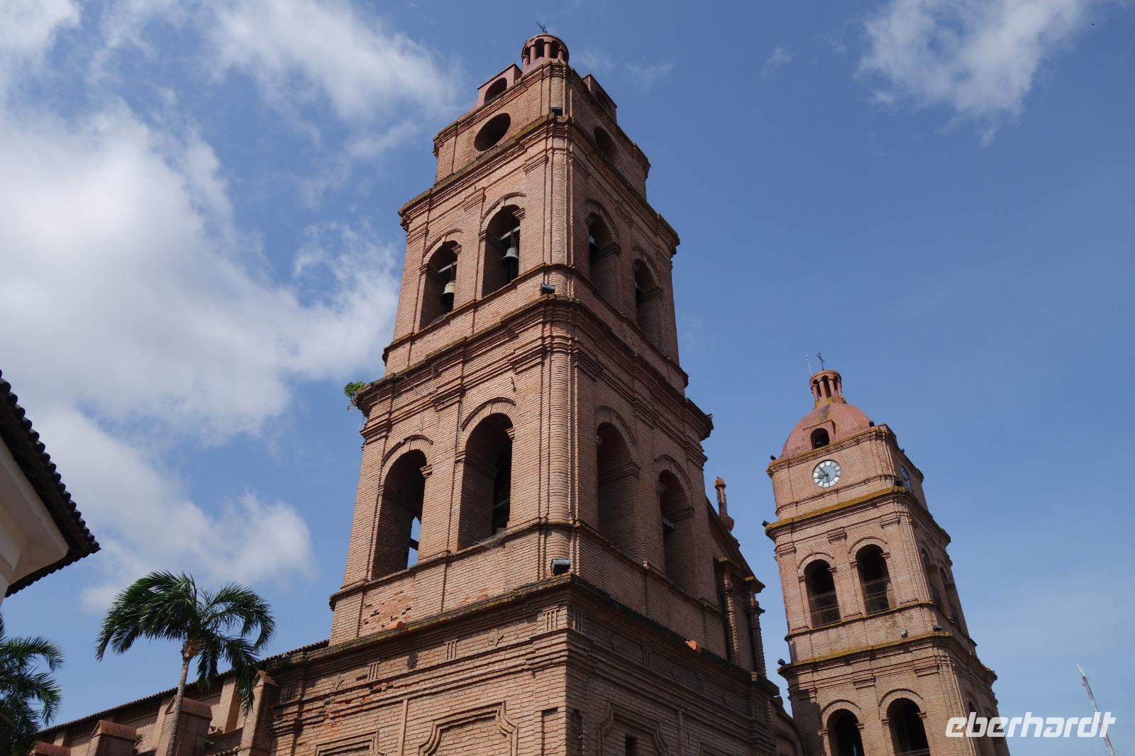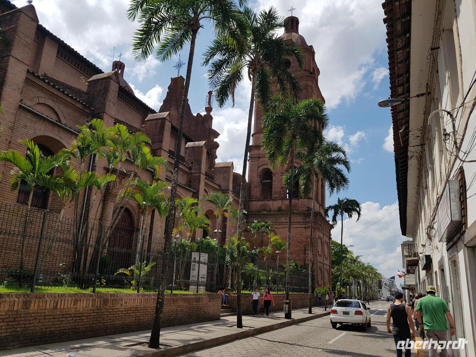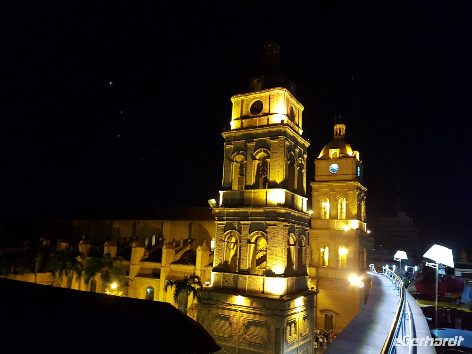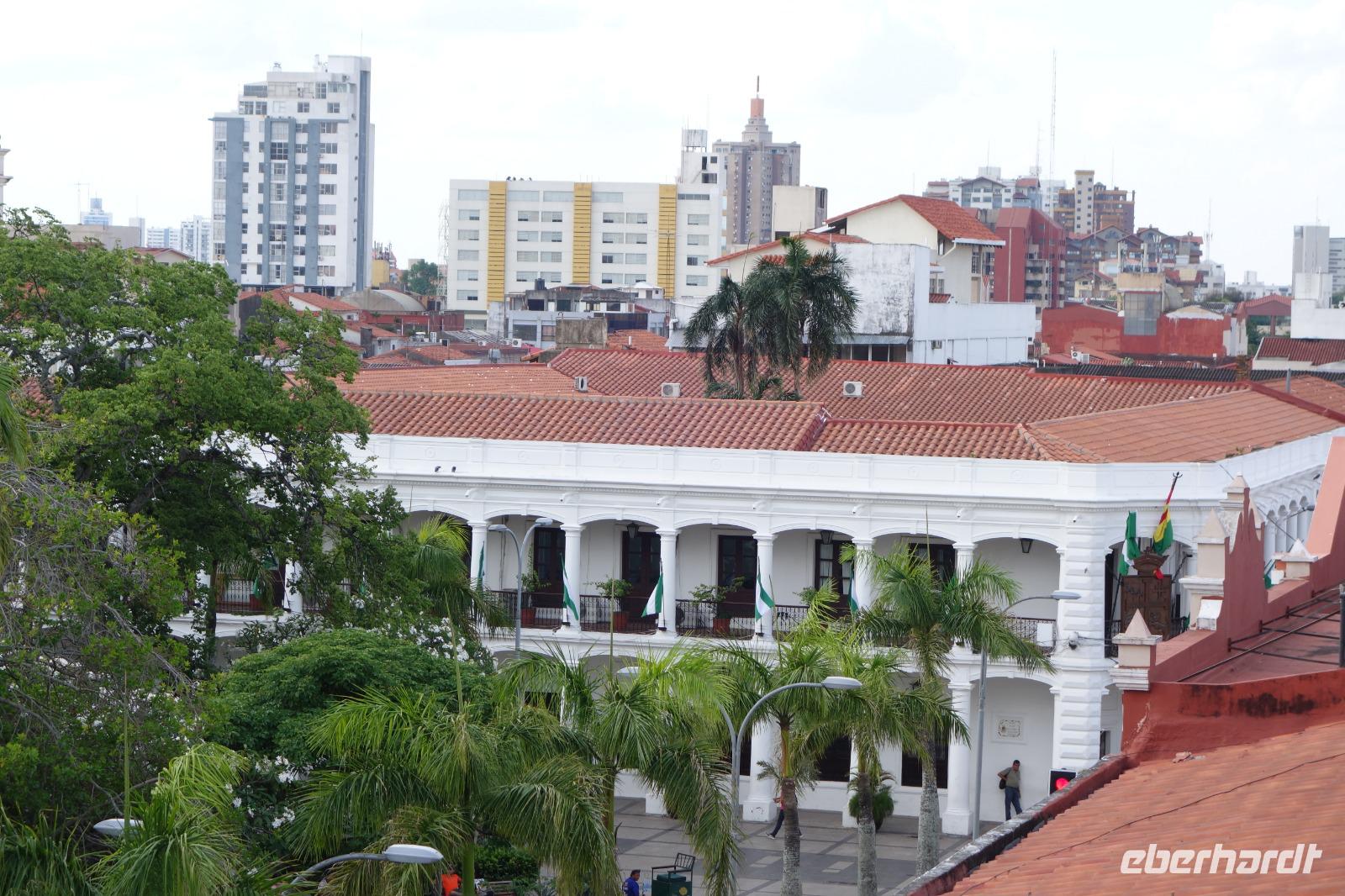 Unsere Rundreise beginnt hier im Tiefland von Bolivien, in Santa Cruz de la Sierra. Gemeinsam mit der Stadtführerin Katy erkunden wir heute zu Fuß Santa Cruz de la Sierra. Die Lage des Hotels ist einfach Spitze und so sind wir direkt am Hauptplatz und der Kathedrale. Diese hatte gerade geöffnet und wir nutzten die Gelegenheit Sie zu besichtigen. Man kann sogar hoch auf den Turm laufen, von wo man einen tollen Blick aus auf dem Hauptplatz der Stadt hat. Später besichtigten wir das Museum der Geschichte, das Land und Leute von Santa Cruz zeigt. Früher wollte Santa Cruz, im Herzen Südamerikas gelegen, das Zentrum und Hauptstadt von Amerika sein. Immer weiter zu Fuß genießen wir einen entspannten Vormittag bei angenehm warmen Temperaturen. Zuerst geht es in eine schöne Parkanlage, wo eigentlich damals Santa Cruz gegründet wurde, anschlißend geht es weiter die Markthalle, wo wir wie überall auf der Welt auf unsere Dinge aufpassen müssen. Überall leckeres Obst, Gemüse, Fleisch, rote Tomaten... und die Leute sind alle sehr freundlich und glücklich. Langsam bekommen wir Hunger und lassen uns das gute und typische Essen von Santa Cruz im Restaurant el Aljibe schmecken. Dann ist es Zeit für eine Siesta oder ein Nickerchen bis 17.30 Uhr, wo wir uns wieder im Hotel treffen und einen gemeinsamen Rundgang bis zum Sonnenuntergang um dem Hauptplatz herum machen. Herrlich hier wie lebendig alles ist. Hier im Hotel gibt es oben eine tolle Terrasse und können noch heute den ersten bolivianischen Tag ausklingen lassen. Buenas noches!
