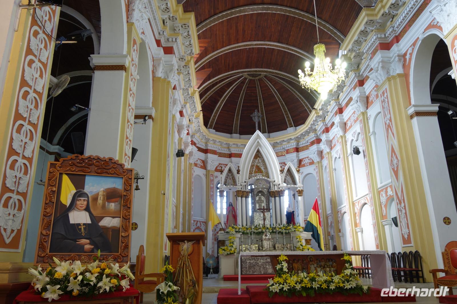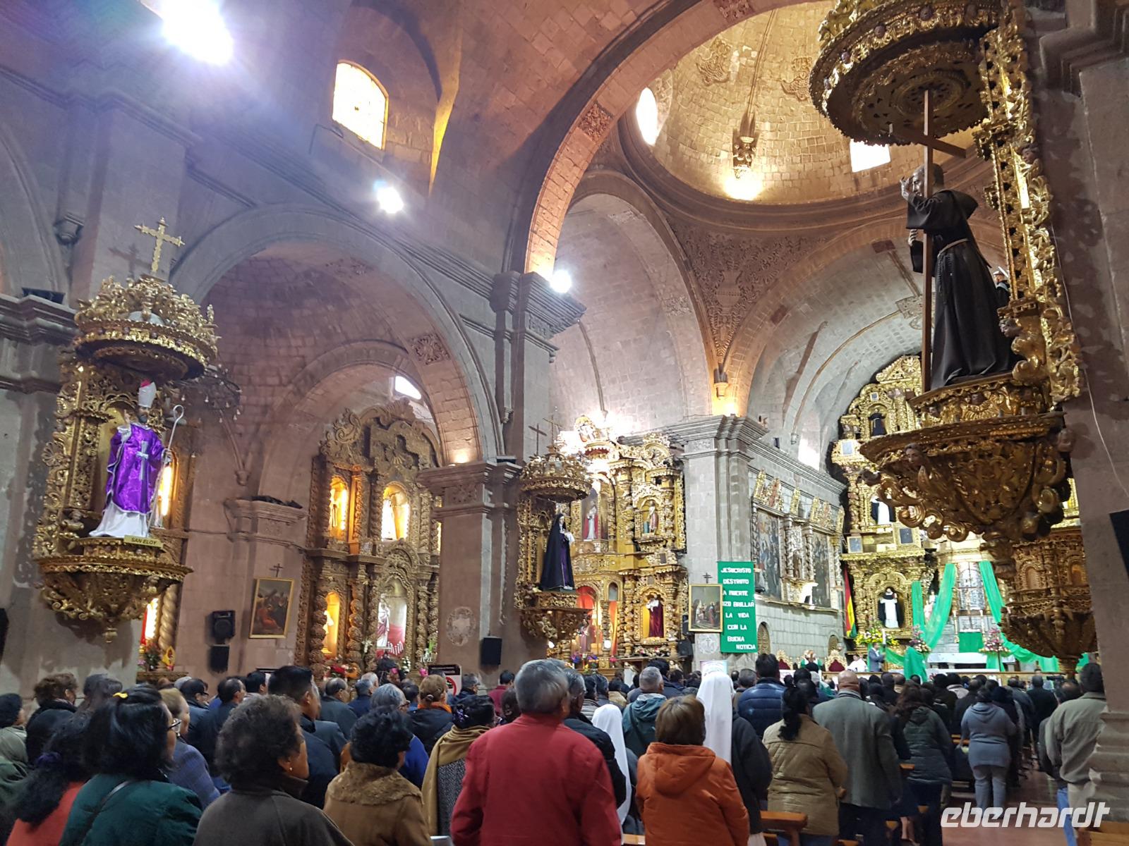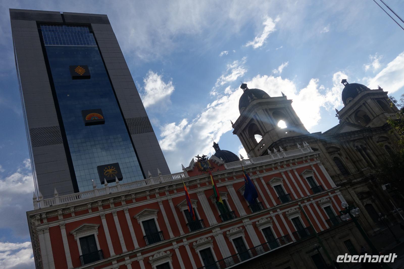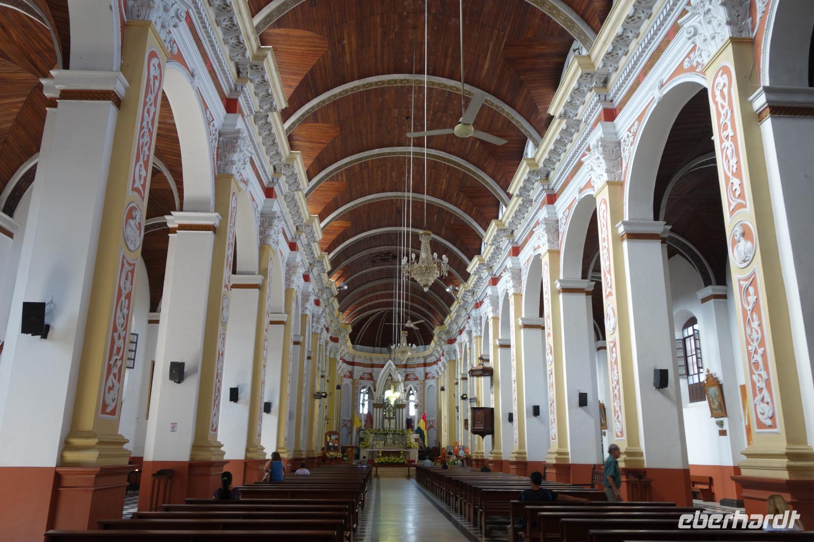 Unsere Rundreise beginnt hier im Tiefland von Bolivien, in Santa Cruz de la Sierra. Gemeinsam mit der Stadtführerin Katy erkunden wir heute zu Fuß Santa Cruz de la Sierra. Die Lage des Hotels ist einfach Spitze und so sind wir direkt am Hauptplatz und der Kathedrale. Diese hatte gerade geöffnet und wir nutzten die Gelegenheit Sie zu besichtigen. Man kann sogar hoch auf den Turm laufen, von wo man einen tollen Blick aus auf dem Hauptplatz der Stadt hat. Später besichtigten wir das Museum der Geschichte, das Land und Leute von Santa Cruz zeigt. Früher wollte Santa Cruz, im Herzen Südamerikas gelegen, das Zentrum und Hauptstadt von Amerika sein. Immer weiter zu Fuß genießen wir einen entspannten Vormittag bei angenehm warmen Temperaturen. Zuerst geht es in eine schöne Parkanlage, wo eigentlich damals Santa Cruz gegründet wurde, anschlißend geht es weiter die Markthalle, wo wir wie überall auf der Welt auf unsere Dinge aufpassen müssen. Überall leckeres Obst, Gemüse, Fleisch, rote Tomaten... und die Leute sind alle sehr freundlich und glücklich. Langsam bekommen wir Hunger und lassen uns das gute und typische Essen von Santa Cruz im Restaurant el Aljibe schmecken. Dann ist es Zeit für eine Siesta oder ein Nickerchen bis 17.30 Uhr, wo wir uns wieder im Hotel treffen und einen gemeinsamen Rundgang bis zum Sonnenuntergang um dem Hauptplatz herum machen. Herrlich hier wie lebendig alles ist. Hier im Hotel gibt es oben eine tolle Terrasse und können noch heute den ersten bolivianischen Tag ausklingen lassen. Buenas noches!