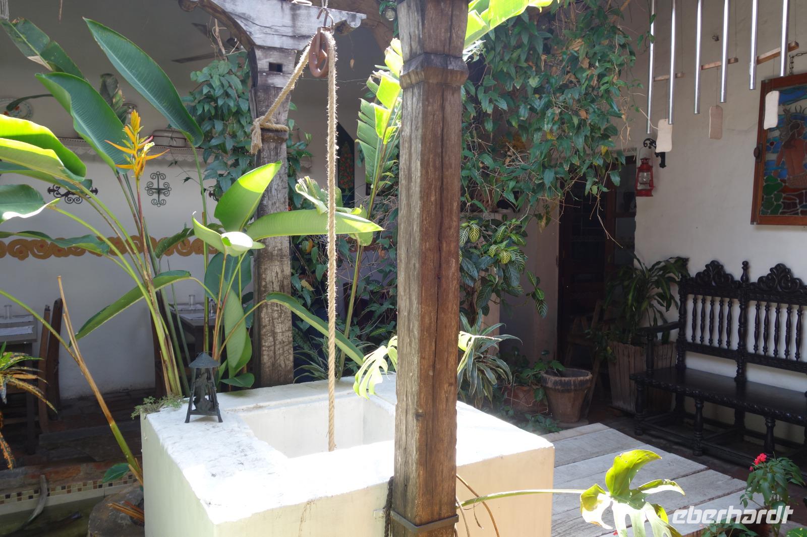 Nach dem Mittagessen verabschiedeten wir uns von der Familie am Refugio los Volcanes und stiegen wieder auf die 2 Jeeps. Unten an der Hauptstraße wartete auf uns unser Busfahrer Jose. Dann fuhren wir ca. 2 Stunden zu unserem Hotel in Santa Cruz zurück. Bevor es um zum Abendessen ging, hatten wir noch ein bisschen Zeit und Ruhe auf unseren Zimmern. Um 19 Uhr trafen wir uns in kleiner Runde zum Abendessen. Heute wurde es nicht so spät, da es am nächsten Morgen wieder früh los ging.