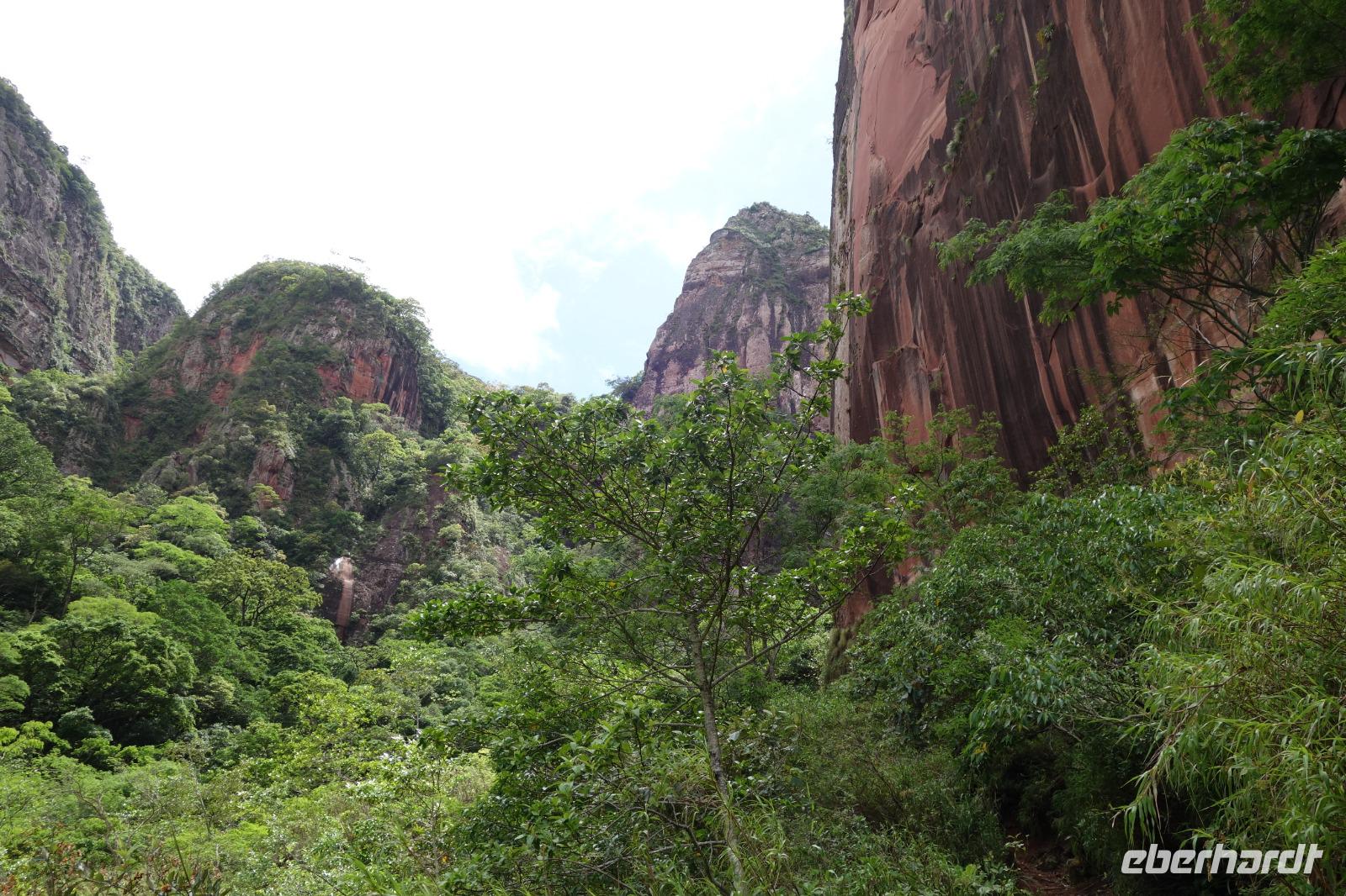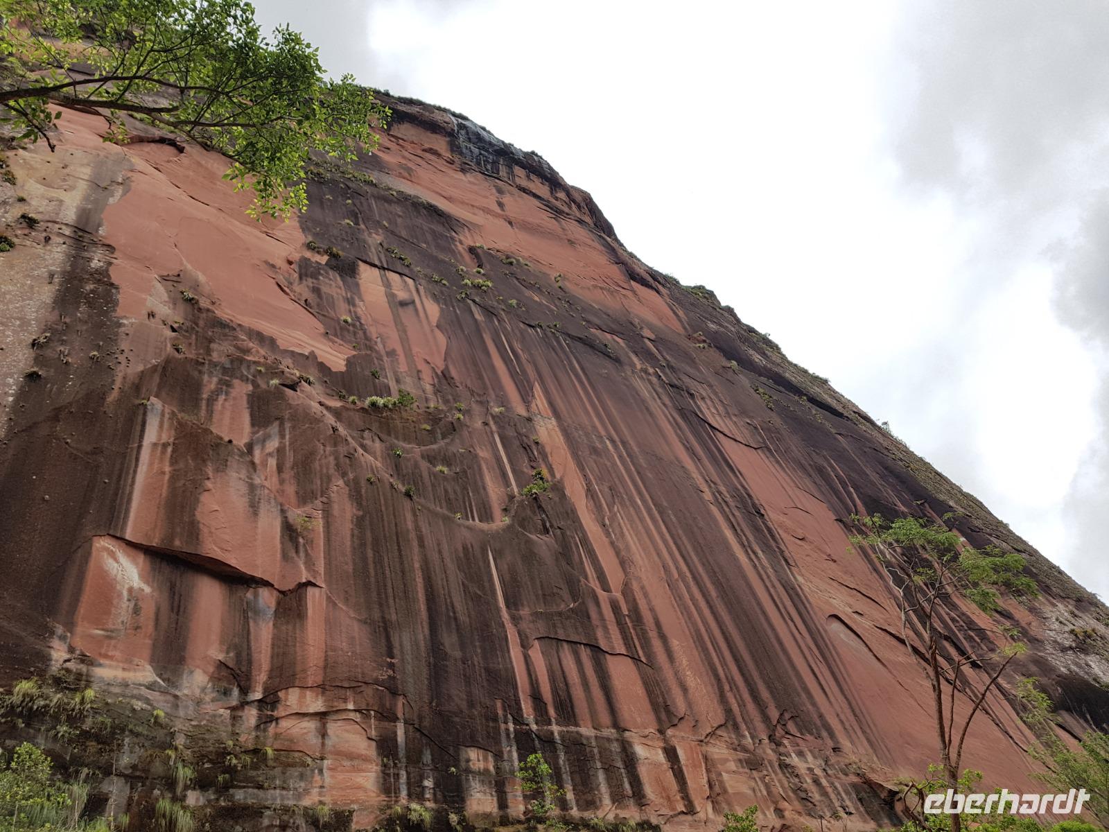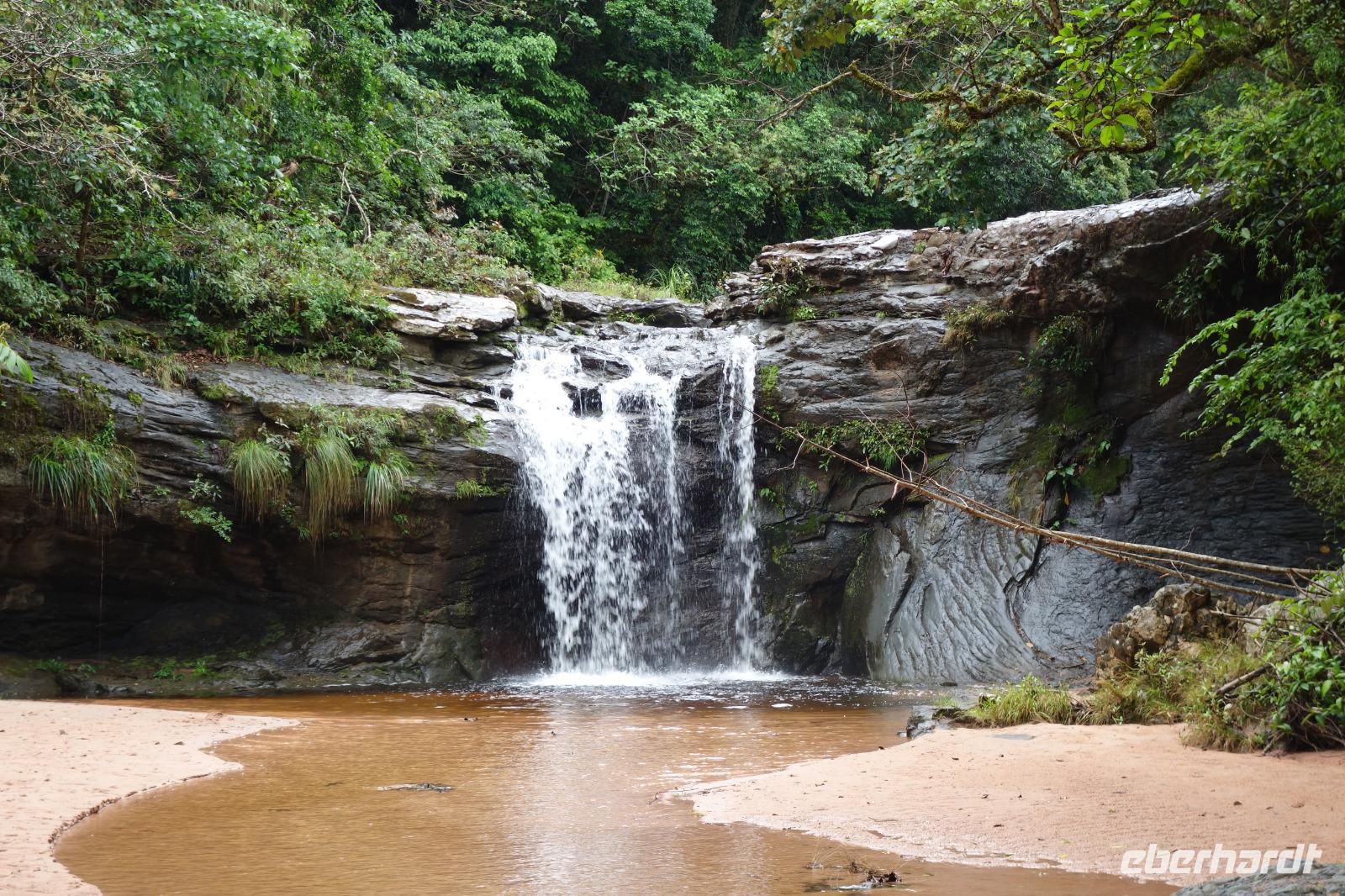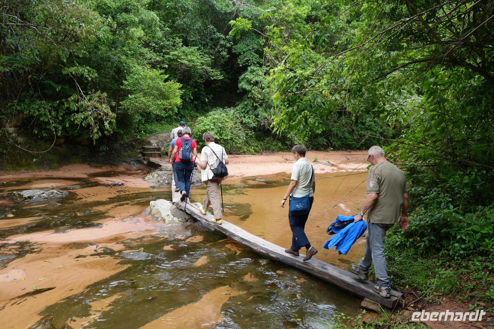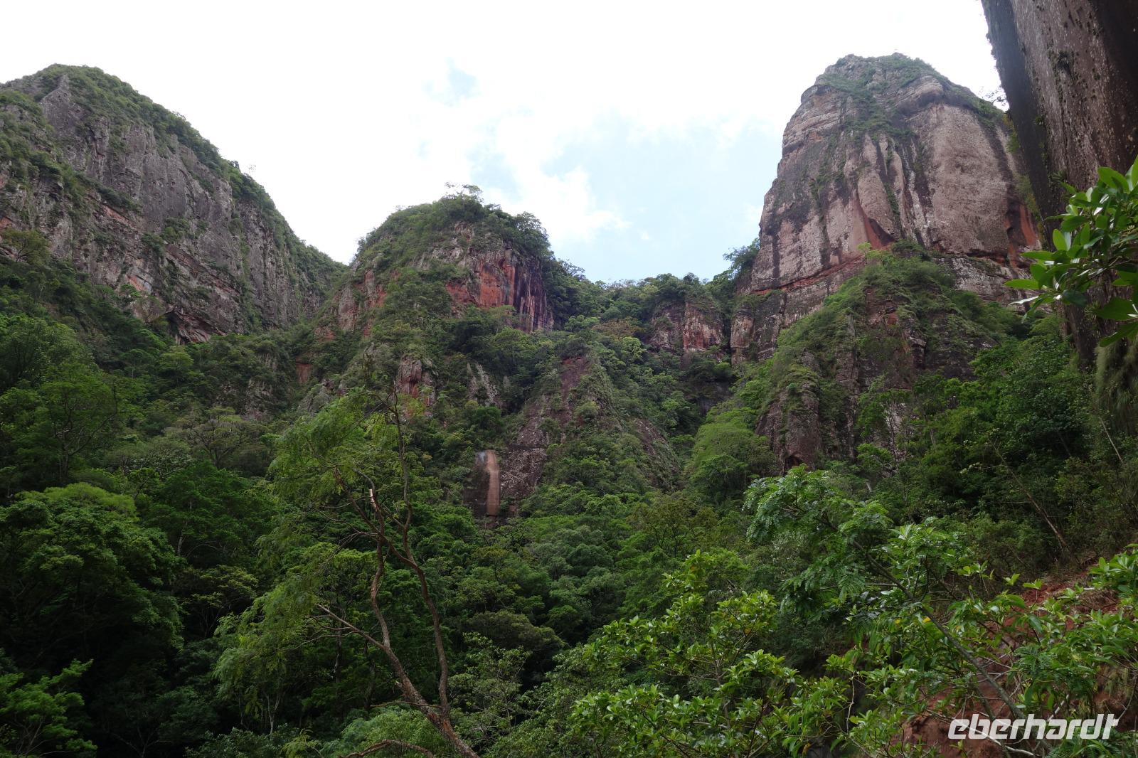 Ganz gemütlich gab es heute das Frühstück um 7.30 Uhr. Vormittags genießen wir noch einmal die spektakuläre Umgebung mit den teilweise roten Sandsteinfelsen, die aus dem tropischen Wald herausragen. Wir entscheiden uns heute für die Wanderung "Senda de los Loros" oder "Papageien-Weg" und entdecken dabei weiter die vielfältige Fauna und Flora. Den ganzen Vormittag haben wir noch genügend Zeit um verschiedene Beobachtungspfade am Refugio de los Volcanes zu erkunden, bevor wir nach dem Mittagessen nach Santa Cruz zurückreisen. Uns hat es hier sehr sehr gut gefallen. So grün haben wir uns Bolivien nicht vorgestellt und diese Felsformationen... Die Ruhe und die Natur hier sind herrlich. Kurz vor dem Mittagsessen gingen Katy und Benjamin noch ans Wasser und unter den Wasserfall.