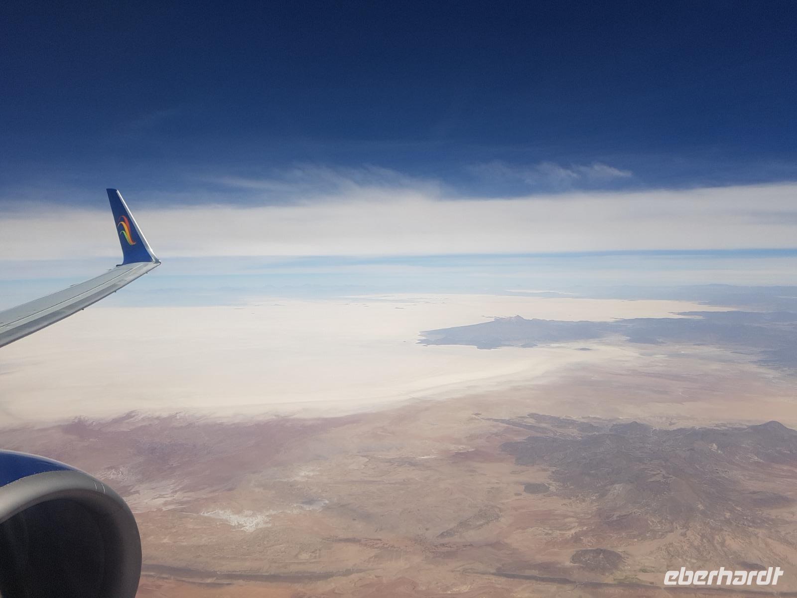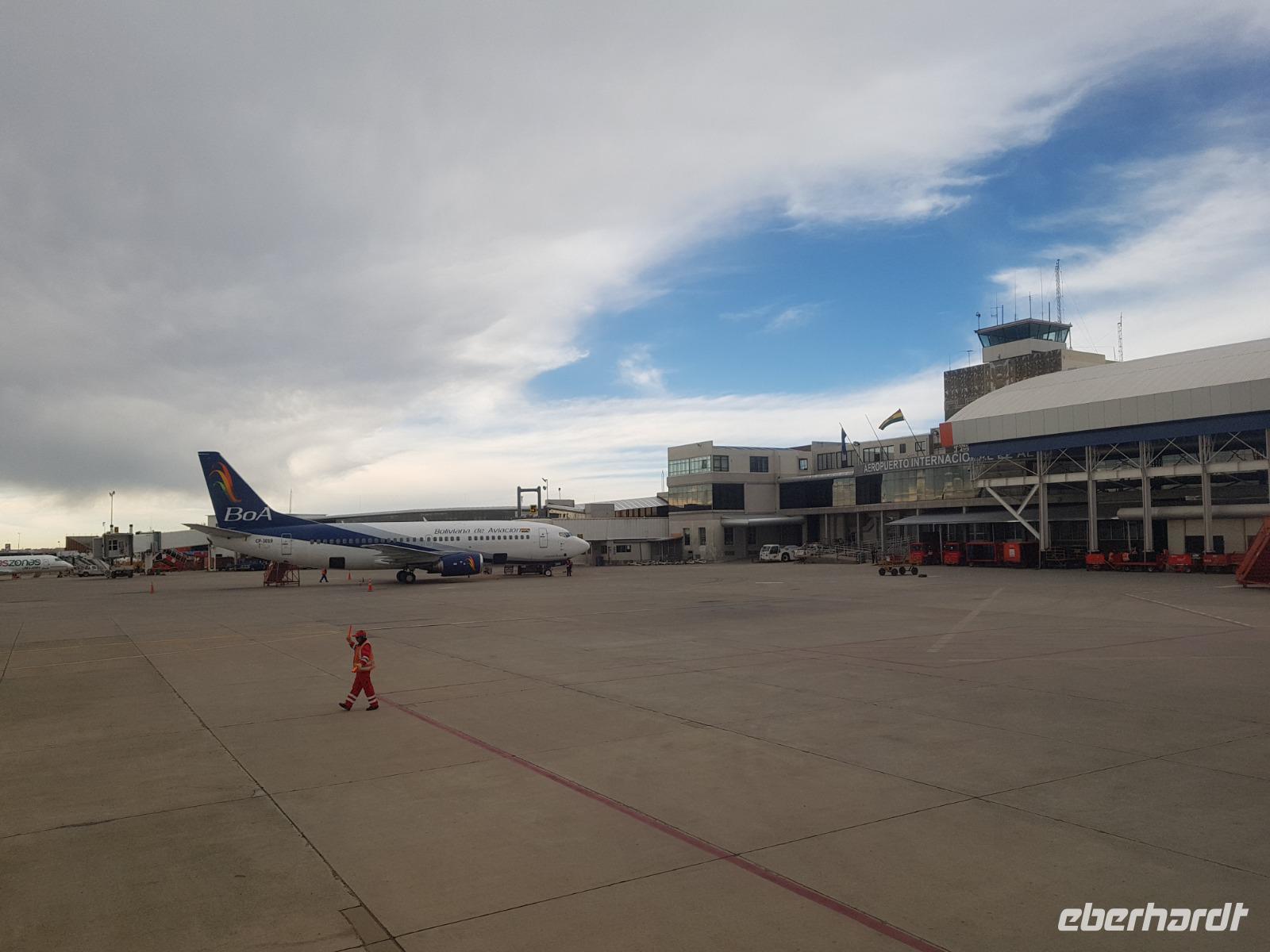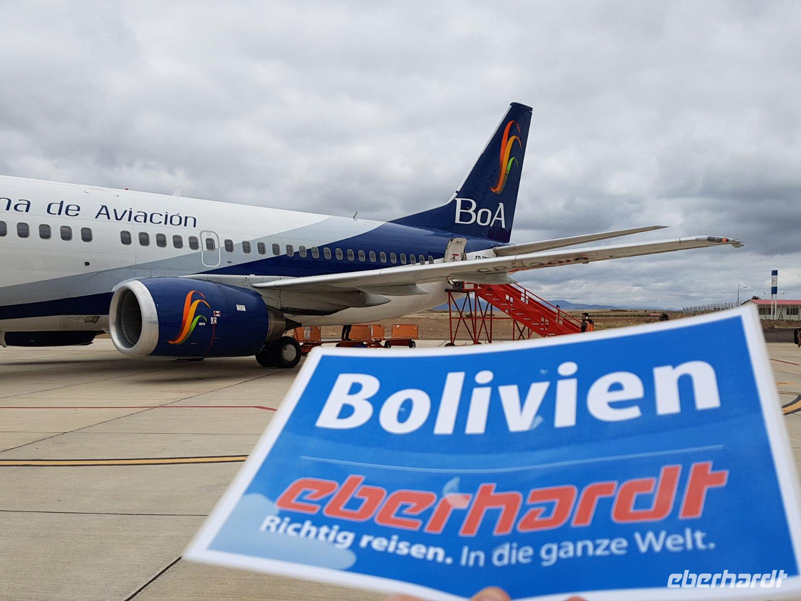 Es ist so weit und wir alle freuen uns riesig auf Bolivien. Einige von uns waren schon einmal dort, aber es gibt noch viele unbekannte Orte auf unserer Reise zu entdecken. Wir fahren ab Dresden mit dem ICE erst mal ganz bequem und gemütlich nach Frankfurt. An folgenden Orten werden die weiteren Gäste zu uns in den Zug steigen: Riesa, Leipzig und Erfurt. Damit sind wir alle vollzählig, 7 liebe Gäste und meine Person, Benjamin, Ihre Reisebegleitung nach Bolivien. Gut am Flughafen in Frankfurt/Main angekommen, lädt uns Eberhardt Travel zu einem Baguette und Getränk ein und treten um 19:15 Uhr am späten Abend wie geplant den Flug über Madrid nach Santa Cruz de la Sierra in Bolivien an. Kurz vor Mitternacht fliegen wir mit dem Airbus 330 von Air Europa über den Atlantik und am frühen Morgen des nächsten Tages erreichen wir früher als geplant um 5 Uhr die bolivianische Stadt Santa Cruz im Tiefland von Bolivien. Bienvenidos a Bolivia!