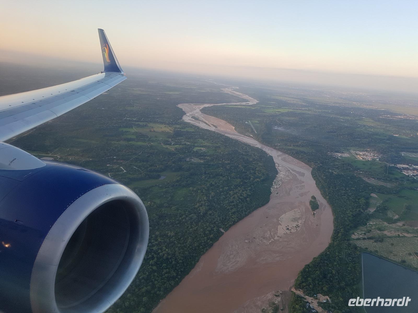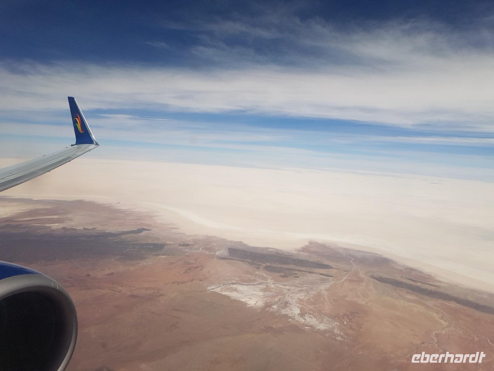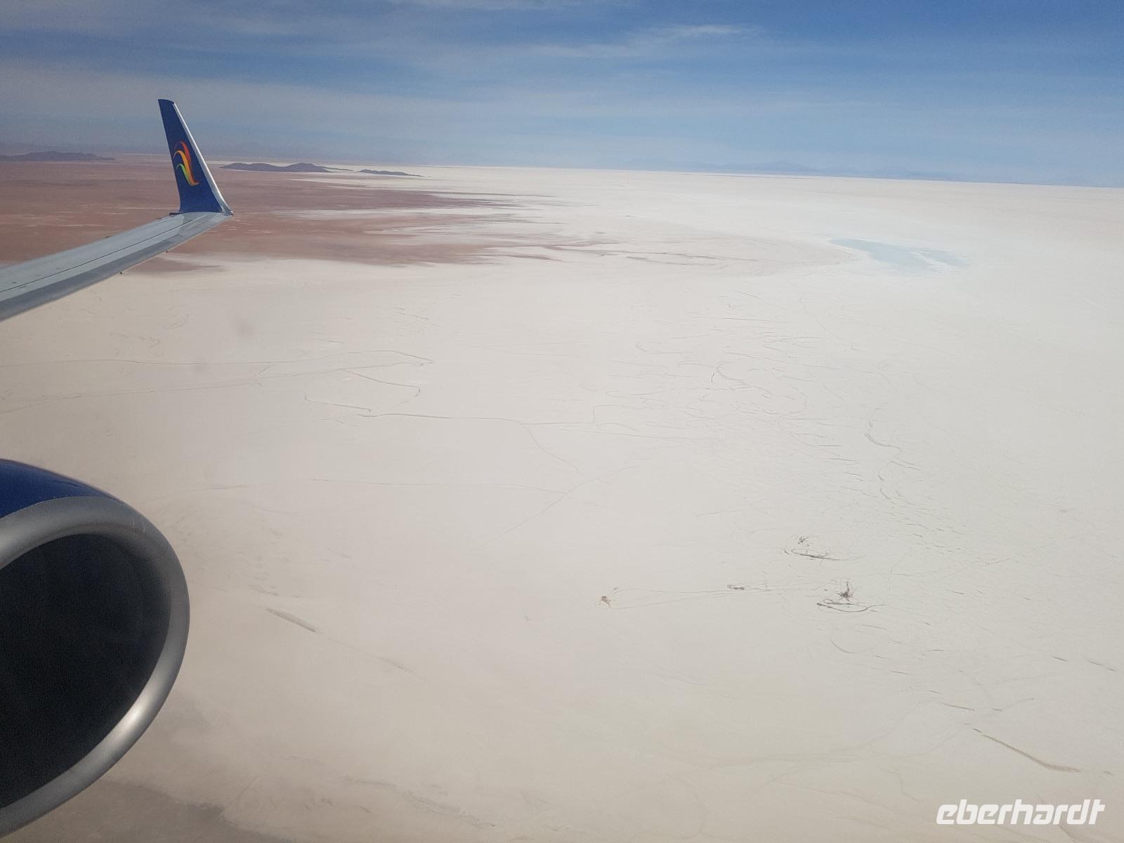Es ist so weit und wir alle freuen uns riesig auf Bolivien. Einige von uns waren schon einmal dort, aber es gibt noch viele unbekannte Orte auf unserer Reise zu entdecken. Wir fahren ab Dresden mit dem ICE erst mal ganz bequem und gemütlich nach Frankfurt. An folgenden Orten werden die weiteren Gäste zu uns in den Zug steigen: Riesa, Leipzig und Erfurt. Damit sind wir alle vollzählig, 7 liebe Gäste und meine Person, Benjamin, Ihre Reisebegleitung nach Bolivien. Gut am Flughafen in Frankfurt/Main angekommen, lädt uns Eberhardt Travel zu einem Baguette und Getränk ein und treten um 19:15 Uhr am späten Abend wie geplant den Flug über Madrid nach Santa Cruz de la Sierra in Bolivien an. Kurz vor Mitternacht fliegen wir mit dem Airbus 330 von Air Europa über den Atlantik und am frühen Morgen des nächsten Tages erreichen wir früher als geplant um 5 Uhr die bolivianische Stadt Santa Cruz im Tiefland von Bolivien. Bienvenidos a Bolivia!
